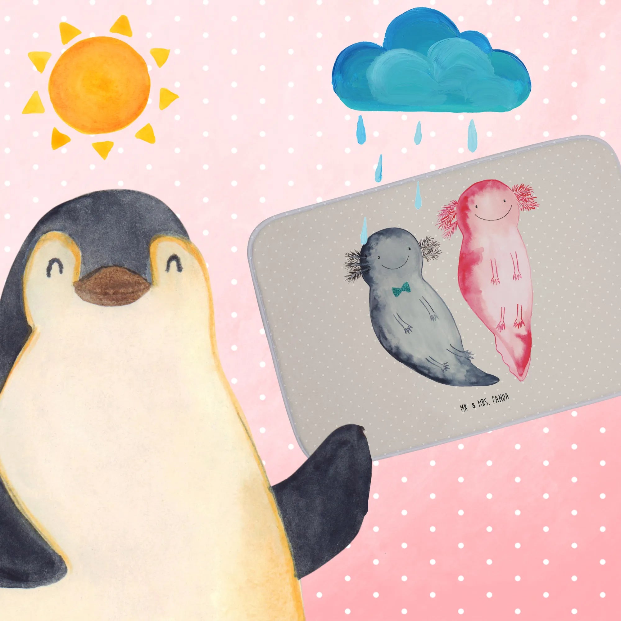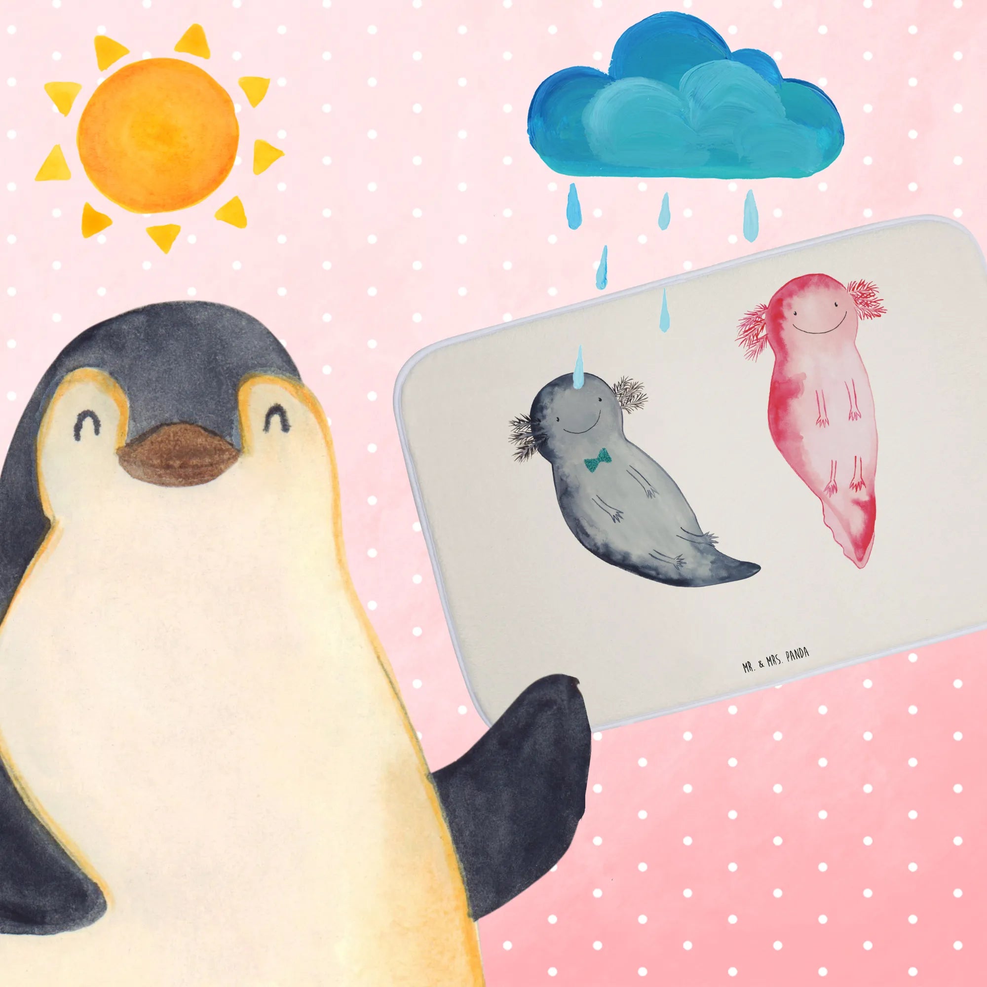 Der Badvorleger Axolotl Axel+Lotte von Mr. & Mrs. Panda ist das perfekte Wohnaccessoire für dein Badezimmer. Mit zwei niedlichen Axolotl, die fröhlich Seite an Seite schwimmen, bringt dieser Badteppich einen Hauch von Unterwasserwelt in dein Bad. Die liebevolle Aquarellzeichnung und die harmonische Farbgebung in pastelligen Tönen sorgen für eine angenehme Optik und schaffen eine entspannte Atmosphäre.
