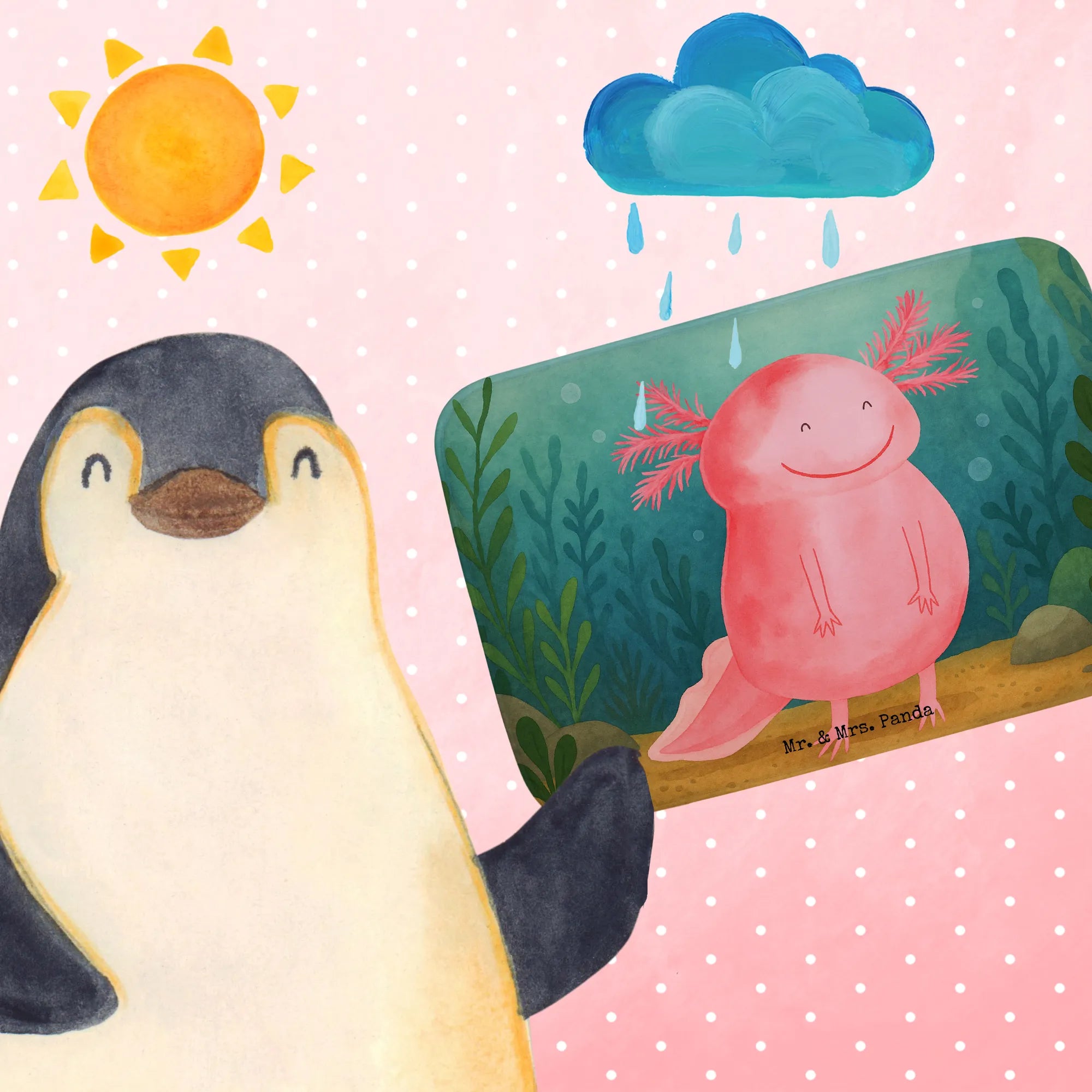 Mit der Axolotl Kollektion von Mr. & Mrs. Panda holst du dir die faszinierende Unterwasserwelt der Axolotls direkt nach Hause. Jedes Produkt, beflügelt von den zarten Aquarellzeichnungen von Mrs. Panda, spricht von der Liebe zum Detail und zum Leben unter der Wasserlinie. Ob es die bequemen Kuscheldecken oder die stilvollen Schreibwaren sind, jeder Axolotl bringt eine Geschichte voller Hoffnung und Freude mit sich. Verliebe dich in die Vielfalt dieser Sammlung, entdecke Produkte, die deinem Alltag mehr Farbe geben und lass dich von positiven Botschaften begleiten. Die Axolotl Kollektion ist mehr als nur ein Accessoire - es ist ein Lebensgefühl.