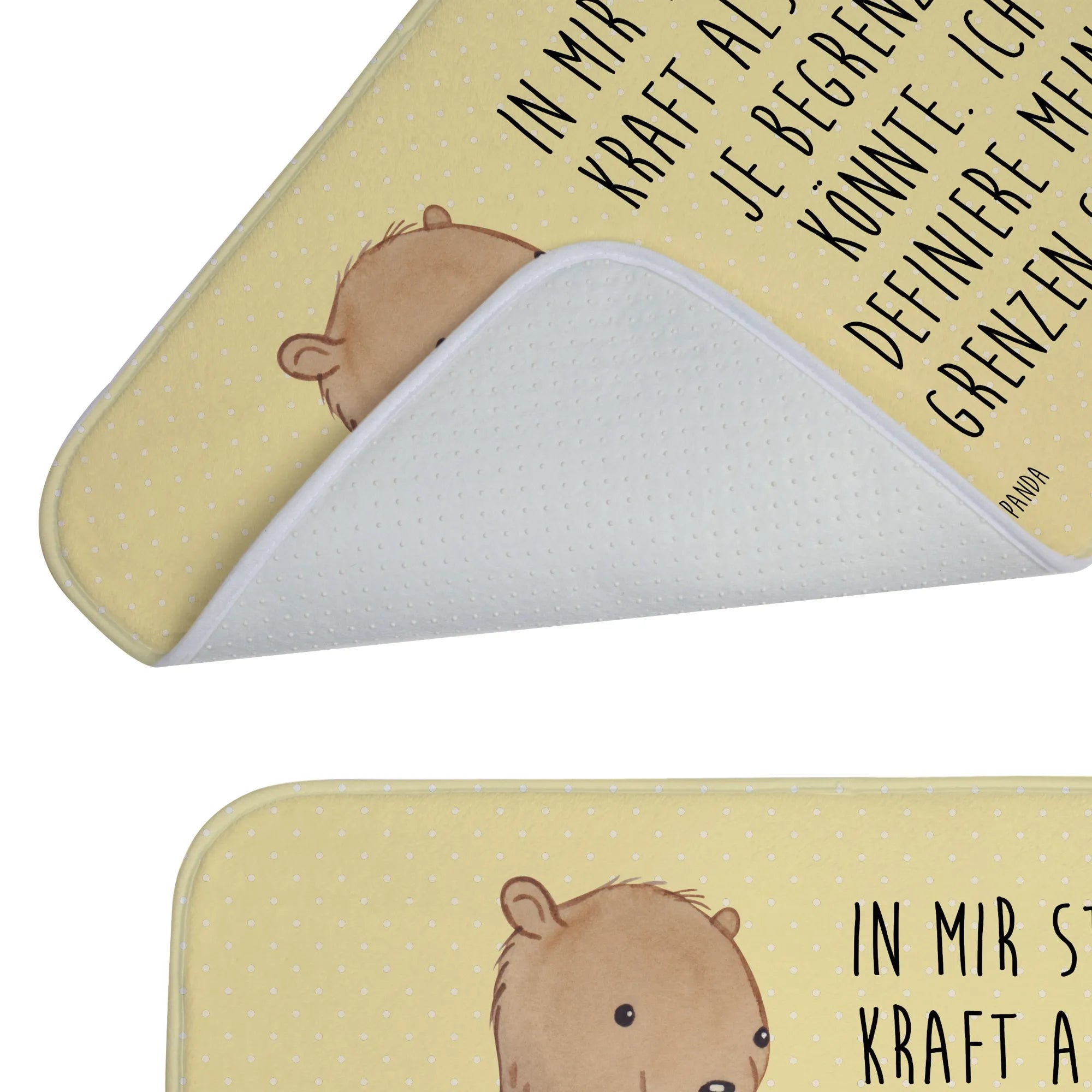 Hol dir diesen wunderschönen Badvorleger von Mr. & Mrs. Panda nach Hause und verwandle dein Badezimmer in eine Wohlfühloase! Mit seinen Maßen von 590 mm x 400 mm passt er perfekt und bringt Stil in jeden Raum. Der Badvorleger wird aus flauschiger Premium Kunstfaser gefertigt, die sanft zu deinen Füßen ist und für ein unbeschreibliches Gehen sorgt. Dank der rutschfesten Gummibeschichtung ist er ideal für den Einsatz in der Nähe von Dusche oder Badewanne geeignet und sorgt dafür, dass du immer sicher bist. Die liebevoll gestalteten Motive und Sprüche machen diesen Badvorleger zu einem echten Hingucker, während er zugleich für ein angenehmes Raumklima sorgt. Genieß die angenehm saugfähige Oberfläche und halte das Bad stets hygienisch, denn du kannst ihn problemlos bei 30°C in der Waschmaschine waschen.