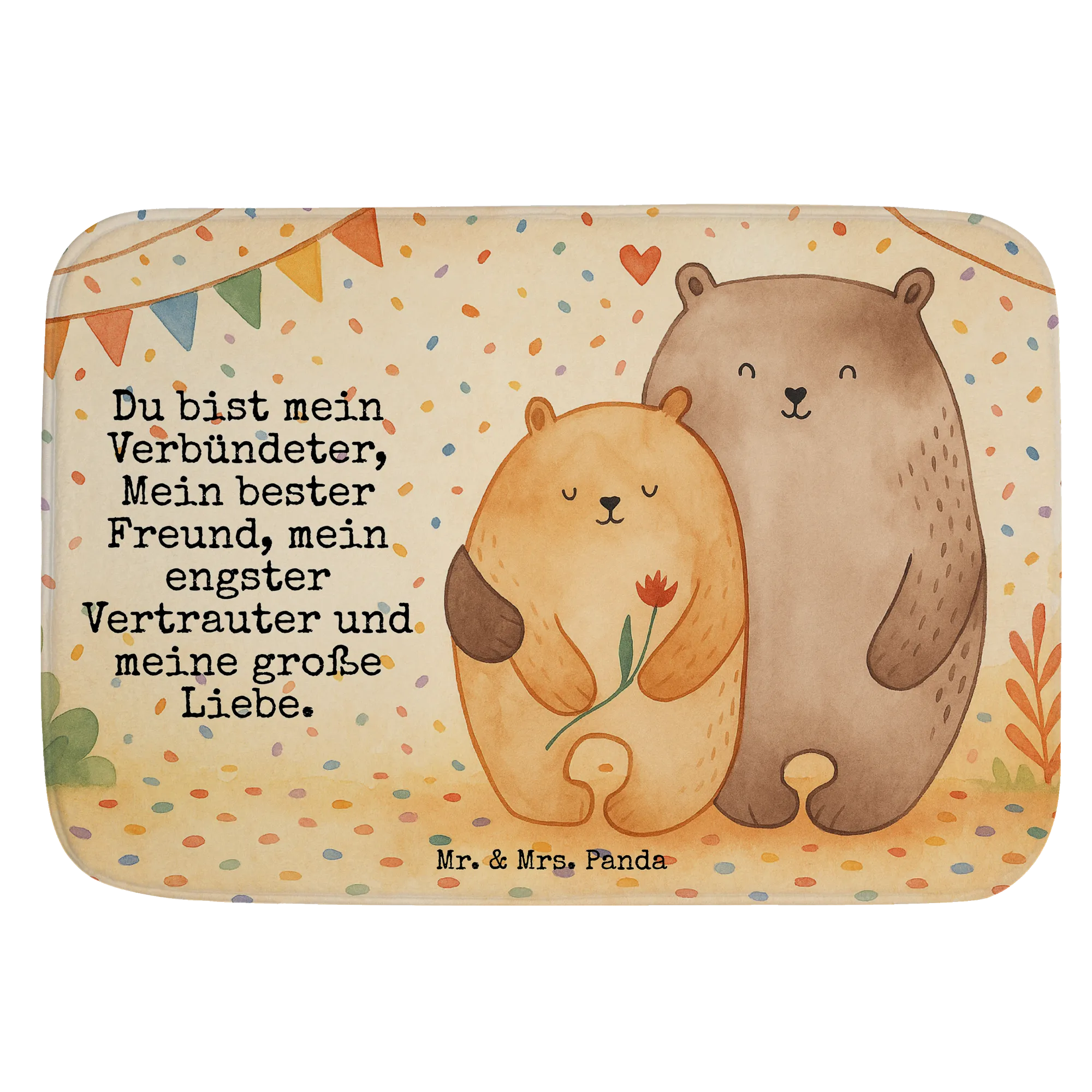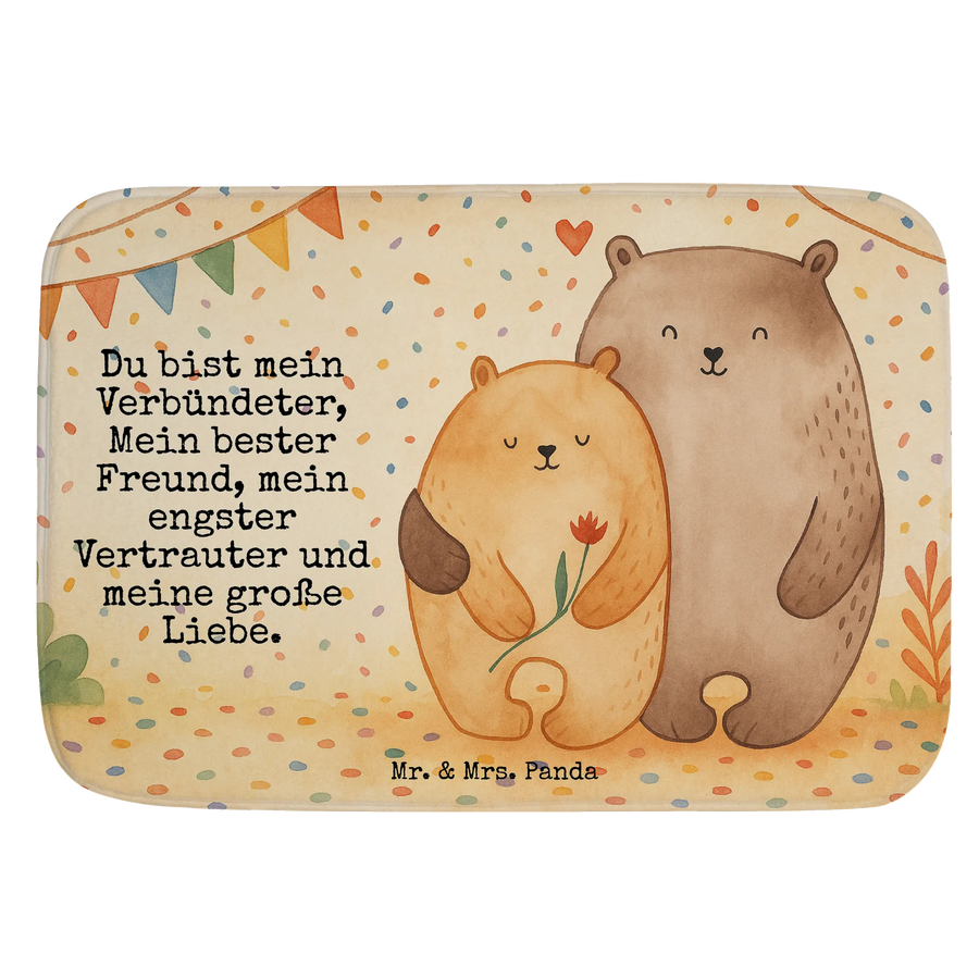 Dieser wunderschöne Badvorleger von Mr. & Mrs. Panda bringt nicht nur Farbe in dein Badezimmer, sondern sorgt auch für einen angenehmen Komfort unter den Füßen. Mit seinen Maßen von 590 mm x 400 mm passt er perfekt vor die Dusche oder Badewanne. Der Badvorleger ist aus flauschiger Premium Kunstfaser hergestellt und verfügt über eine rutschfeste Gummibeschichtung, die das Ausrutschen verhindert. Die liebevoll bedruckten Motive und Sprüche verleihen deinem Badezimmer eine tolle Optik und machen den Aufenthalt dort noch angenehmer. Der Badvorleger ist besonders saugstark und sorgt dafür, dass Wasser schnell aufgenommen wird, während die Vorderseite angenehm weich bleibt. Du kannst ihn ganz leicht bei 30°C in der Waschmaschine waschen, sodass er immer frisch und einladend aussieht.