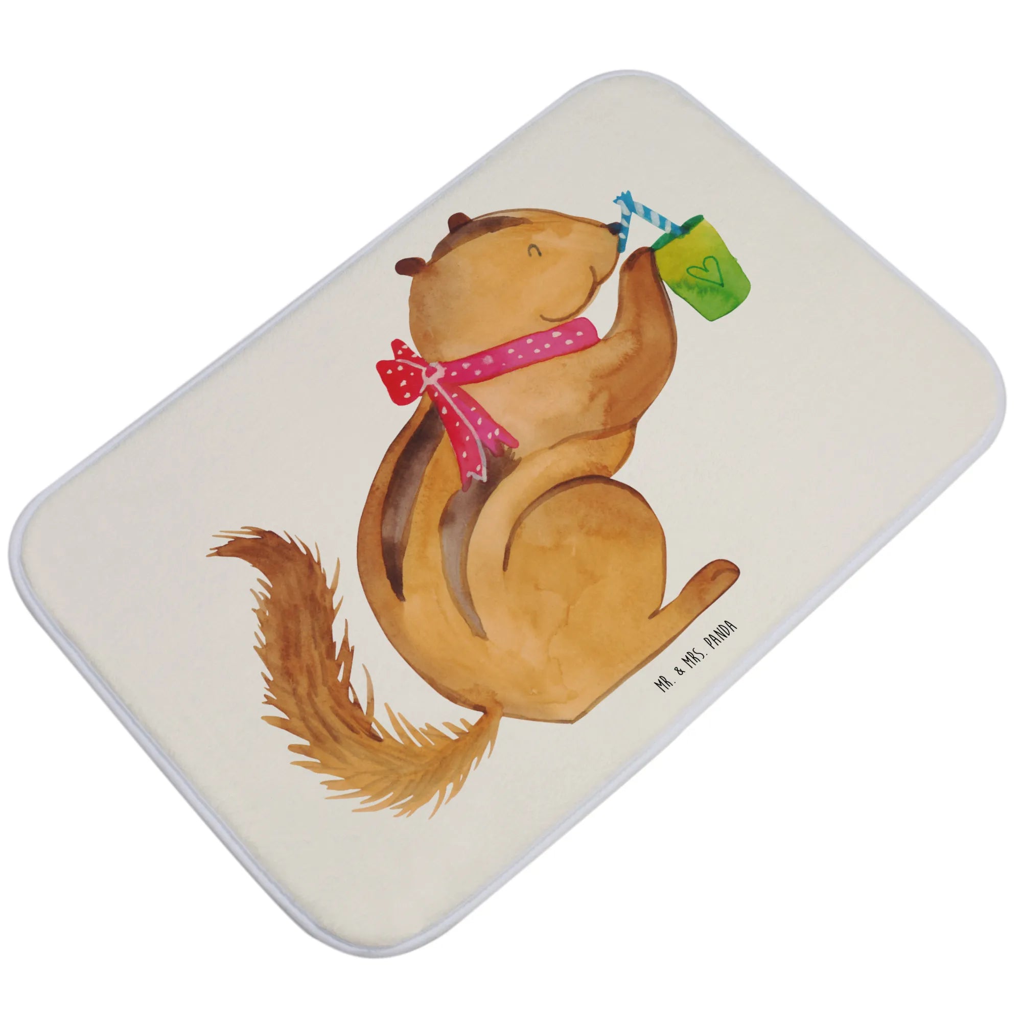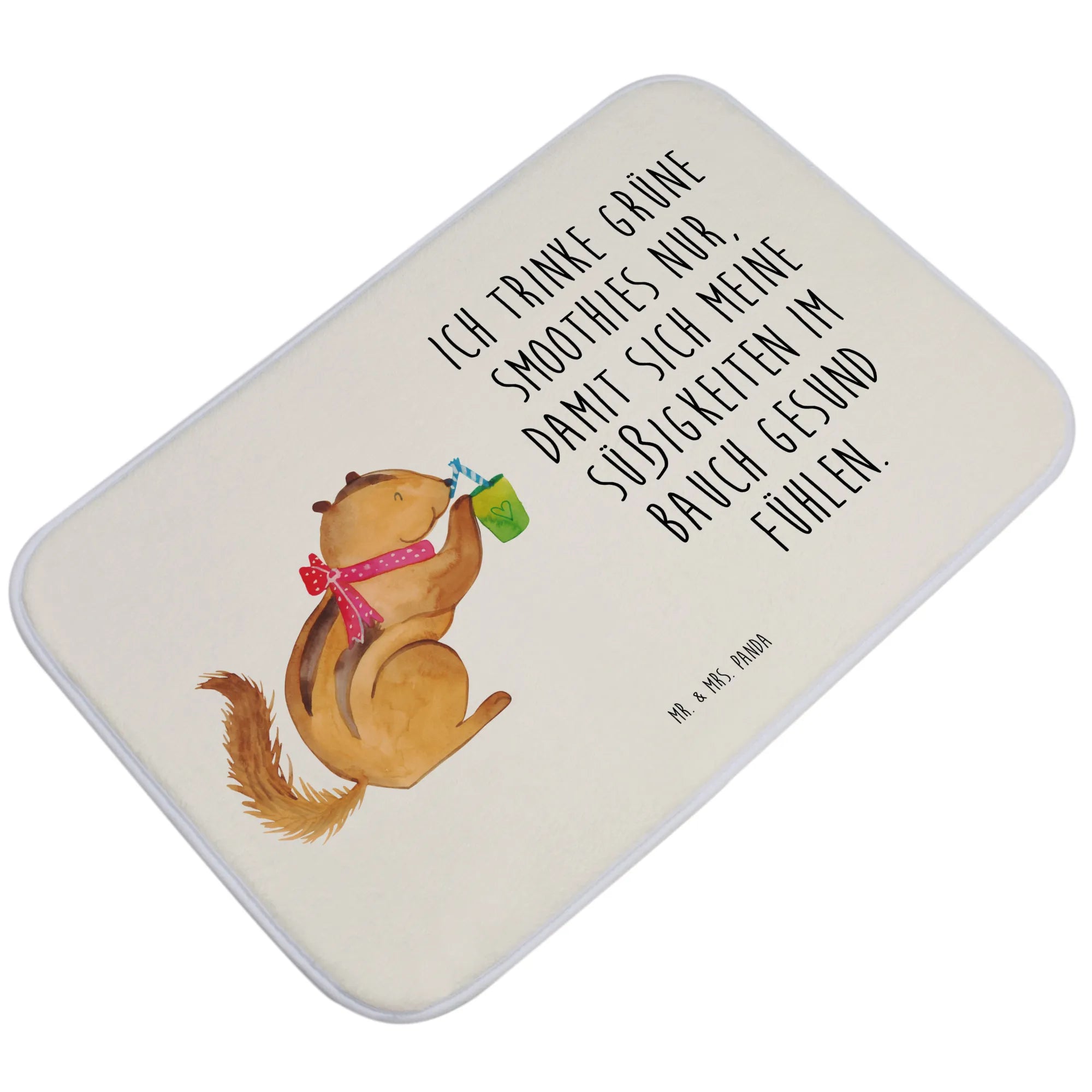 Mach dein Badezimmer zu einem Ort der Freude und Gemütlichkeit mit dem Eichhörnchen Smoothie Badvorleger von Mr. & Mrs. Panda! Ein kleines Stückchen Natur und Freude, das deinen Tag ein Stückchen besser macht. Lass dich von der Vielfalt und der Farbenfreude der Small World Kollektion begeistern und verwandle dein Badezimmer in eine Wohlfühloase.