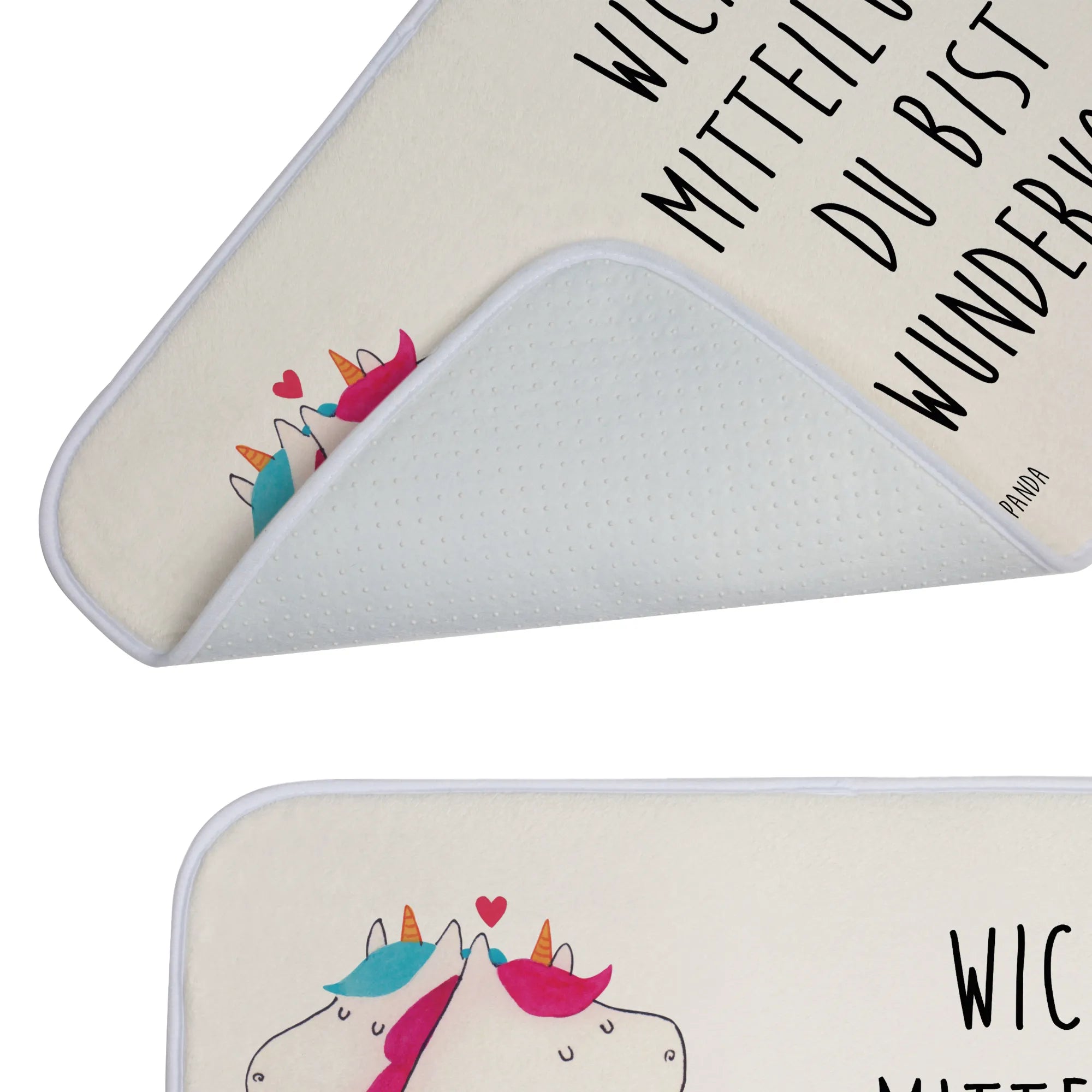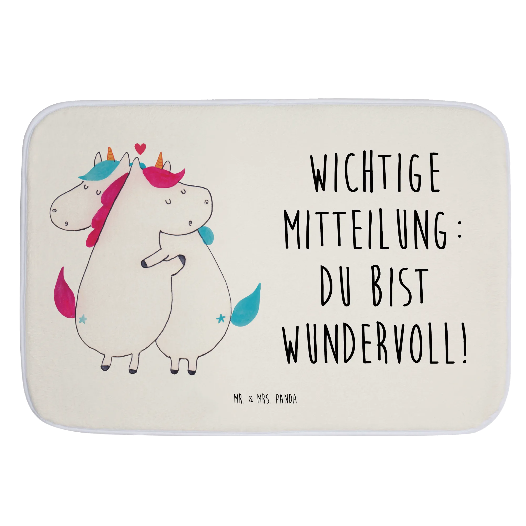 Verschenke Freude und Liebe mit diesem einzigartigen Badvorleger. Jeder Blick auf die süßen Einhörner, die sich als perfekte Partner umarmen, wird die Herzen Deiner Lieben erwärmen und sie daran erinnern, wie wundervoll sie sind. Ob für Partner, Freunde oder Familienmitglieder – dieser Badvorleger ist ein durch und durch liebevolles Geschenk, das in jedes Zuhause gehört. Mit dem Badvorleger von Mr. & Mrs. Panda bringst Du nicht nur Farbe, sondern auch eine Portion Herz und Humor in Dein Badezimmer. Erlebe mit jedem Schritt die Magie von Einhörnern und die Botschaft der Zuneigung!