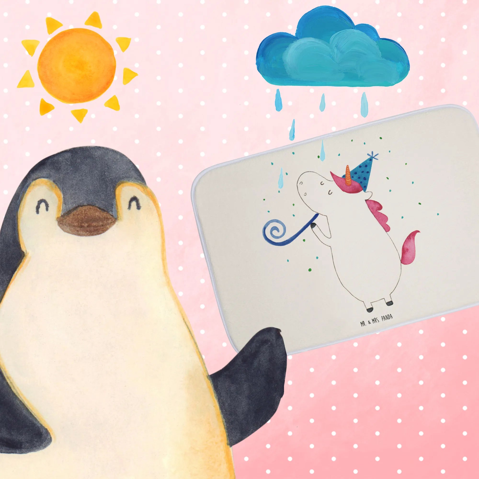 Mit der 'Einhorn Party'-Kollektion von Mr. & Mrs. Panda holst du dir ein Stückchen Magie in dein Badezimmer. Ein Einhorn, das gerne das Leben genießt und immer bereit ist, für gute Stimmung zu sorgen. Verschenke diesen Badvorleger an Freunde und Familie, die Einhörner lieben oder auf der Suche nach einem besonderen Geschenk sind. Egal ob zum Geburtstag, als Einweihungsgeschenk oder einfach mal so – dieser Badvorleger wird garantiert für Begeisterung sorgen!