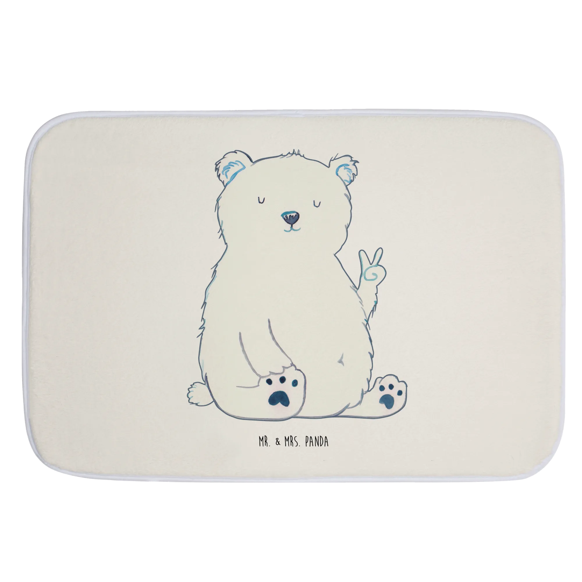 Du suchst nach dem perfekten Badvorleger für dein Badezimmer? Der Badvorleger Eisbär Faul von Mr. & Mrs. Panda ist genau das Richtige für dich! Mit einem besonders süßen Motiv eines Eisbären, der das Peace-Zeichen zeigt, zaubert dieser Badezimmerteppich ein Lächeln in dein Gesicht. Die Kombination aus flauschiger Premium Kunstfaser und einer rutschfesten Gummibeschichtung sorgt nicht nur für einen tollen Look, sondern auch für Sicherheit, wenn du aus der Dusche steigst.