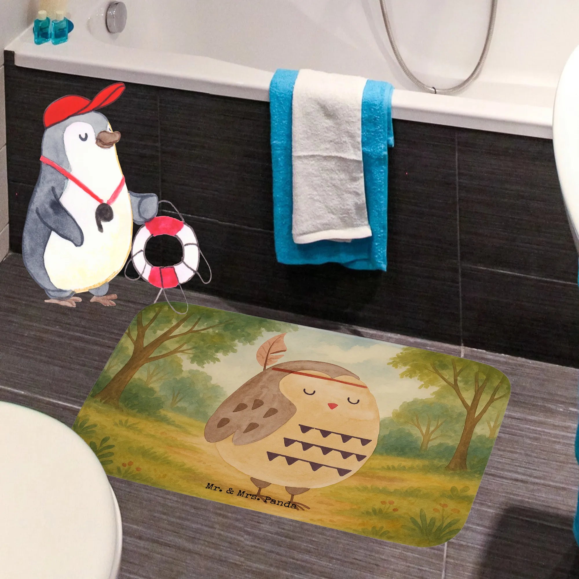 Badematte Eule Federschmuck Design