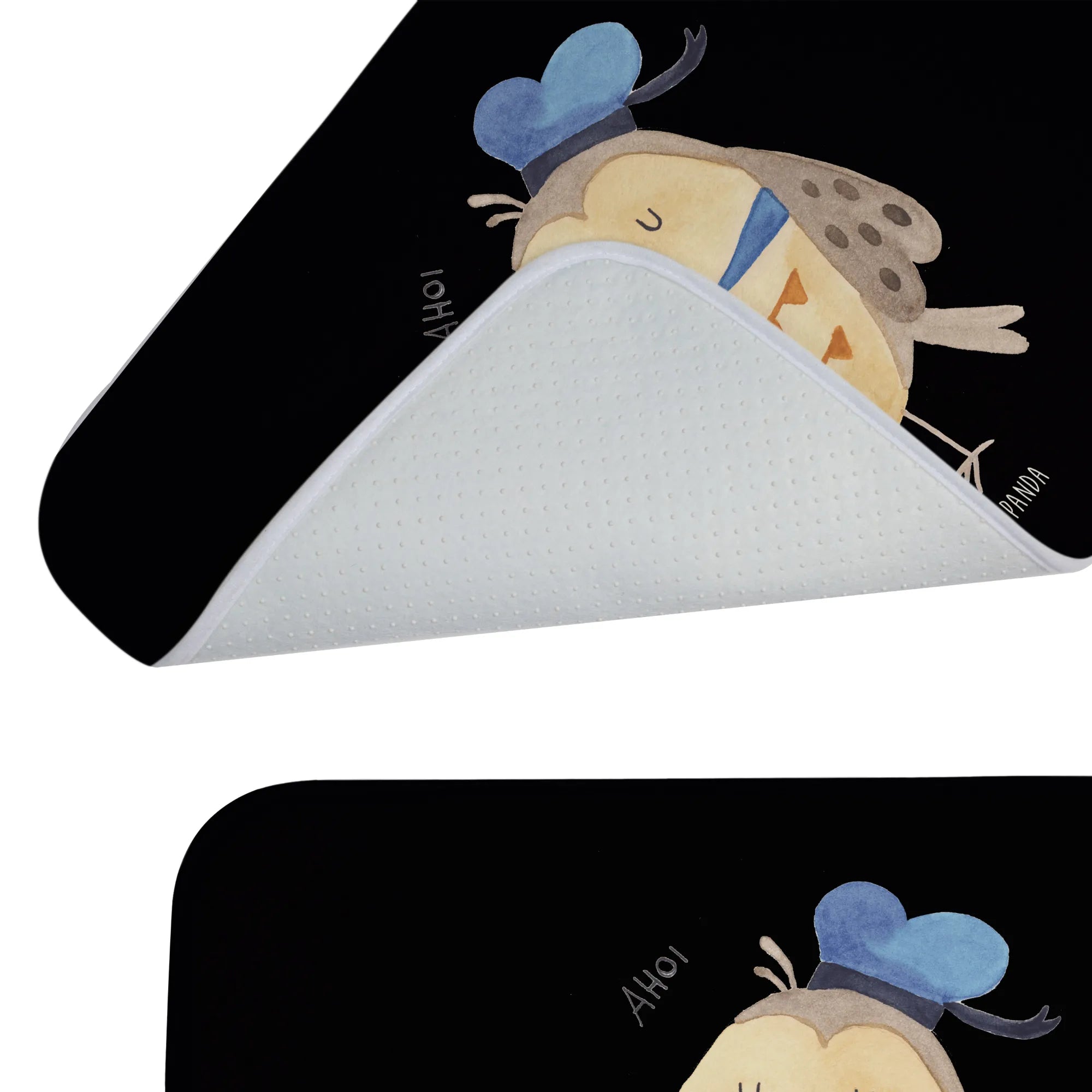 Badematte Eule Matrose - mit Spruch - Schwarz