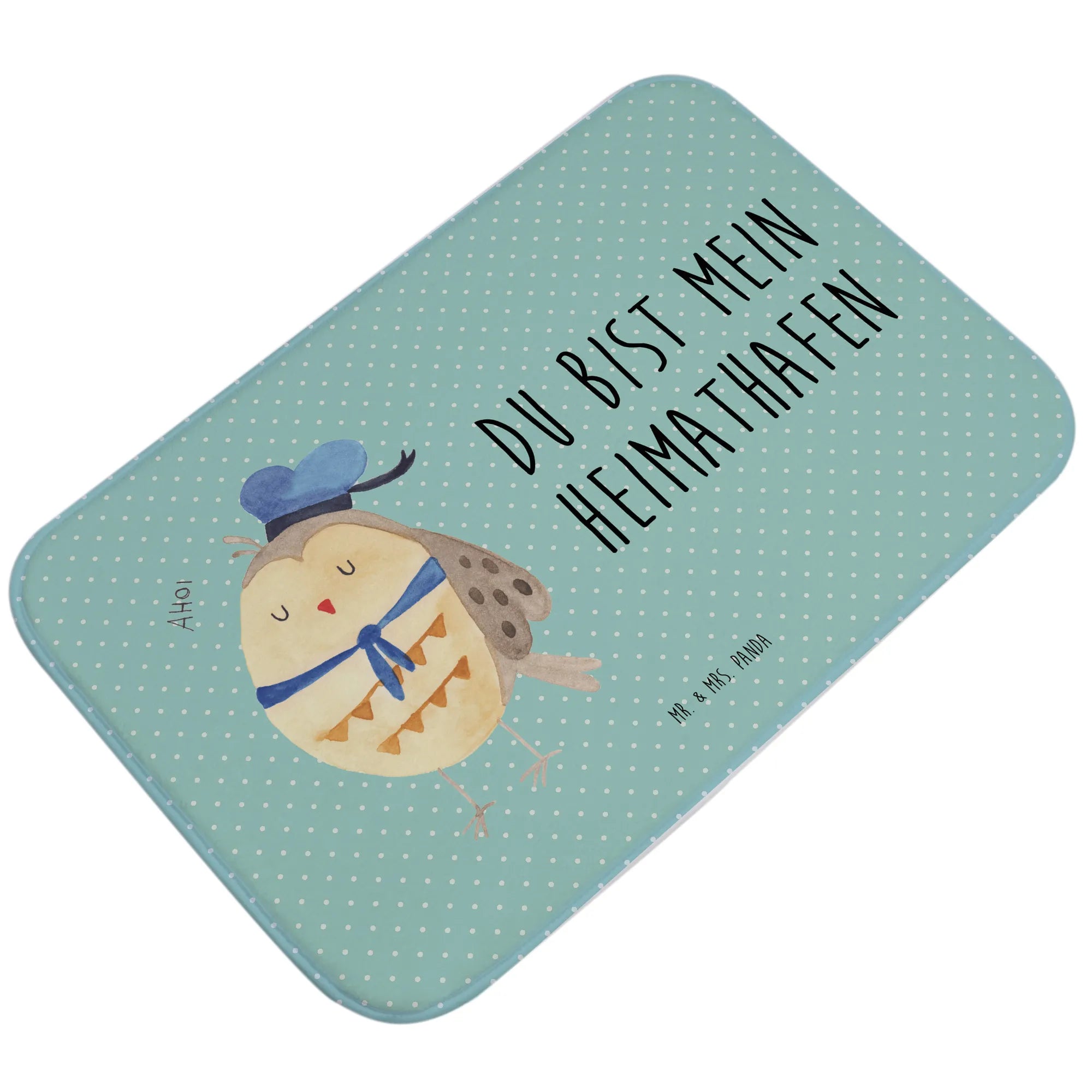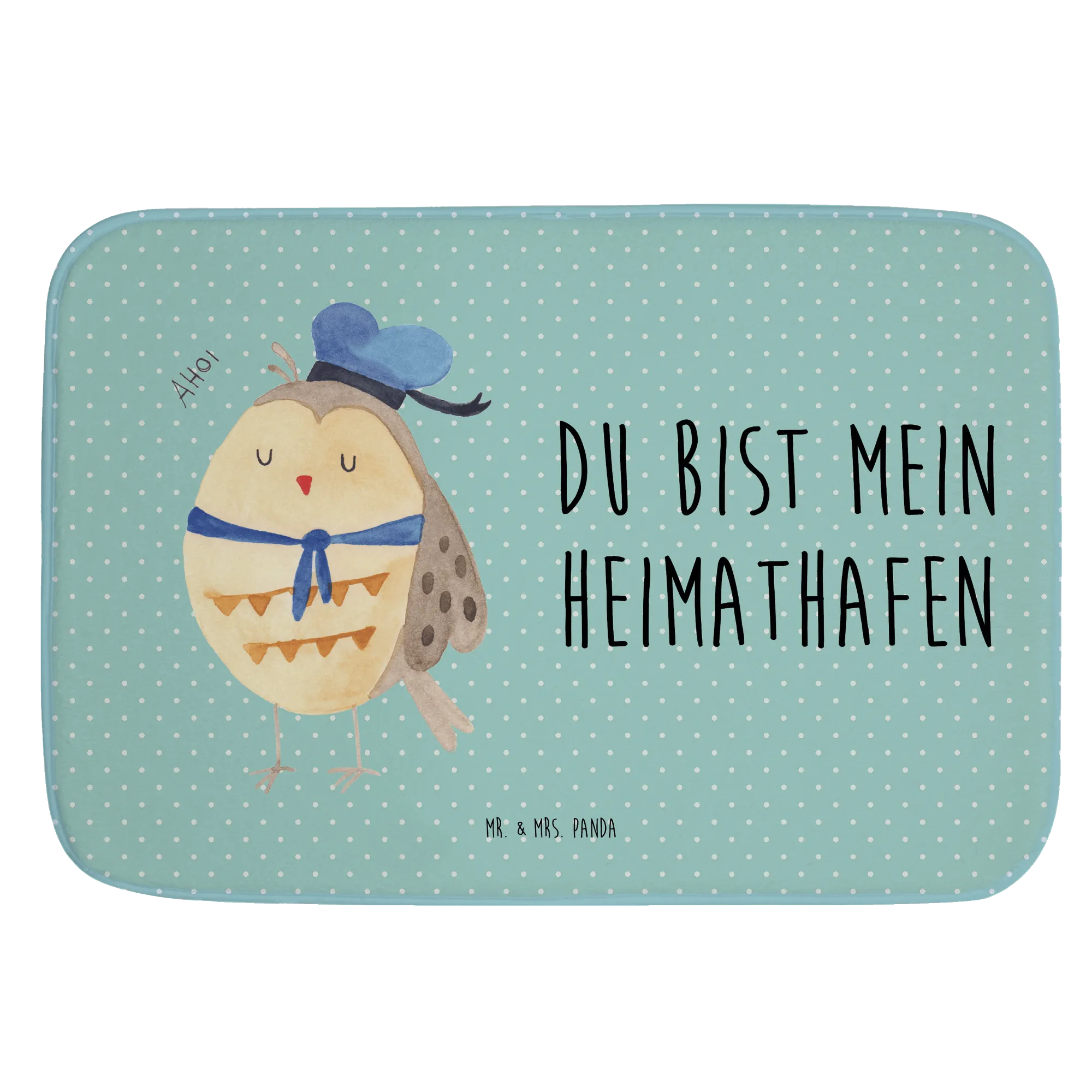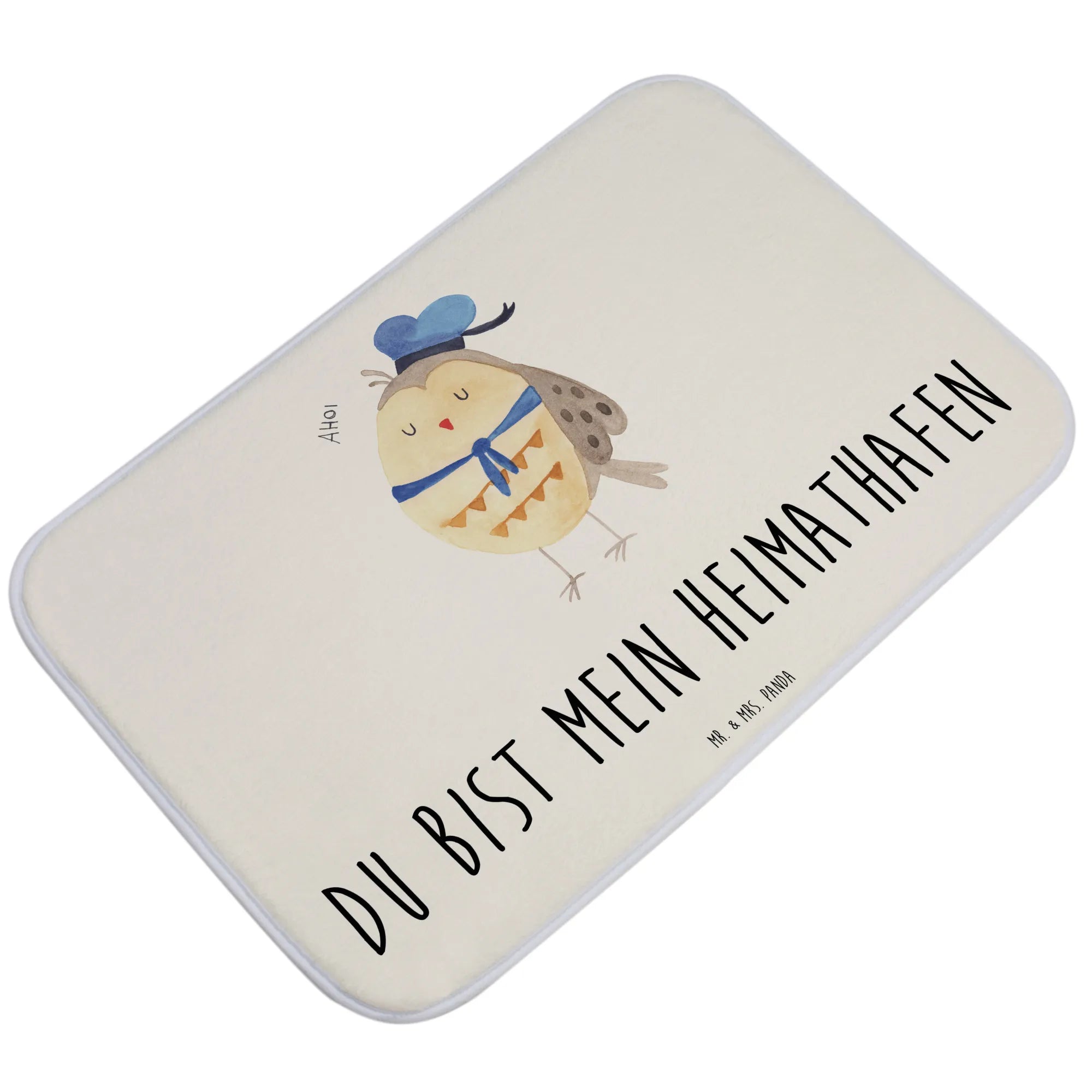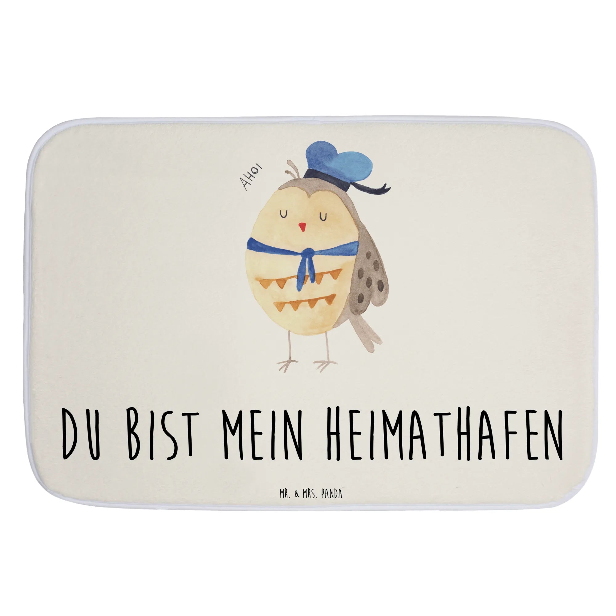 Entdecke die zauberhafte Eule Matrosen von Mr. & Mrs. Panda - der perfekte Badvorleger für alle, die Eulen lieben! 🦉 Mit ihrem süßen Matrosenhut und dem Spruch „Du bist mein Heimathafen“ bringt diese Badematte nicht nur einen Hauch von maritimer Fröhlichkeit in dein Badezimmer, sondern auch ein warmes und einladendes Ambiente.