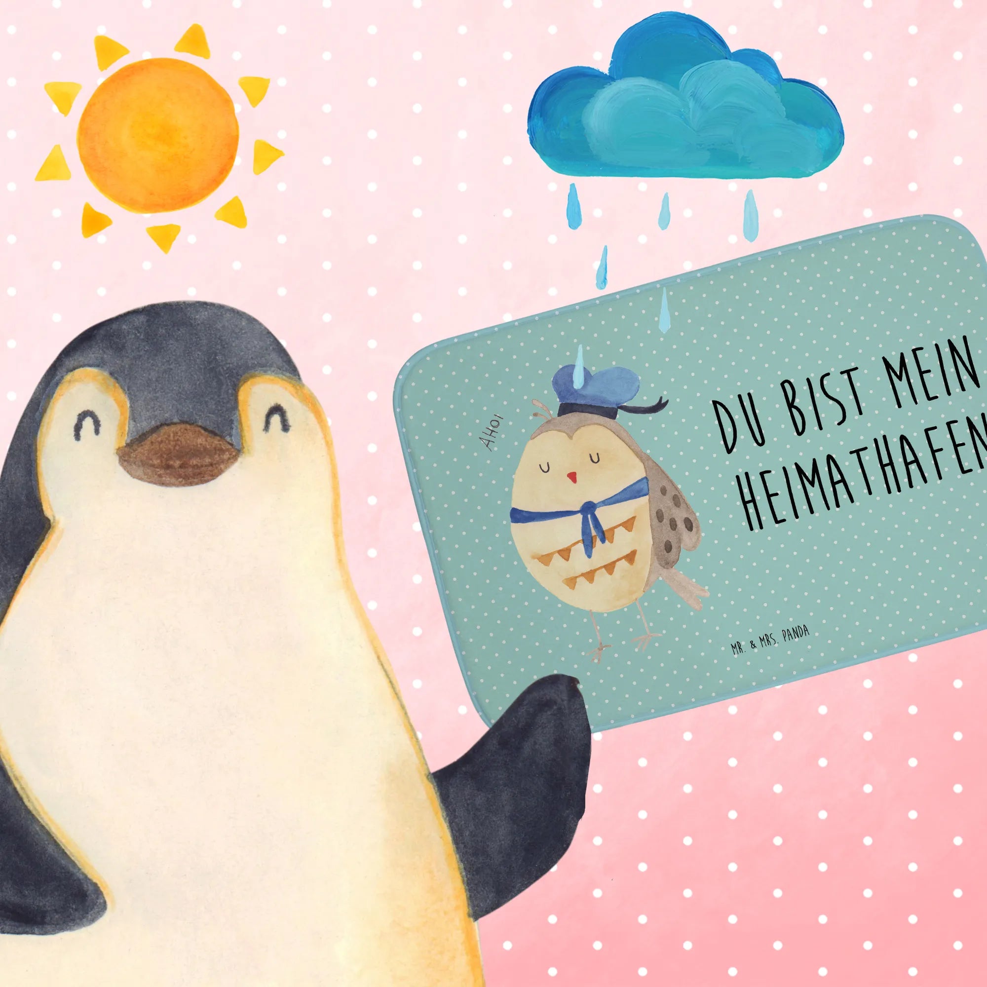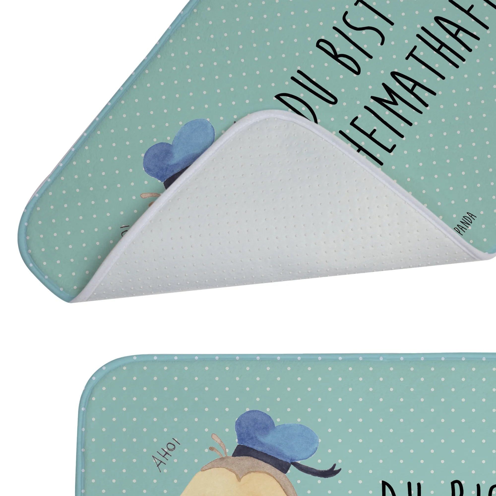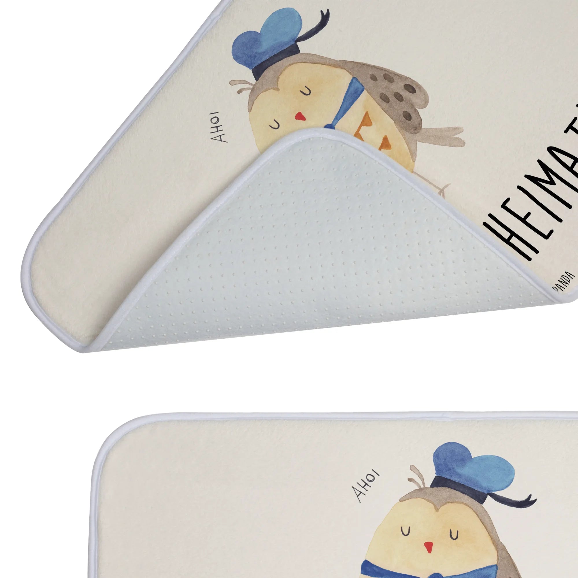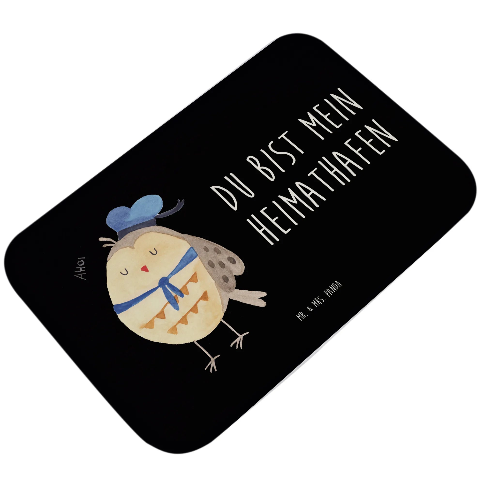 Entdecke die zauberhafte Eule Matrosen von Mr. & Mrs. Panda - der perfekte Badvorleger für alle, die Eulen lieben! 🦉 Mit ihrem süßen Matrosenhut und dem Spruch „Du bist mein Heimathafen“ bringt diese Badematte nicht nur einen Hauch von maritimer Fröhlichkeit in dein Badezimmer, sondern auch ein warmes und einladendes Ambiente.