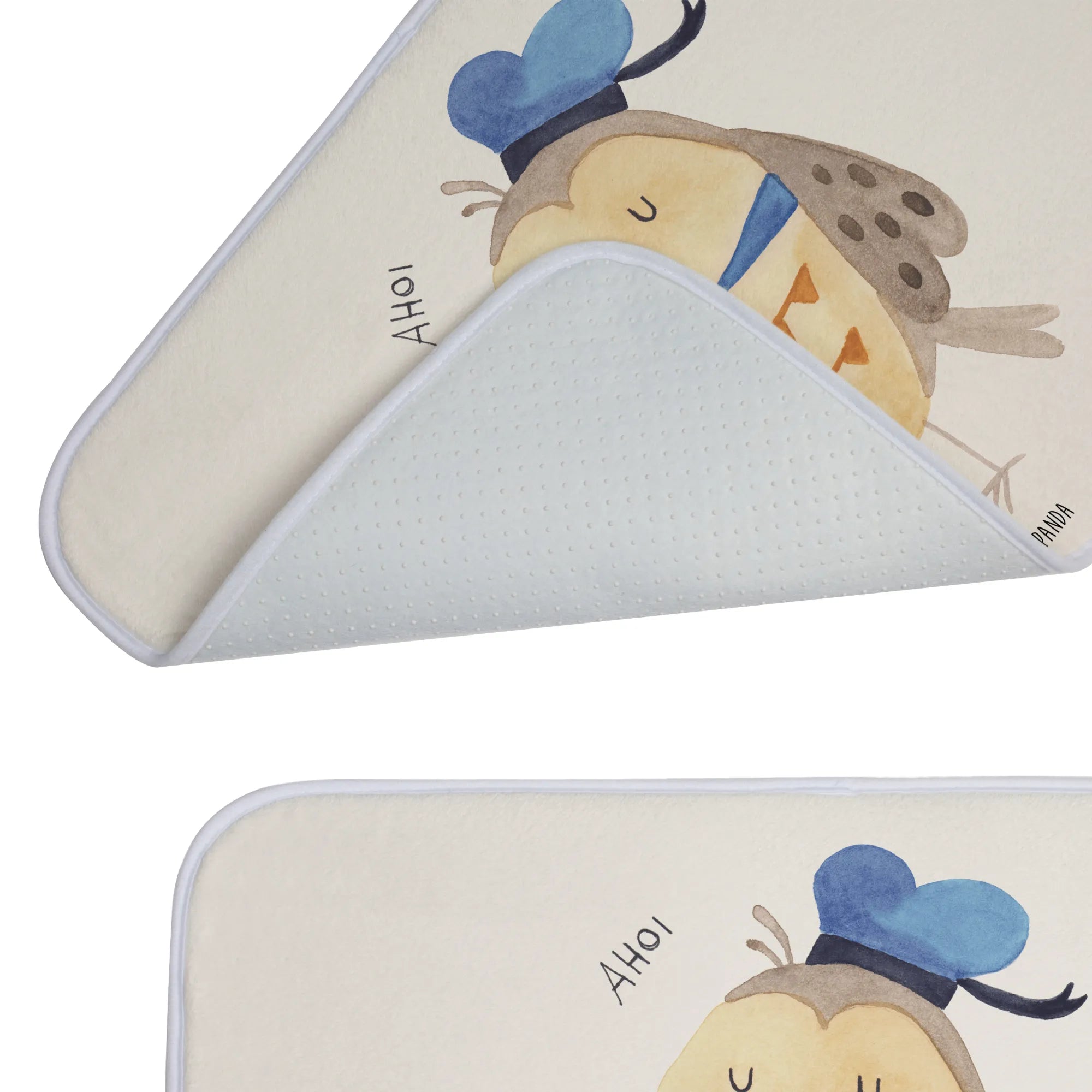 Diese niedliche Eule mit ihrem Matrosenhut ist mehr als nur ein Badvorleger – sie ist wie ein treuer Begleiter, der dir mit ihrem fröhlichen Design ein Lächeln ins Gesicht zaubert. Die Eule lädt dich mit ihrem charmanten Blick ein, in die Welt der Abenteuer einzutauchen, egal ob beim Duschen oder einfach beim Entspannen im Bad.