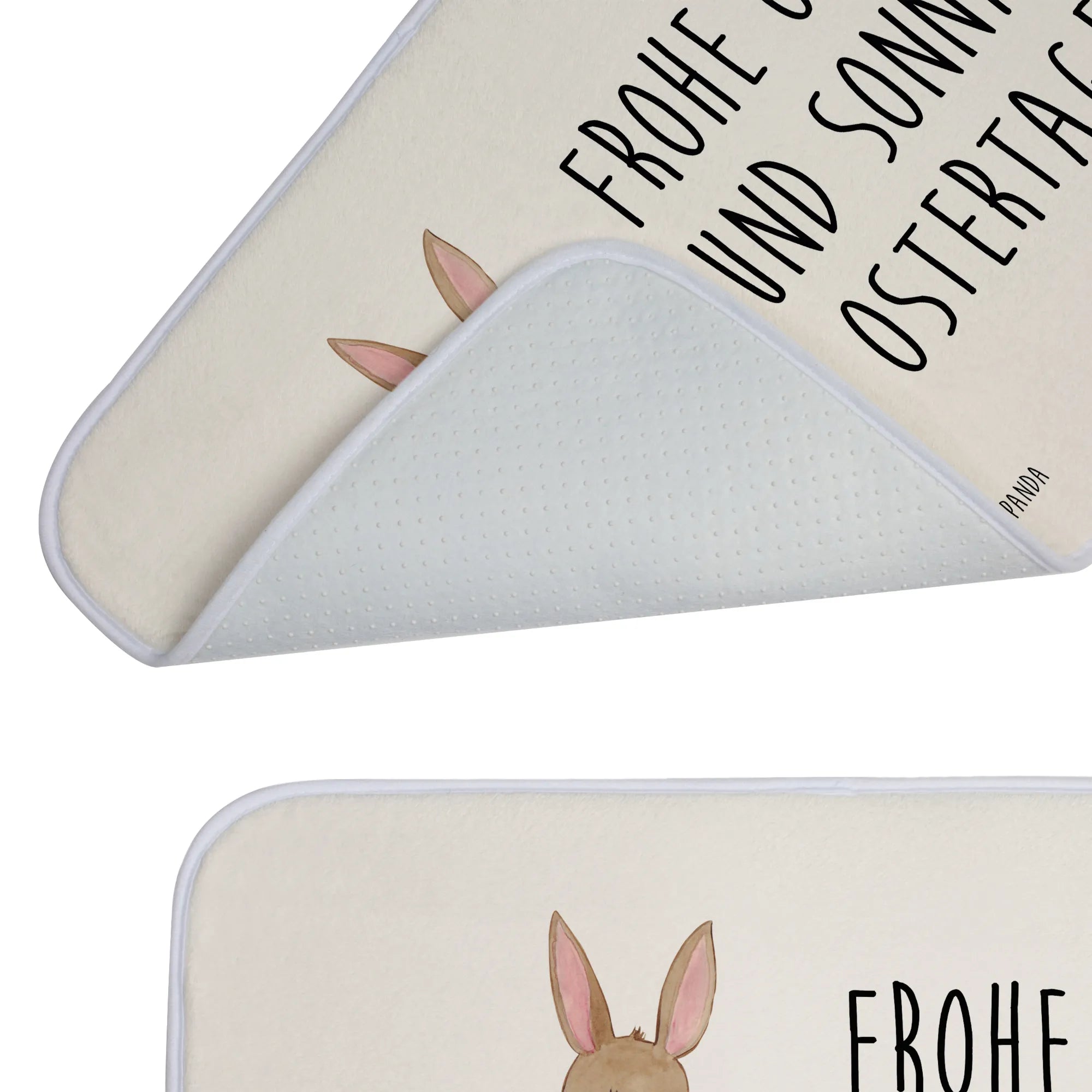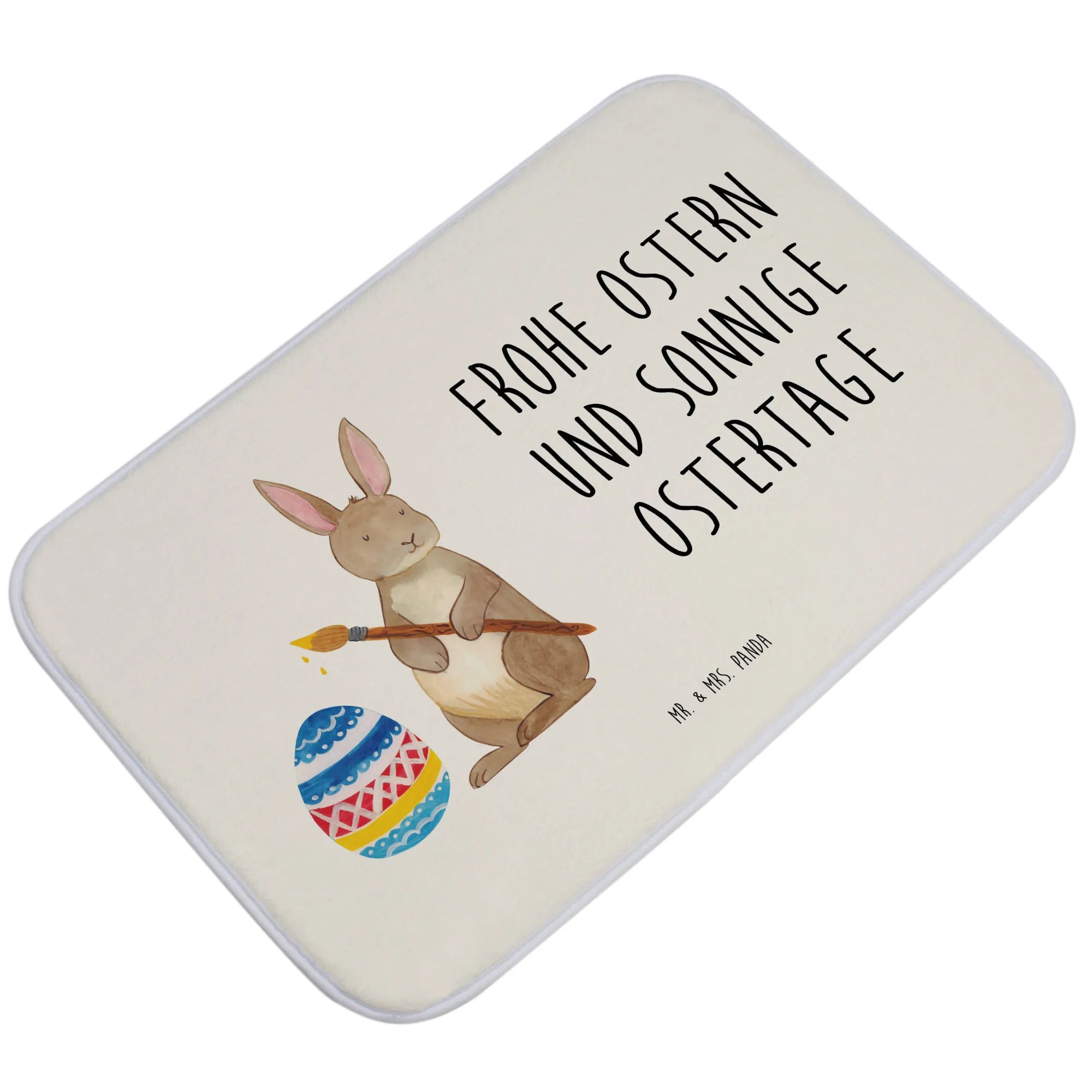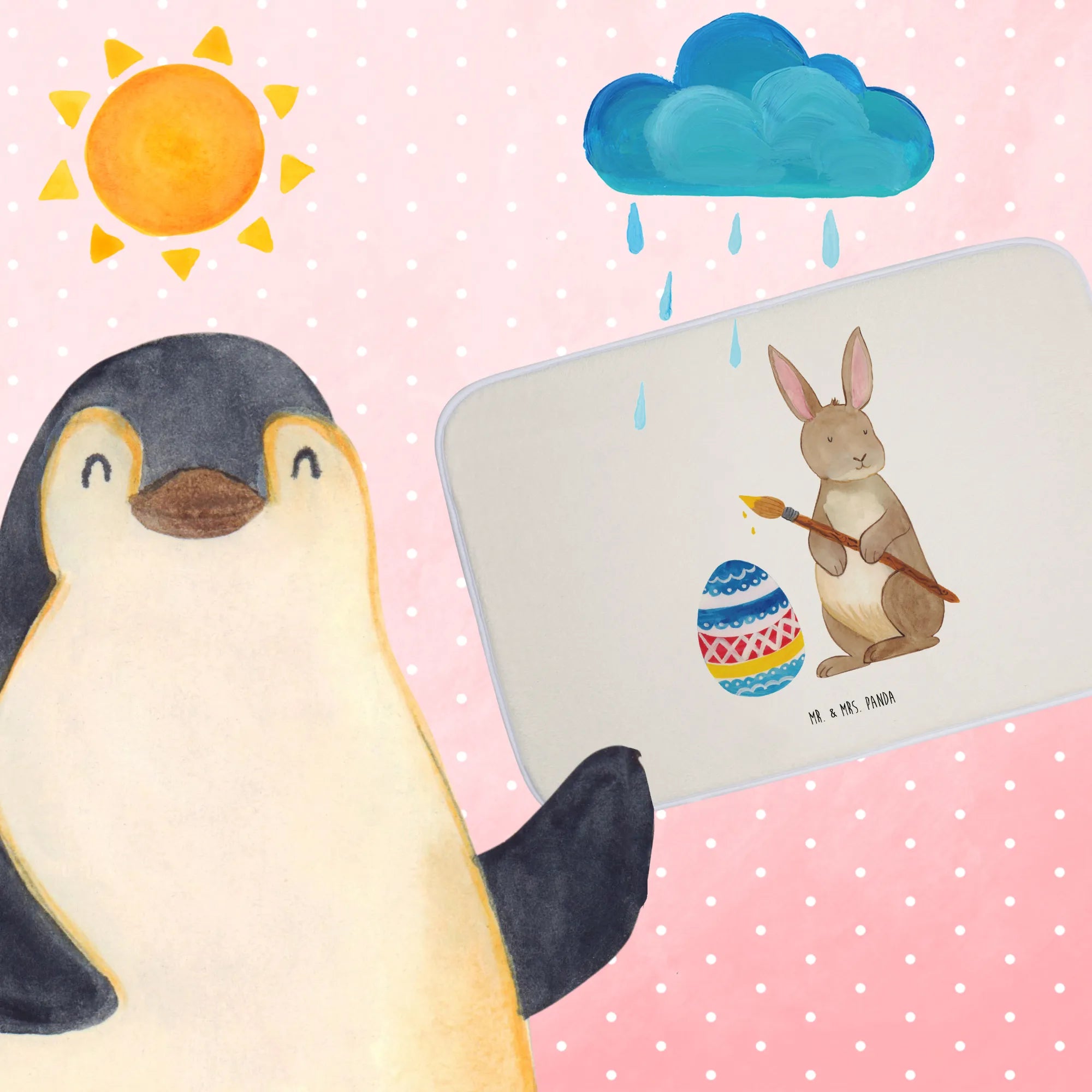 Schaffe mit dem Badvorleger "Hase Eiermalen" eine farbenfrohe und einladende Atmosphäre in Deinem Badezimmer. Er passt perfekt zu weiteren Produkten aus der Ostern-Kollektion von Mr. & Mrs. Panda. Lass den Frühling herein – mit dieser wunderbaren Badematte wird das Osterfest unvergesslich!
