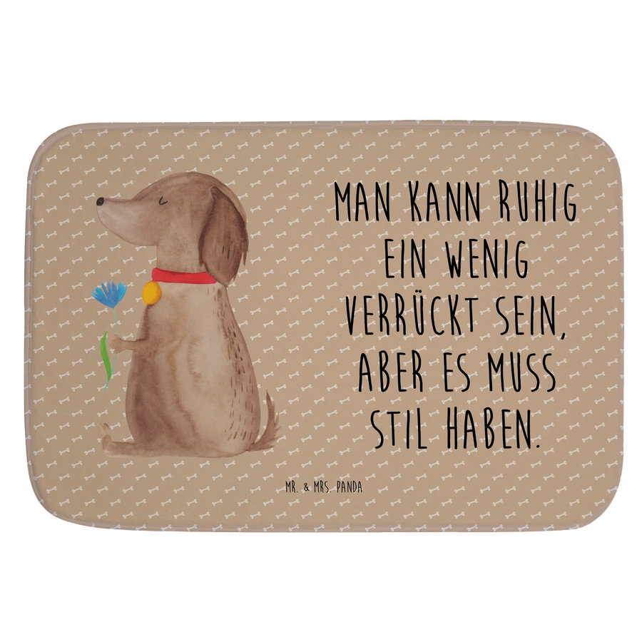 Entdecke die perfekte Ergänzung für dein Badezimmer mit unserem bezaubernden Badvorleger "Hund Blume" aus der einzigartigen Hunde Kollektion von Mr. & Mrs. Panda!