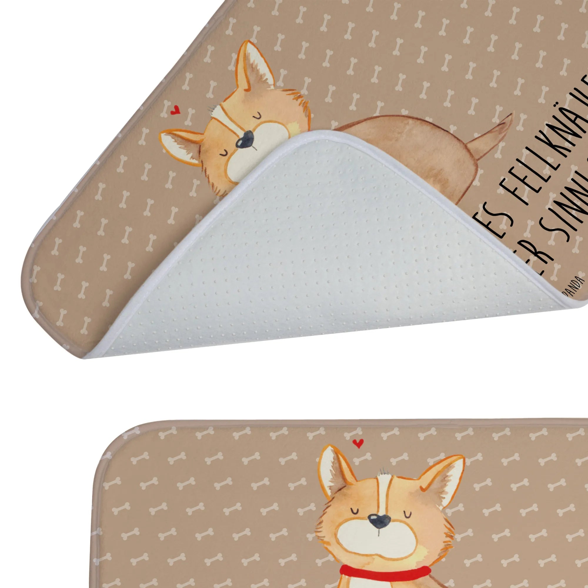 Entdecke die perfekte Ergänzung für Dein Badezimmer mit dem Badvorleger Hundeglück von Mr. & Mrs. Panda! Dieser bezaubernde Badteppich bringt nicht nur eine Portion Farbe und Freude in Deine vier Wände, sondern besticht auch durch sein besonders flauschiges Material. Mit einem fröhlichen Hund mit rotem Halsband auf einem warmen braunen Hintergrund macht dieser Badvorleger jeden Tag ein Stückchen schöner. Der Spruch „Ein Leben ohne süßes Fellknäuel ist möglich, aber sinnlos.“ wird alle Hundeliebhaber zum Schmunzeln bringen.