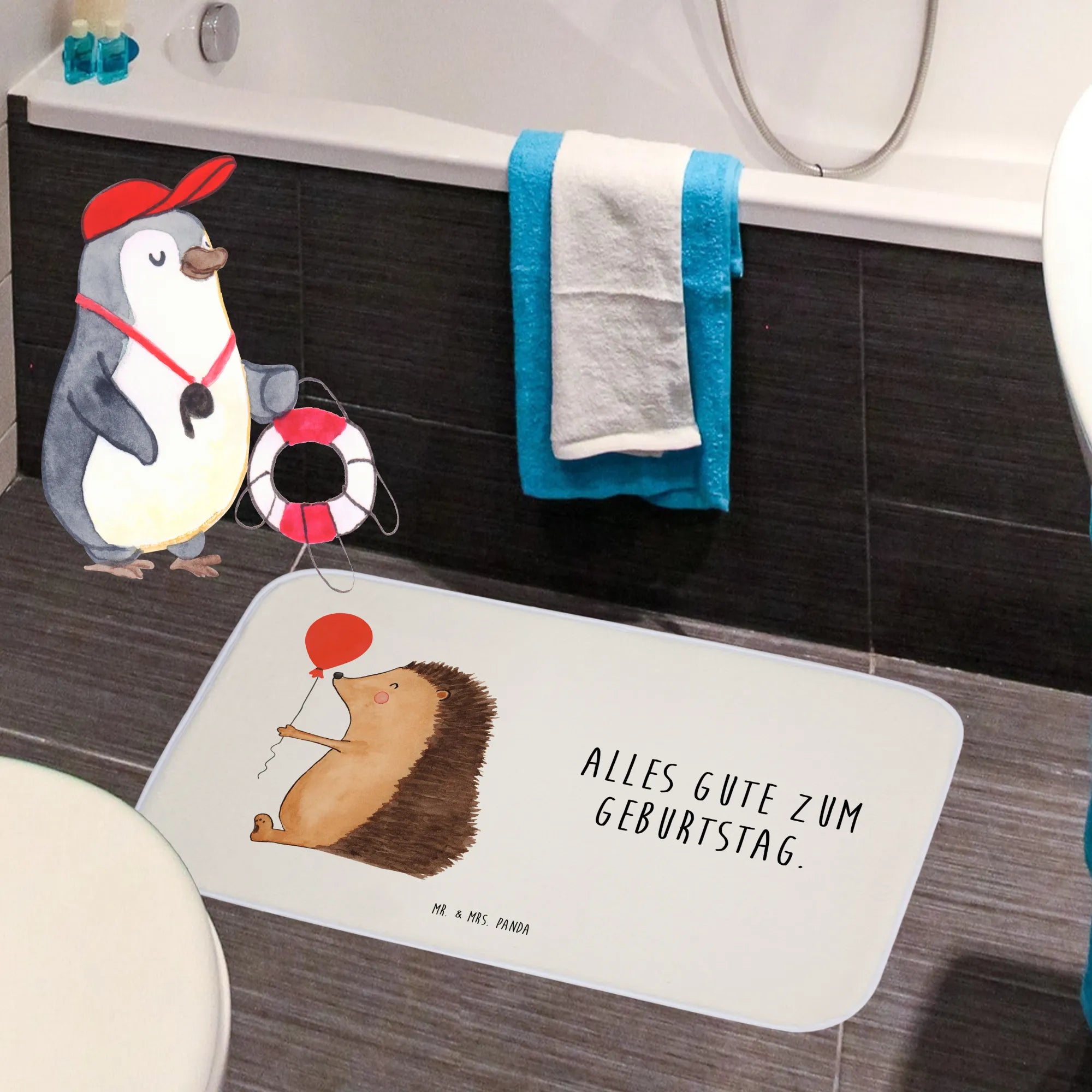 Diese zauberhafte Badematte von Mr. & Mrs. Panda ist die perfekte Ergänzung für dein Badezimmer! Mit einem fröhlichen Igel, der einen Luftballon hält, bringt sie sofort gute Laune in jeden Raum.