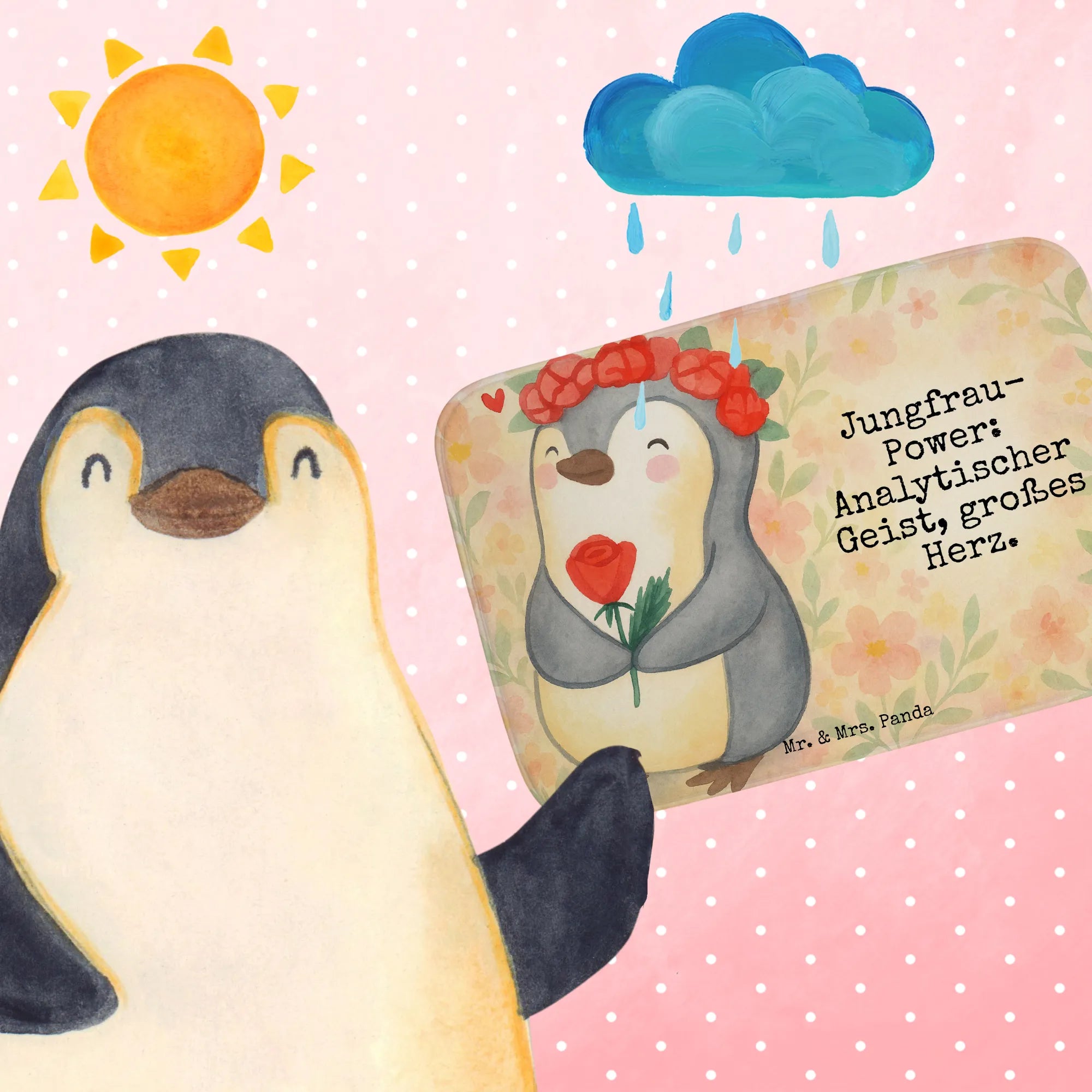 Unser Pinguin mit der roten Rose ist ein starker Ausdruck der Jungfrau-Energie – analytisch, liebevoll und voller Herz. Die sanften Aquarellfarben harmonieren perfekt mit der Darstellung, die die Zuneigung und Hingabe der Jungfrauen symbolisiert. Lass diesen Pinguin dein guter Begleiter werden und erinnere dich immer daran, dass das große Herz der Jungfrau in den kleinen Gesten steckt. Jungfrau-Power: Analytischer Geist, großes Herz – das perfekte Geschenk, um die einzigartigen Eigenschaften dieses Sternzeichens zu feiern. Ob als Geburtstagsgeschenk oder einfach nur so, dieses Motiv bringt einen Hauch von Wärme und Freude in dein Zuhause.