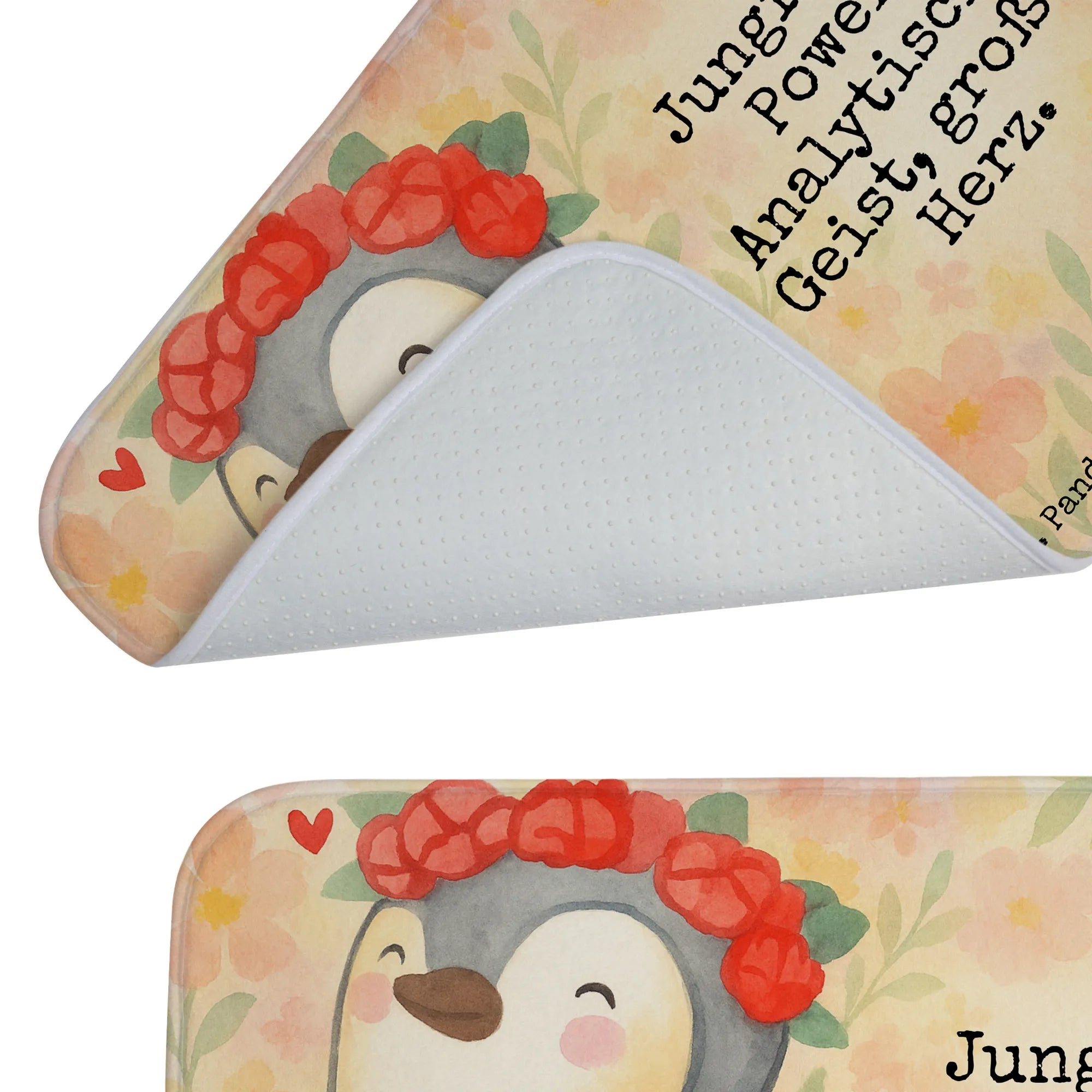 Dieser wunderschöne Badvorleger von Mr. & Mrs. Panda bringt nicht nur Farbe in dein Badezimmer, sondern sorgt auch für einen angenehmen Komfort unter den Füßen. Mit seinen Maßen von 590 mm x 400 mm passt er perfekt vor die Dusche oder Badewanne. Der Badvorleger ist aus flauschiger Premium Kunstfaser hergestellt und verfügt über eine rutschfeste Gummibeschichtung, die das Ausrutschen verhindert. Die liebevoll bedruckten Motive und Sprüche verleihen deinem Badezimmer eine tolle Optik und machen den Aufenthalt dort noch angenehmer. Der Badvorleger ist besonders saugstark und sorgt dafür, dass Wasser schnell aufgenommen wird, während die Vorderseite angenehm weich bleibt. Du kannst ihn ganz leicht bei 30°C in der Waschmaschine waschen, sodass er immer frisch und einladend aussieht.
