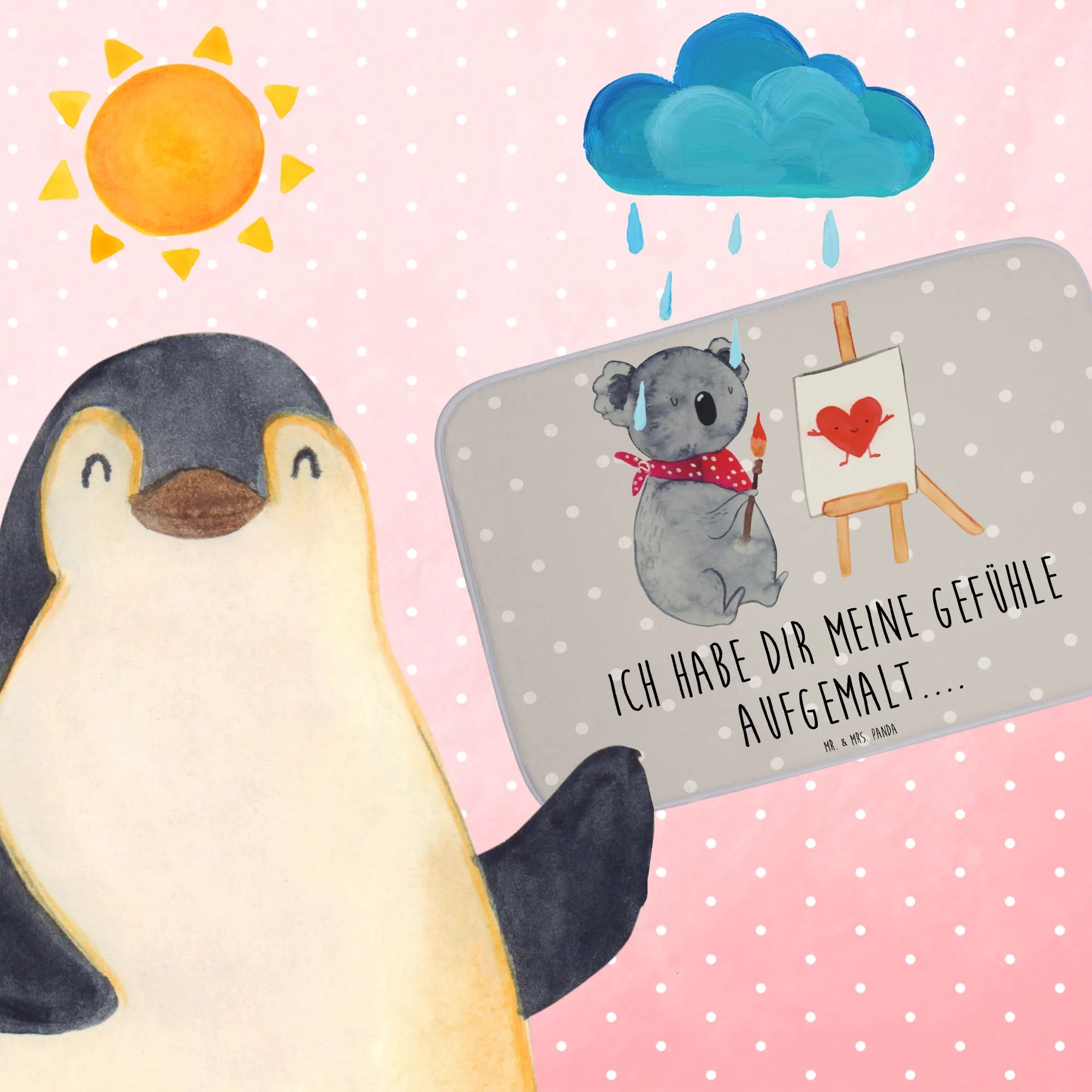 Der Badvorleger Koala Künstler von Mr. & Mrs. Panda ist nicht nur ein wunderschönes Accessoire für dein Badezimmer, sondern auch der perfekte Liebesbeweis für jeden Koala-Fan! Mit einem süßen Koala, der auf einer großen Leinwand malt, versprüht dieser Badteppich die liebevolle Botschaft: "Ich habe dir meine Gefühle aufgemalt...." und bringt ein Stück Australien in dein Zuhause.