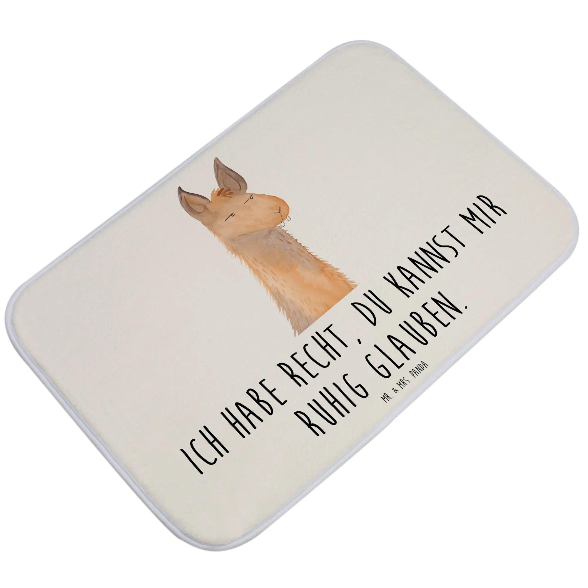 Egal, ob du ihn dir selbst gönnen oder als Geschenk für deine beste Freundin wählst – der Badvorleger ist ein echter Hingucker. Das süße Lama mit dem Spruch 'Ich habe Recht, du kannst mir ruhig glauben.' zaubert dir ein Lächeln ins Gesicht und verbindet Funktionalität mit einem Hauch von Spaß.