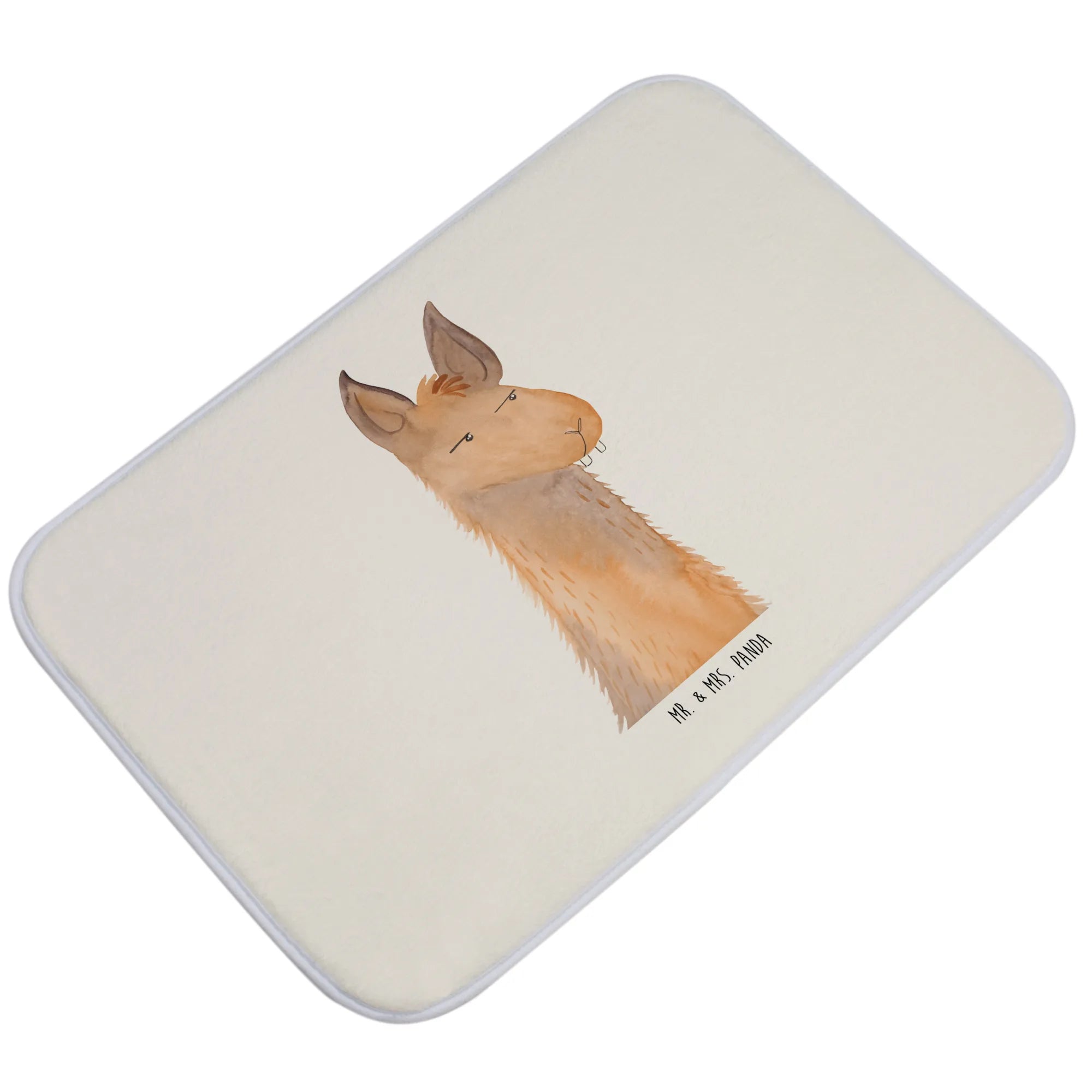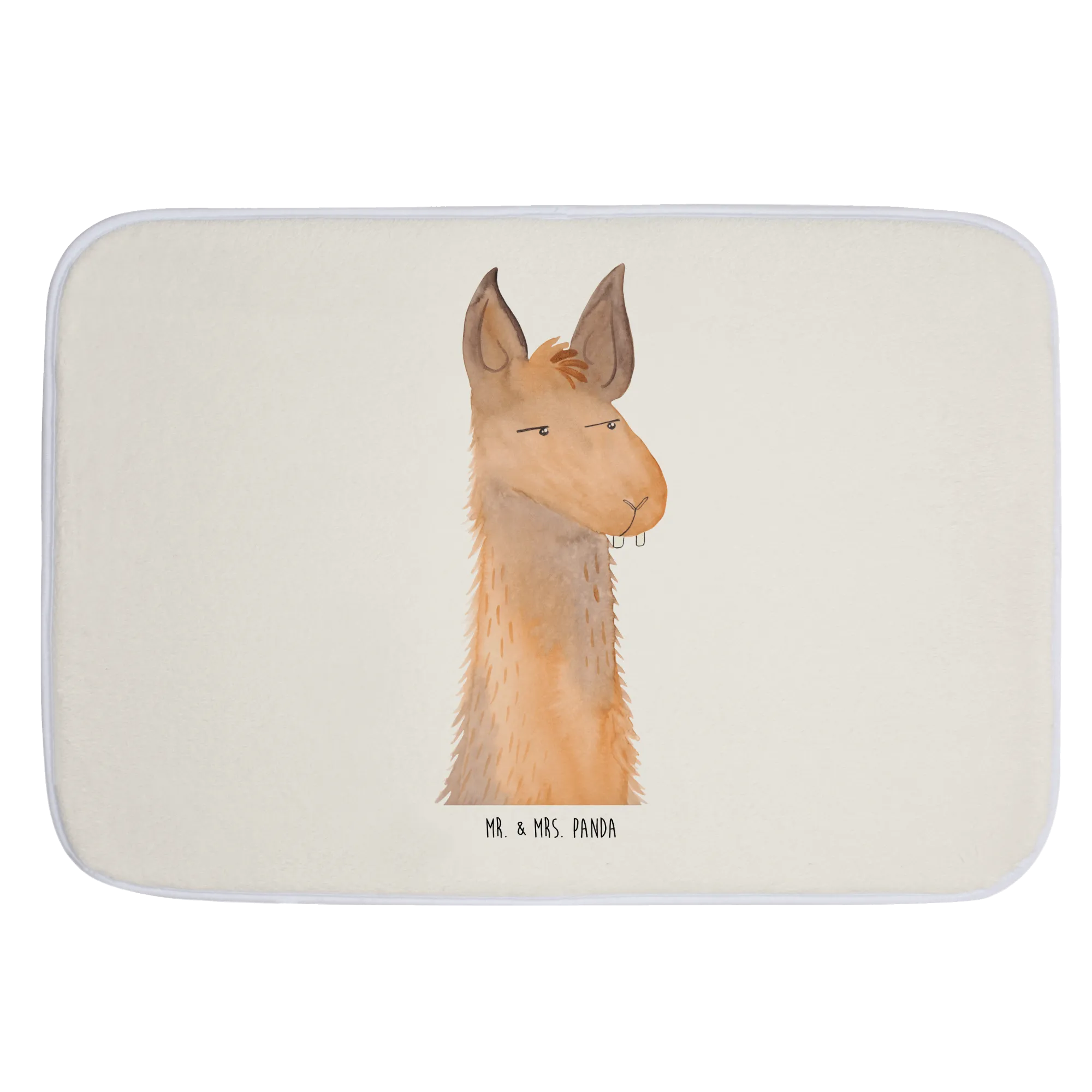 Der Badvorleger mit dem genervten Lamakopf von Mr. & Mrs. Panda ist nicht nur ein praktisches Accessoire für dein Badezimmer, sondern auch ein echter Hingucker! Mit seinen flauschigen Premium Kunstfasern bringt er nicht nur eine tolle Optik in deine Wohlfühlzone, sondern sorgt auch dafür, dass du niemals wieder ausrutscht, wenn du frisch geduscht aus der Dusche trittst. Die Anti-Rutsch Gummibeschichtung macht diesen Badteppich zu einem sicheren Begleiter.