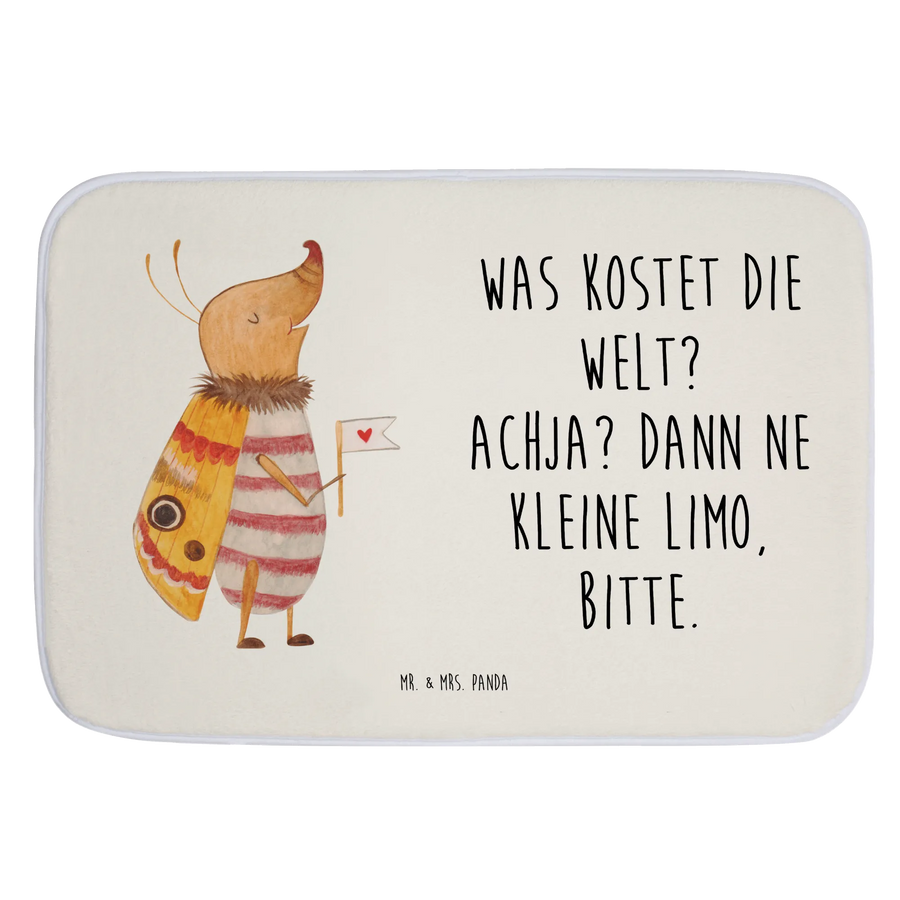 Entdecke unseren wundervollen Badvorleger "Nachtfalter mit Fähnchen" aus der zauberhaften Small World Kollektion von Mr. & Mrs. Panda! 🦋 Dieser Badvorleger ist nicht nur ein praktisches Accessoire für dein Badezimmer, sondern auch ein echter Hingucker! Die zarte Darstellung eines kleinen Nachtfalters, der mit seiner herzförmigen Fahne auf Entdeckungsreise geht, bringt gute Laune in deine eigene kleine Welt. Mit dem Spruch "Was kostet die Welt? Achja? Dann ne kleine Limo, bitte." zaubert er jedem ein Lächeln ins Gesicht.