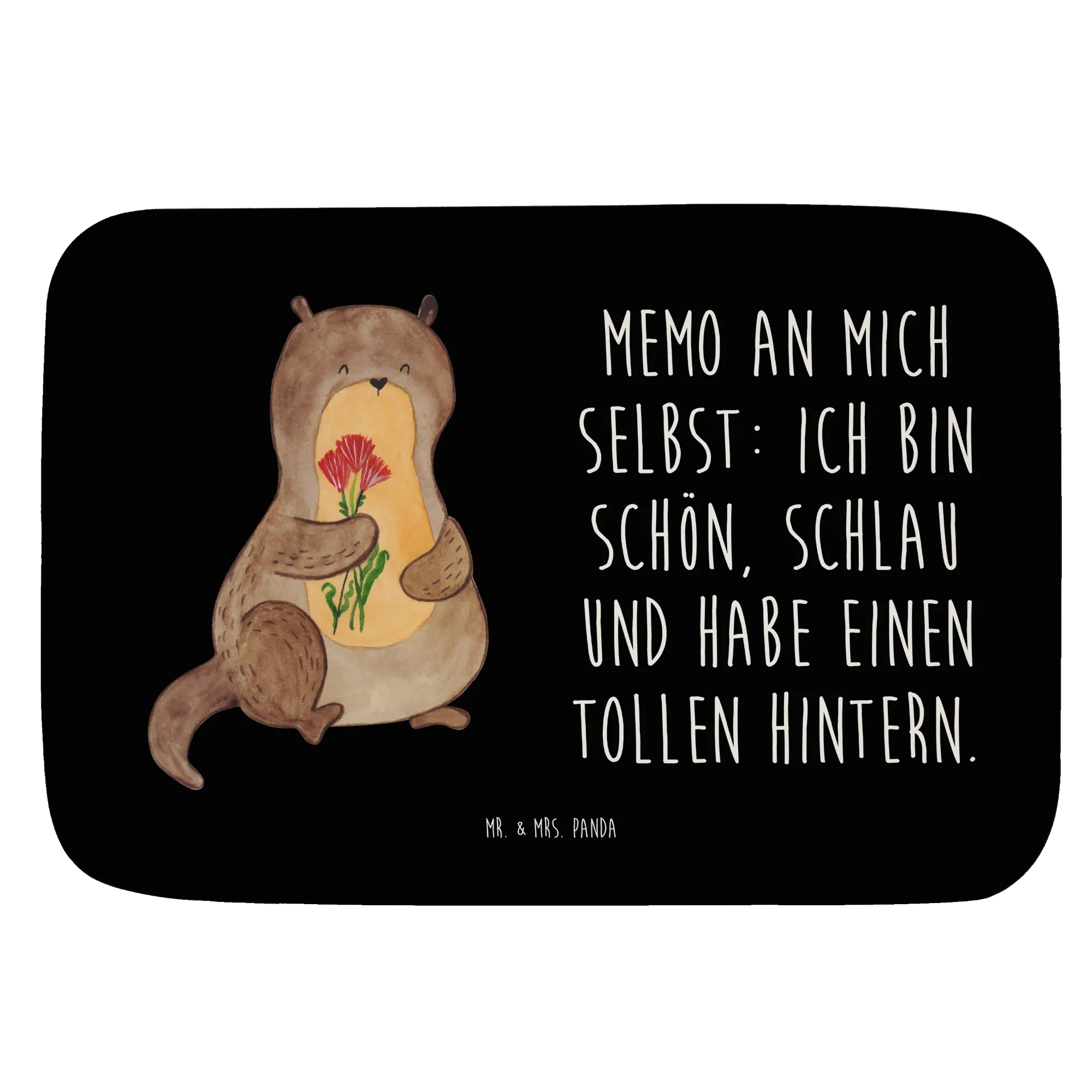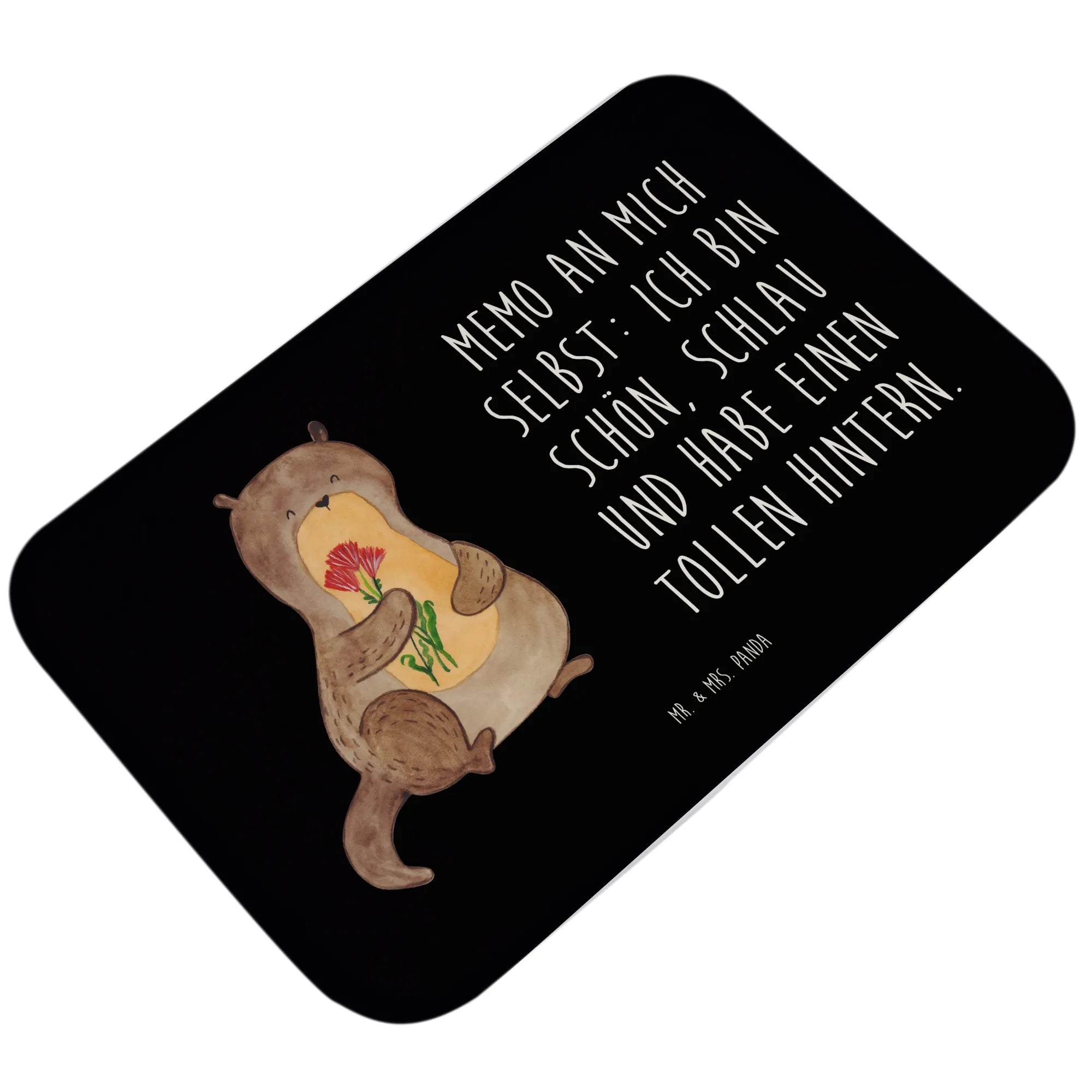 Badematte Otter Blumenstrauß - mit Spruch - Schwarz