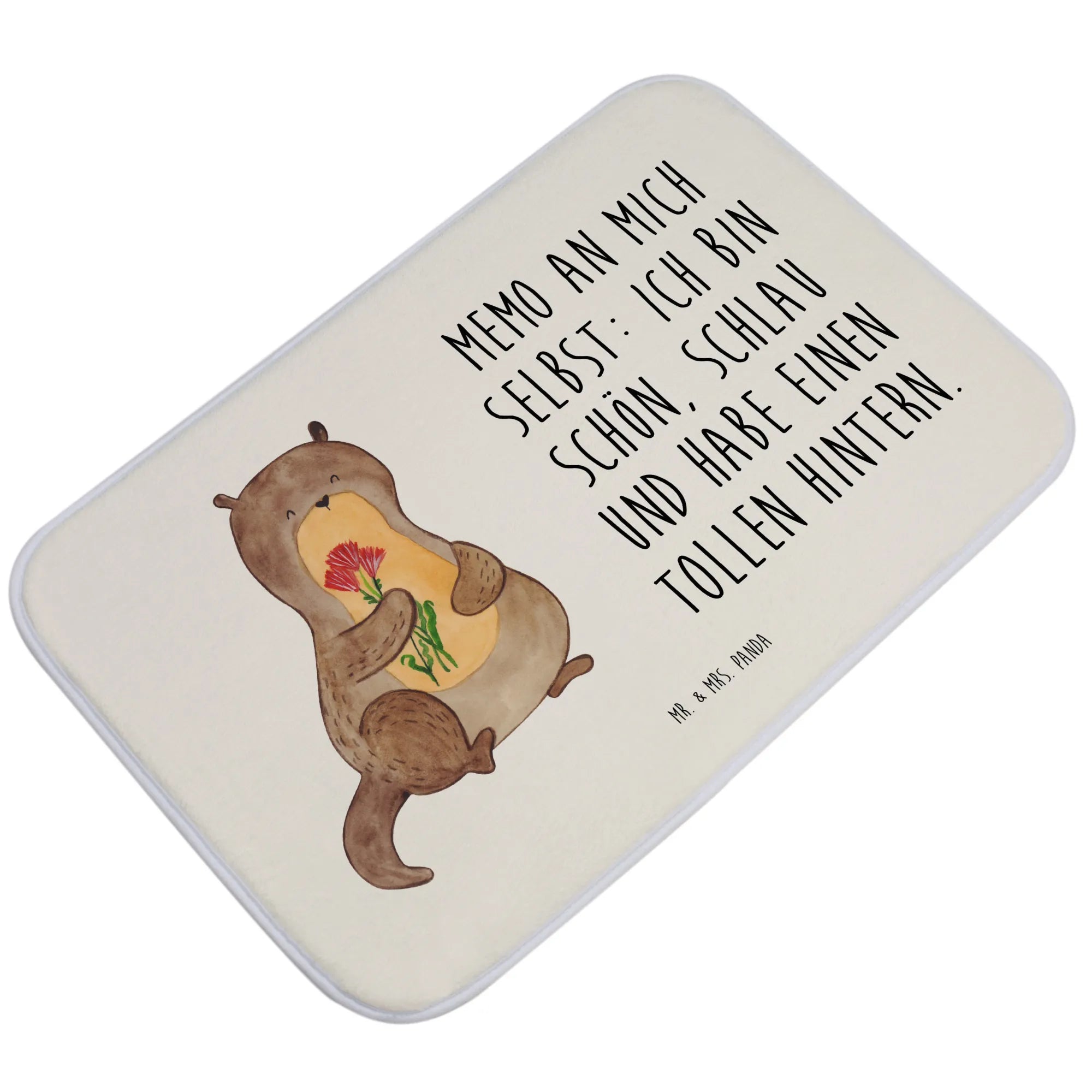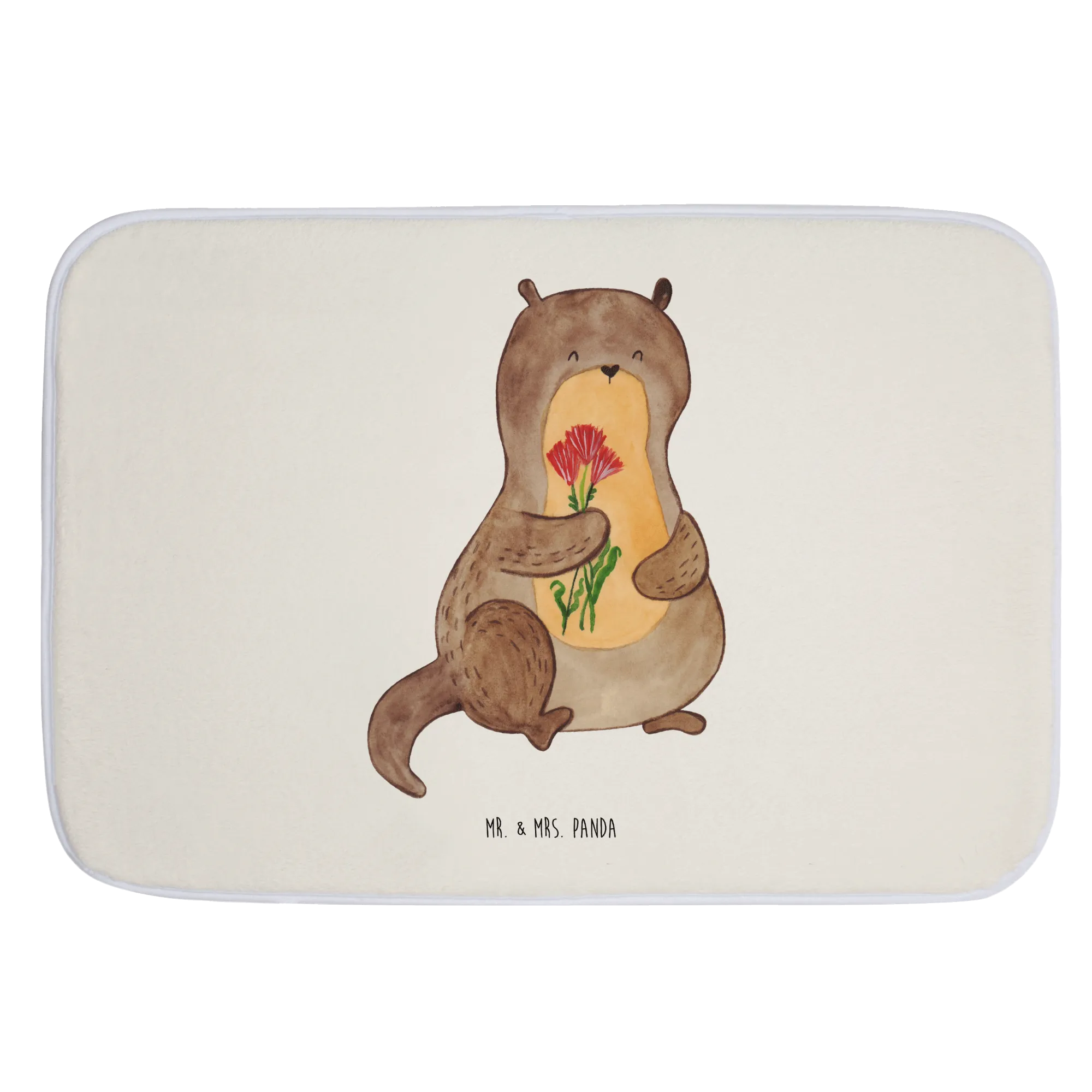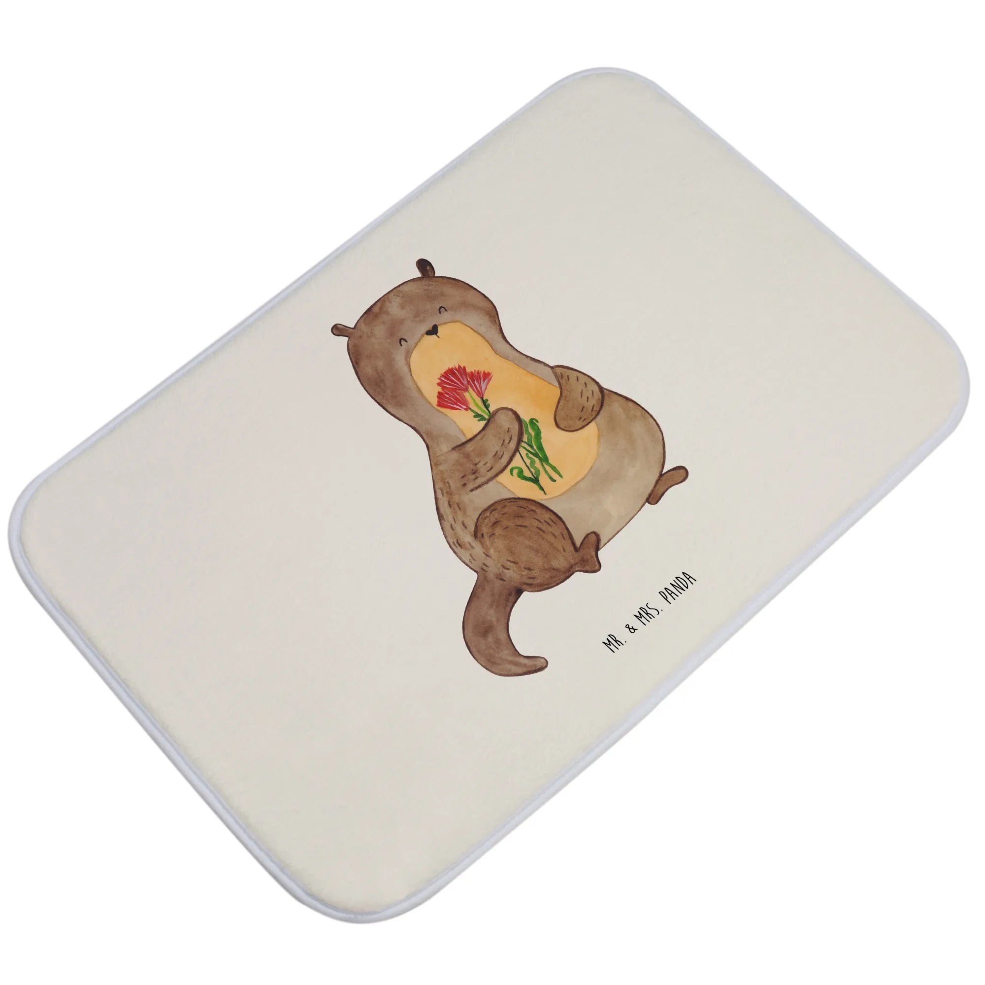 Schau dir diesen wunderschönen Badvorleger "Otter Blumenstrauß" von Mr. & Mrs. Panda an! Mit einem süßen kleinen Otter, der einen bunten Blumenstrauß hält und dich fröhlich anlächelt, bringt diese Matten dein Badezimmer zum Strahlen.