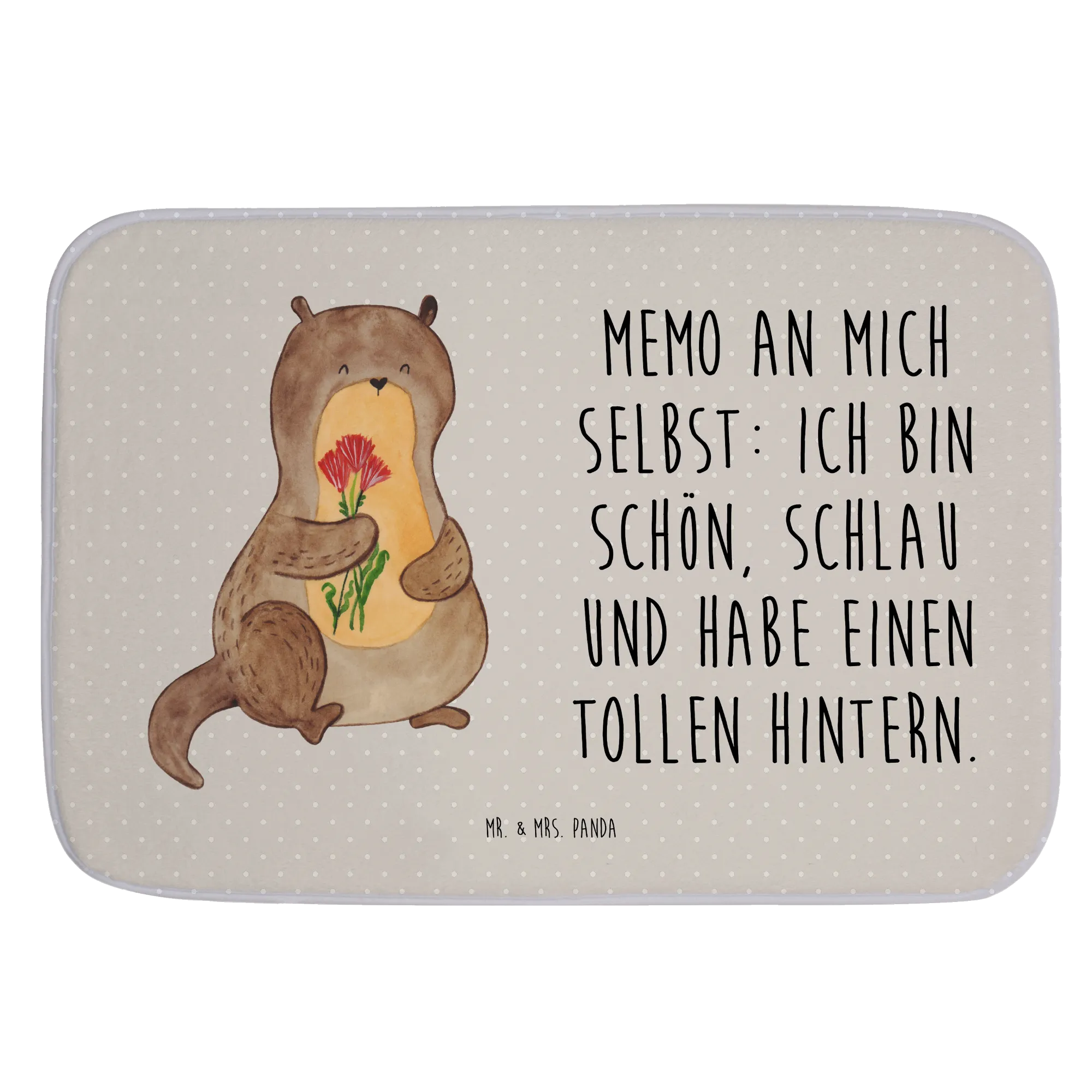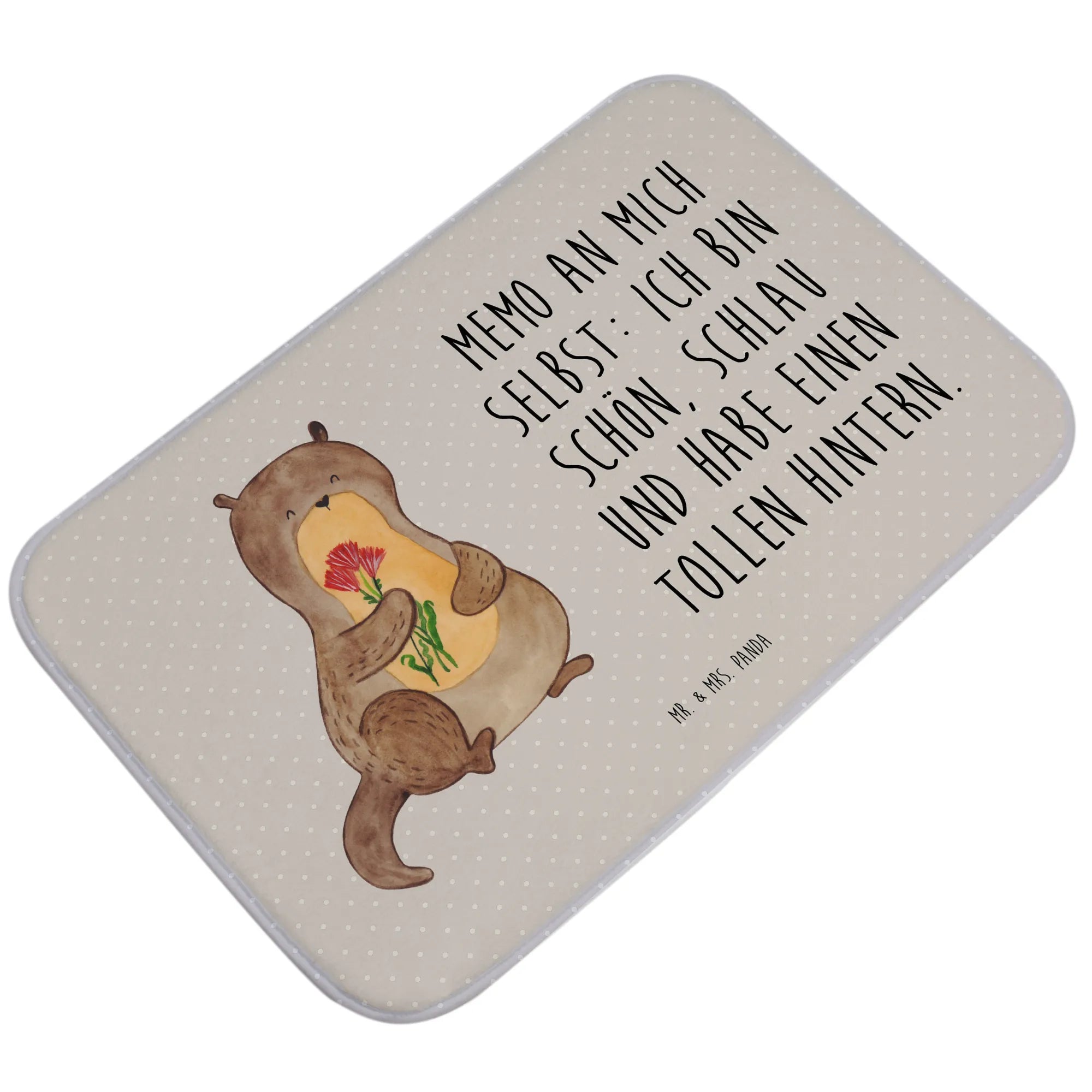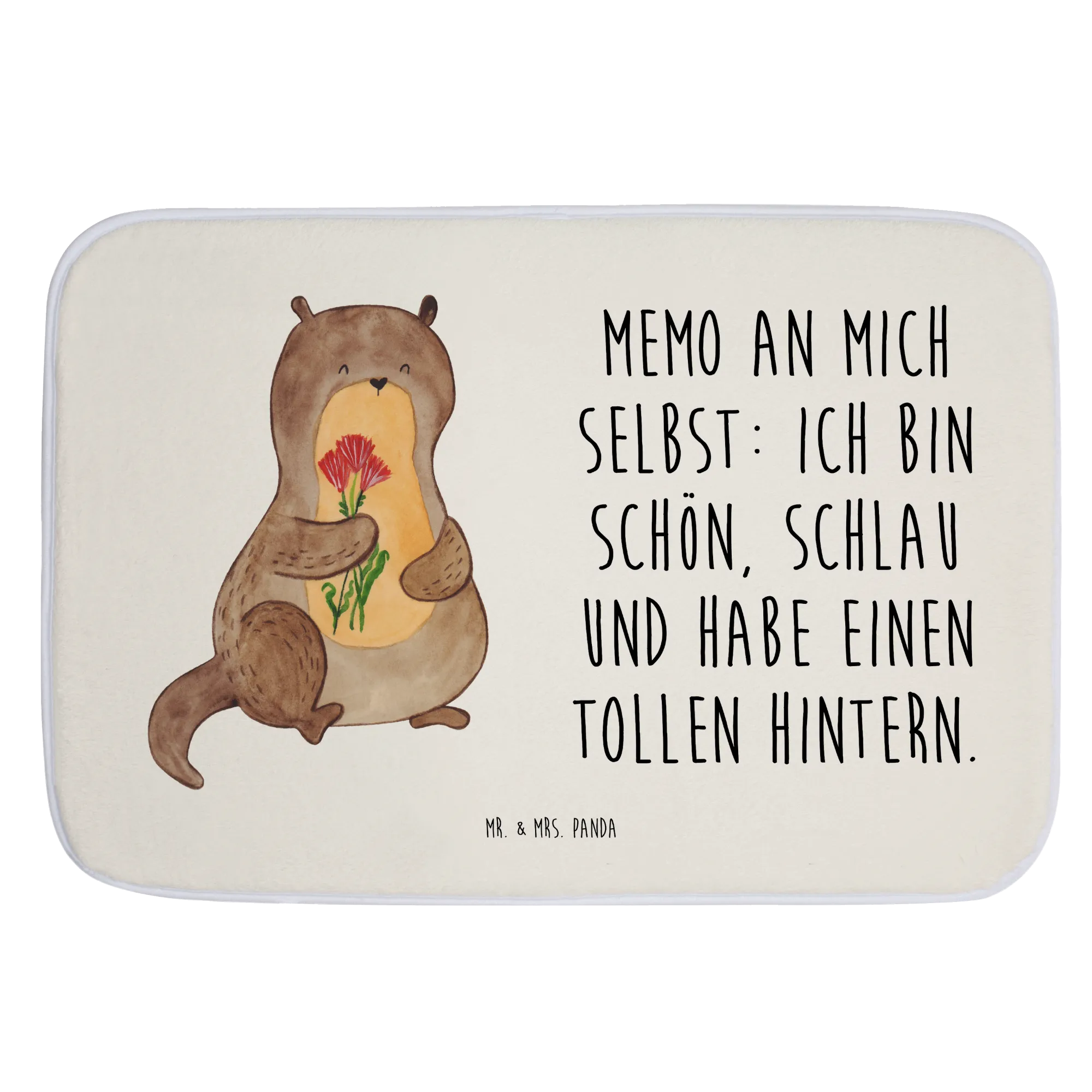 Schau dir diesen wunderschönen Badvorleger "Otter Blumenstrauß" von Mr. & Mrs. Panda an! Mit einem süßen kleinen Otter, der einen bunten Blumenstrauß hält und dich fröhlich anlächelt, bringt diese Matten dein Badezimmer zum Strahlen.
