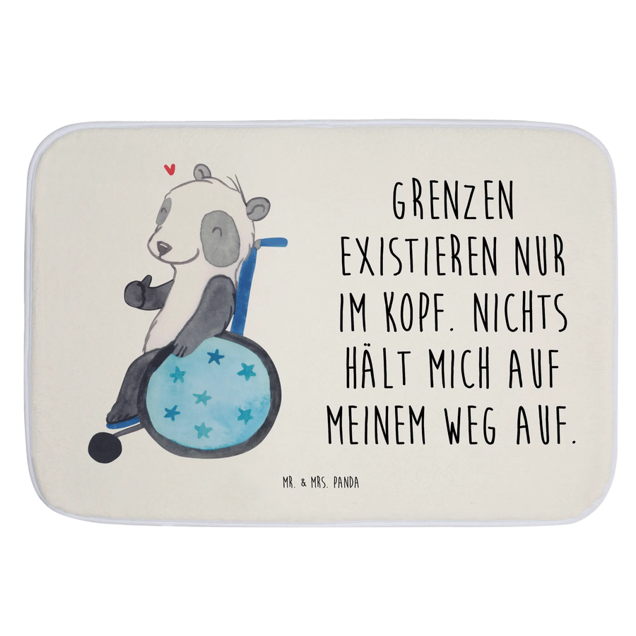 Der Badvorleger mit dem süßen Panda-Motiv in einem Rollstuhl ist weit mehr als ein einfacher Teppich. Er ist ein Zeichen der Hoffnung, der Inklusion und der Anerkennung für all diejenigen, die ihren Alltag mit einem Handicap meistern. Dieses liebevoll bedruckte Stück sorgt nicht nur für eine tolle Optik in deinem Badezimmer, sondern erinnert dich auch daran, dass Grenzen nur im Kopf existieren. Das Slogan 'Grenzen existieren nur im Kopf. Nichts hält mich auf meinem Weg auf.' inspiriert und unterstützt die Idee, dass jeder Mensch seine ganz eigenen Superkräfte hat.