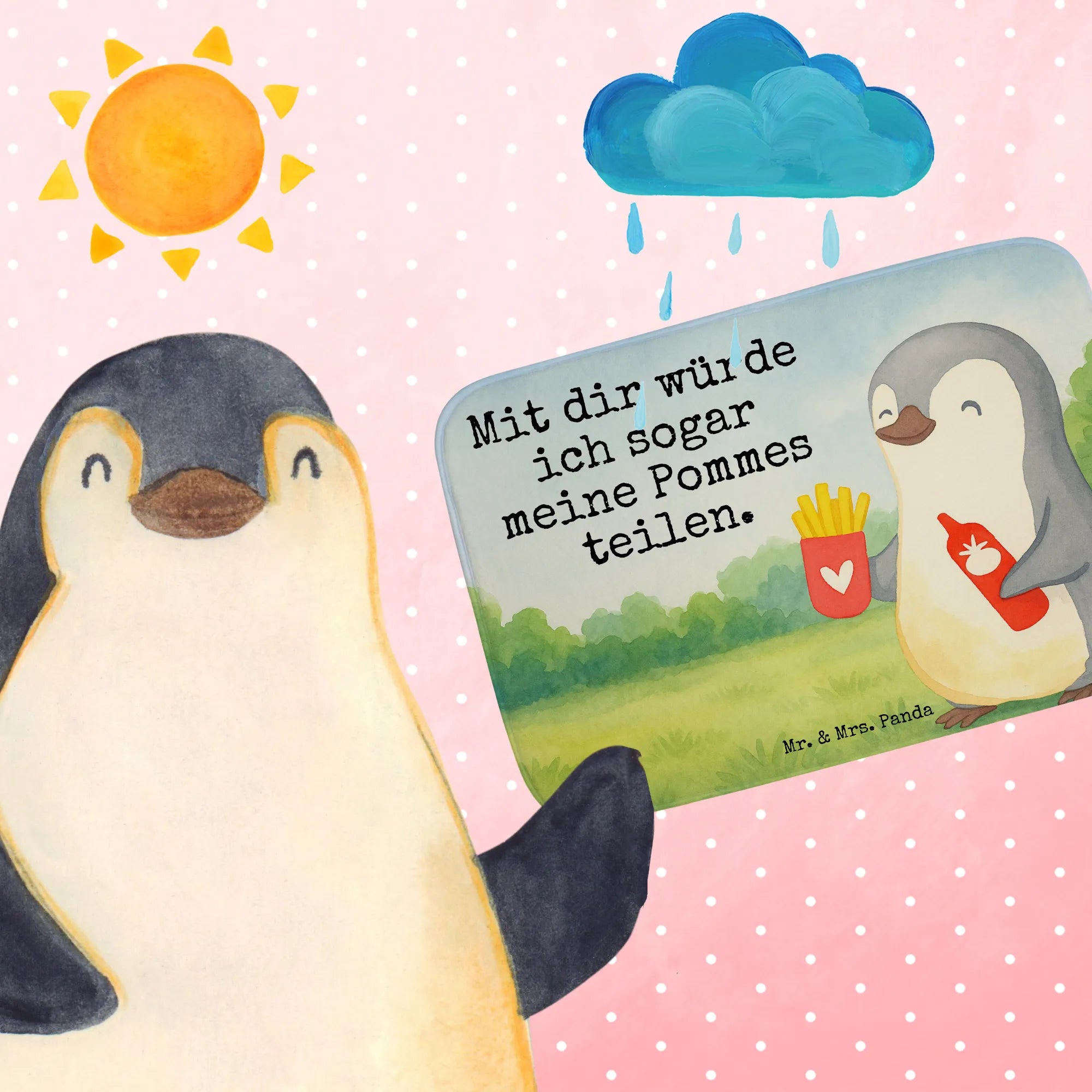 Dieser lächelnde Pinguin hält mit seinen Flügeln eine Portion Pommes Frites bereit, verziert mit einer Flasche Ketchup in der anderen Hand. Ein solches Motiv ist nicht nur niedlich, sondern auch ein wunderbarer Ausdruck von Zuneigung. Egal ob zum Hochzeitstag oder einfach, um jemandem einen schönen Tag zu bereiten, dieser Pinguin bringt mit seiner positiven Ausstrahlung und den sanften Farben zweifellos Freude in jeden Haushalt. Manchmal sind es die kleinen Dinge im Leben, die die größte Bedeutung haben, und eine Portion Pommes mit einer lieben Botschaft ist genau das! Verwöhne deine Freundin mit diesem hübschen Geschenk, das perfekt für jeden speziellen Moment ist. Lass den Pinguin für dich sprechen und zeige, dass wahre Liebe auch durch die kleinen Freuden des Lebens kommt, wie sie mit einer Portion Pommes verbunden sind.