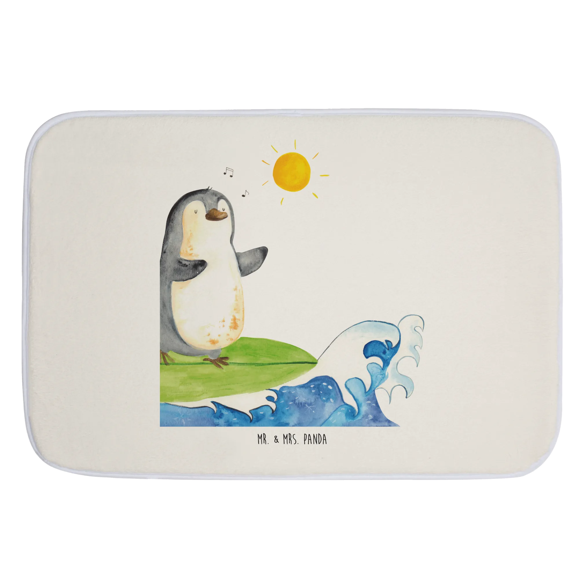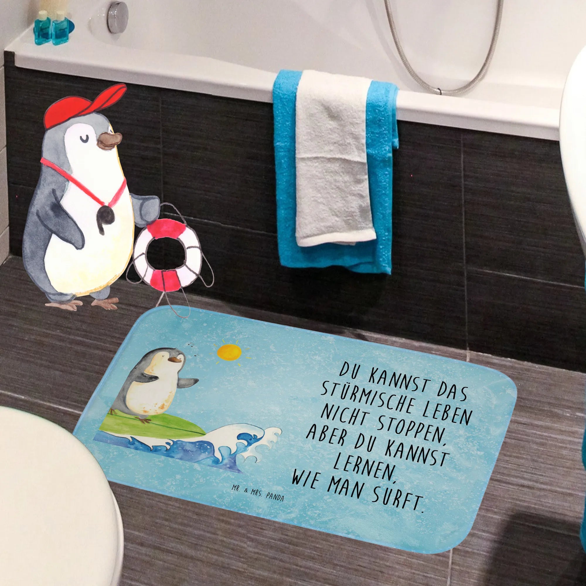 Entdecke die zauberhafte Welt der Badematten mit dem einzigartigen Badvorleger "Pinguin Surfer" aus der Pinguin-Kollektion von Mr. & Mrs. Panda!