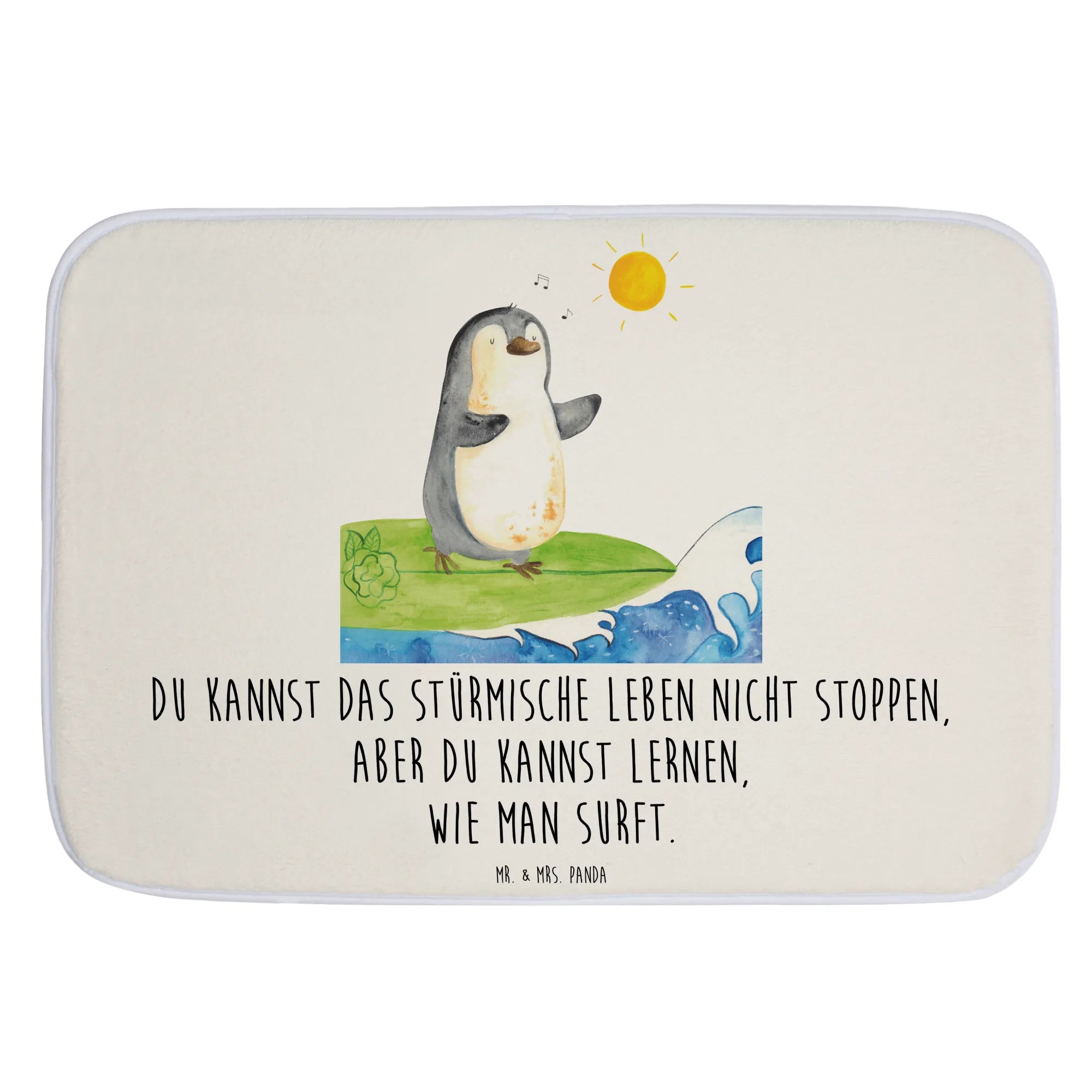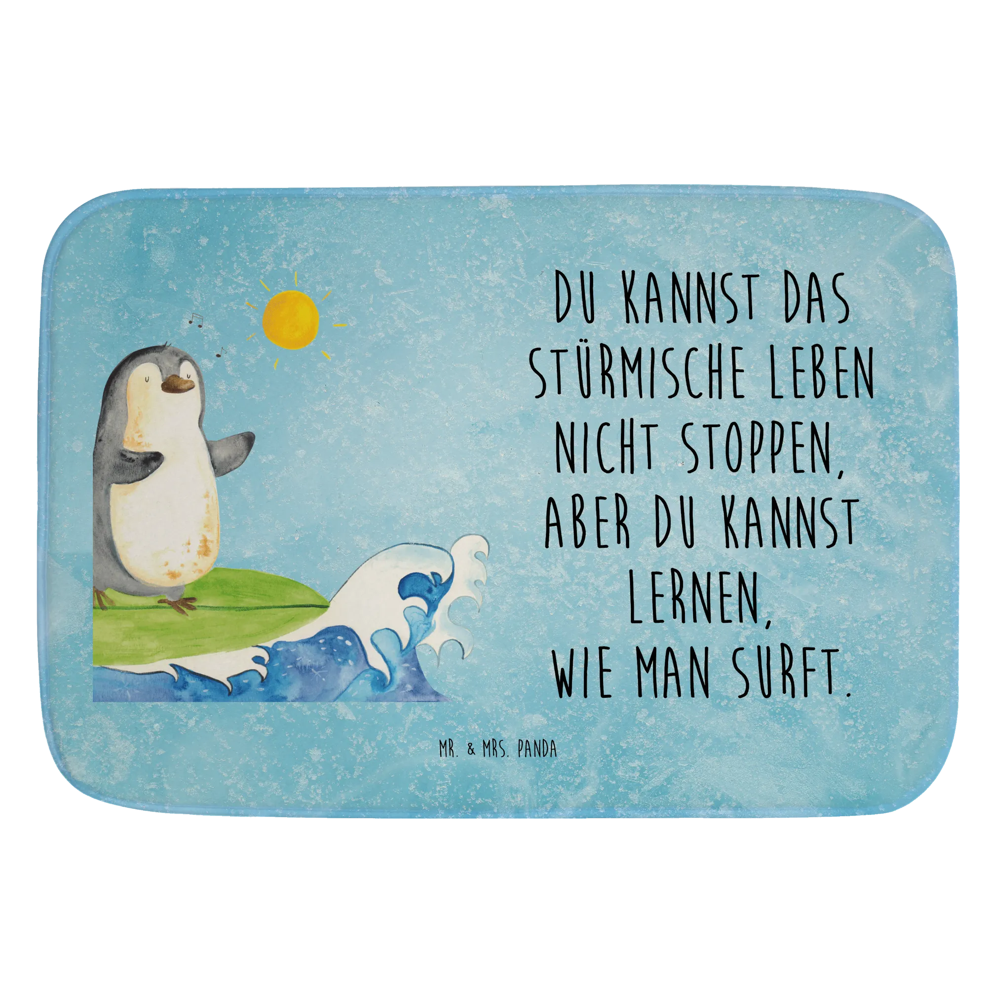 Entdecke den perfekten Badvorleger mit dem süßen Pinguin Surfer von Mr. & Mrs. Panda! Dieser Badvorleger ist nicht nur ein echter Hingucker in deinem Badezimmer, sondern sorgt auch dafür, dass du sicher und bequem aus der Dusche trittst. Mit seinen Maßen von 590 mm x 400 mm passt er ideal vor jede Duschkabine.