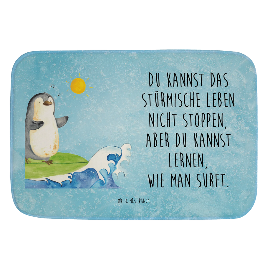 Badematte Pinguin Surfer - mit Spruch - Eisblau