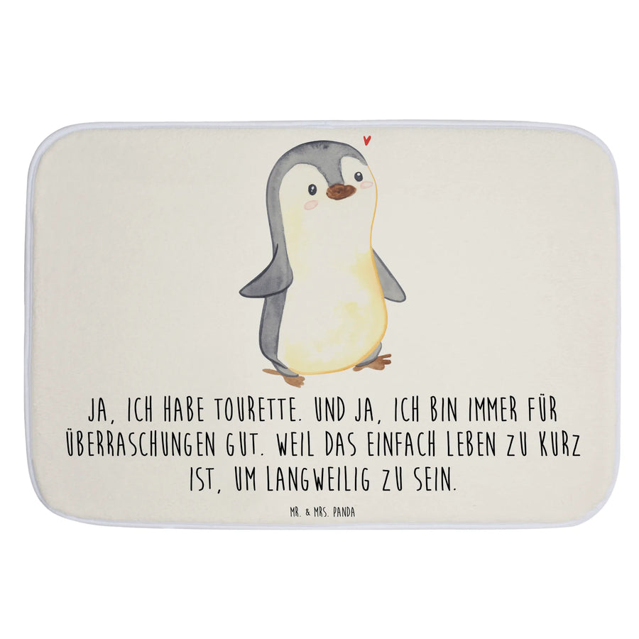 Entdecke die einzigartige Badematte "Pinguin Tourette" aus der Kollektion Tiere mit Superkräften von Mr. & Mrs. Panda. Diese besondere Badmatte ist nicht nur ein stilvolles Accessoire für dein Badezimmer, sondern trägt auch eine wichtige Botschaft.