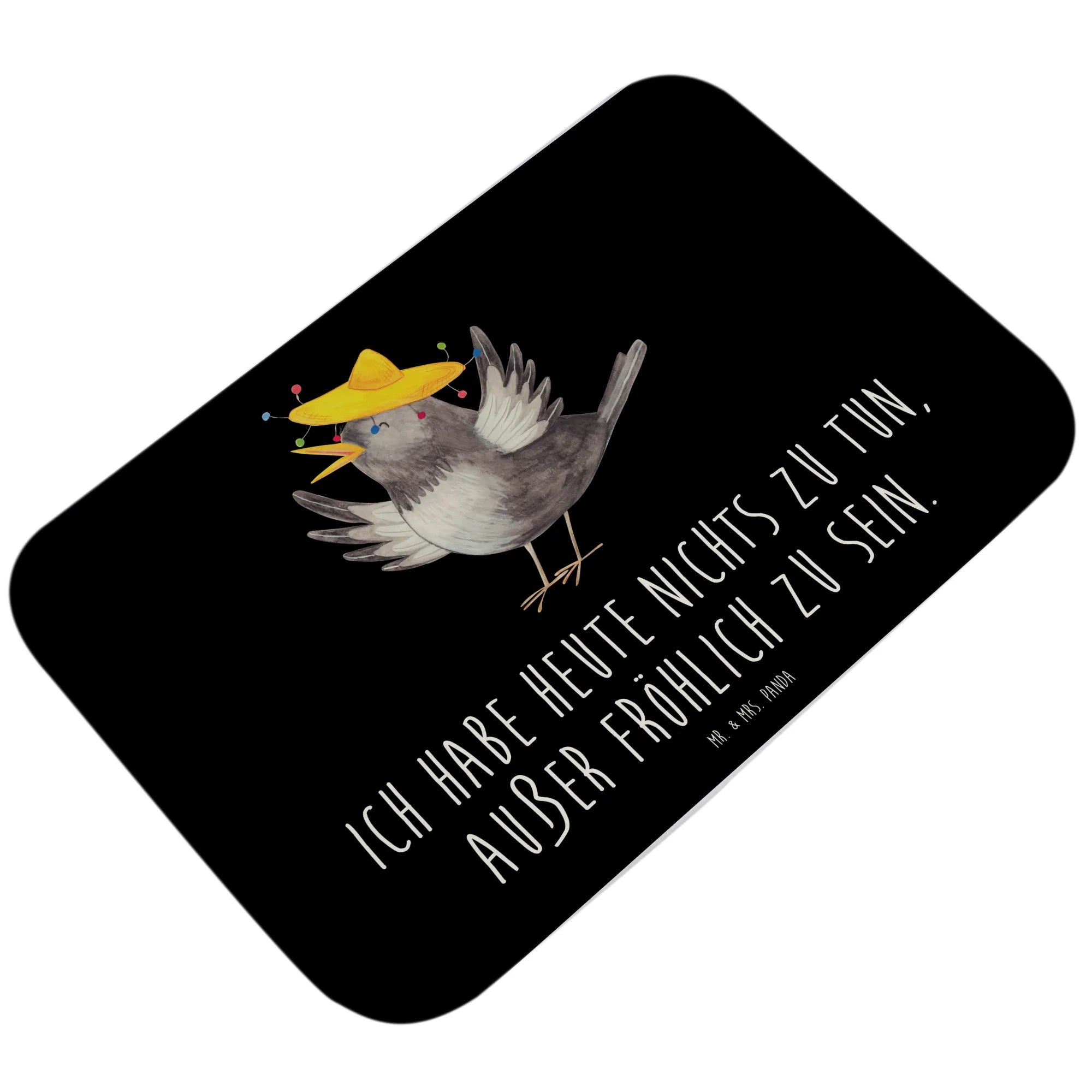 Leb(e) fröhlich, genieße die guten Dinge und bringe Farbe in Dein Badezimmer mit dem Badvorleger "Rabe mit Sombrero" von Mr. & Mrs. Panda.