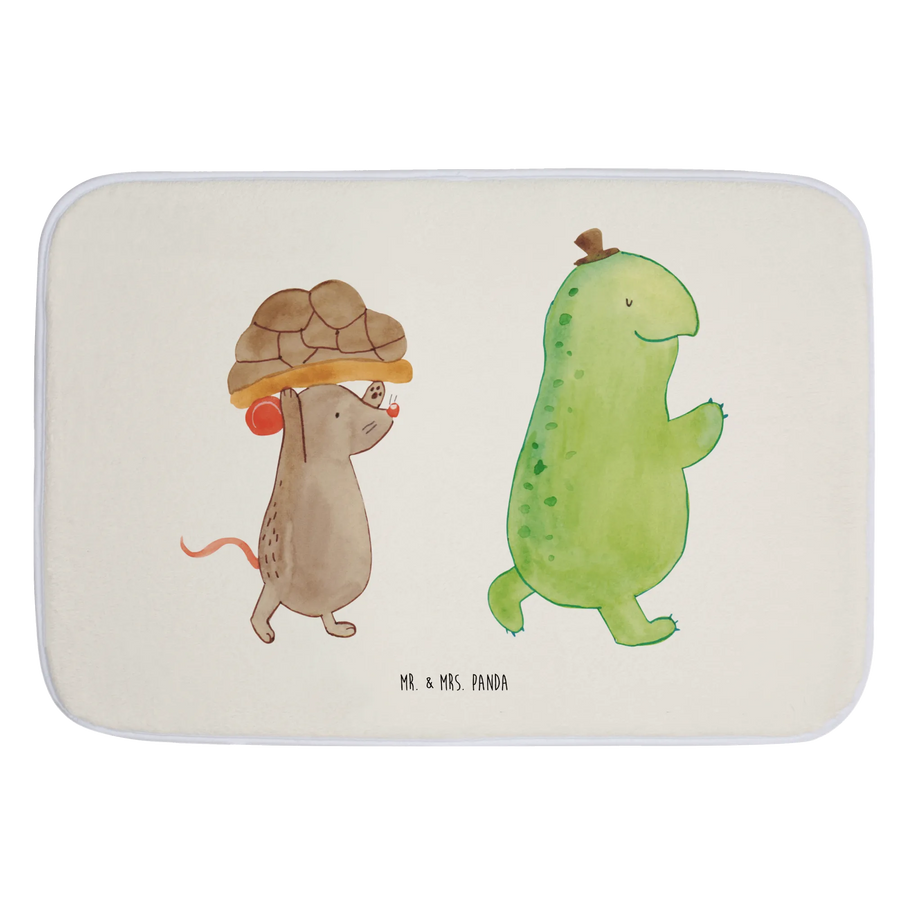 Entdecke den perfekten Badvorleger von Mr. & Mrs. Panda, der deinem Badezimmer einen Hauch von Freude und Gemütlichkeit verleiht! Mit dem liebevollen Motiv einer Schildkröte und einer kleinen Maus zaubert dieser Badteppich ein Lächeln auf dein Gesicht. Die beiden Freunde zeigen, dass wahre Freundschaft die besten Abenteuer bereithält.