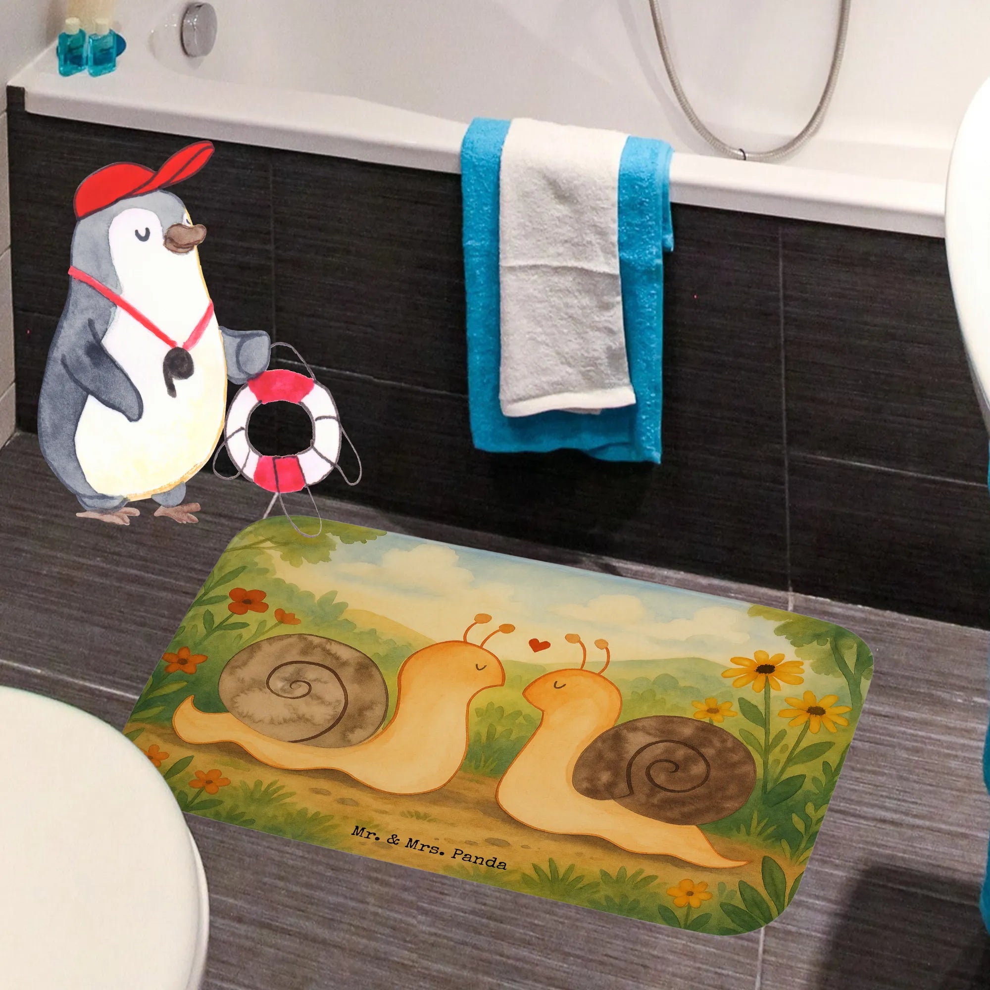 Verleih deinem Badezimmer mit dem Badvorleger von Mr. & Mrs. Panda eine ganz besondere Note! Mit einer Größe von 590 mm x 400 mm ist dieser Badvorleger perfekt für jedes Badezimmer. Hergestellt aus flauschiger Premium Kunstfaser, bietet er ein unglaublich angenehmes Gefühl bei jedem Schritt. Die Antirutsch-Gummibeschichtung gewährleistet Sicherheit und verhindert Ausrutschen. Ob mit motivierenden Sprüchen oder süßen Designs bedruckt – dieser Badvorleger bringt Freude und Stil in dein Zuhause. Zudem ist er besonders saugstark, sodass er Flüssigkeiten schnell aufnimmt. Und die Pflege ist einfach: bei 30°C in der Waschmaschine waschbar, bleibt der Badvorleger immer frisch und einladend!