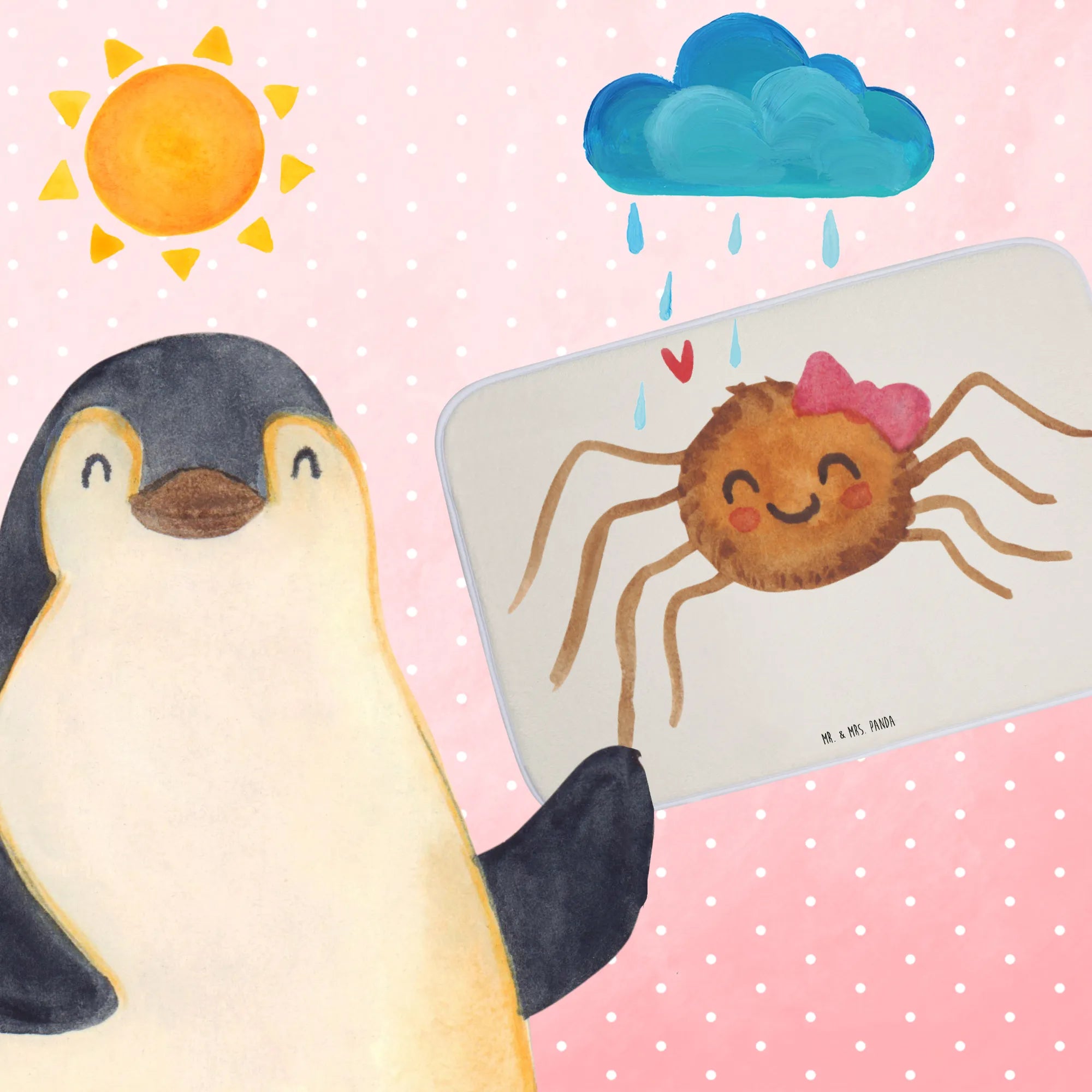 Dieses liebevoll handgezeichnete Motiv ist Teil der berühmten Spinne Agathe Kollektion von Mr. & Mrs. Panda, die in Social Media viral gegangen ist. Schenke Freude und Stil in einem – perfekt für alle, die ihren Badezimmerbereich mit einem Hauch von Liebe und Humor dekorieren möchten.