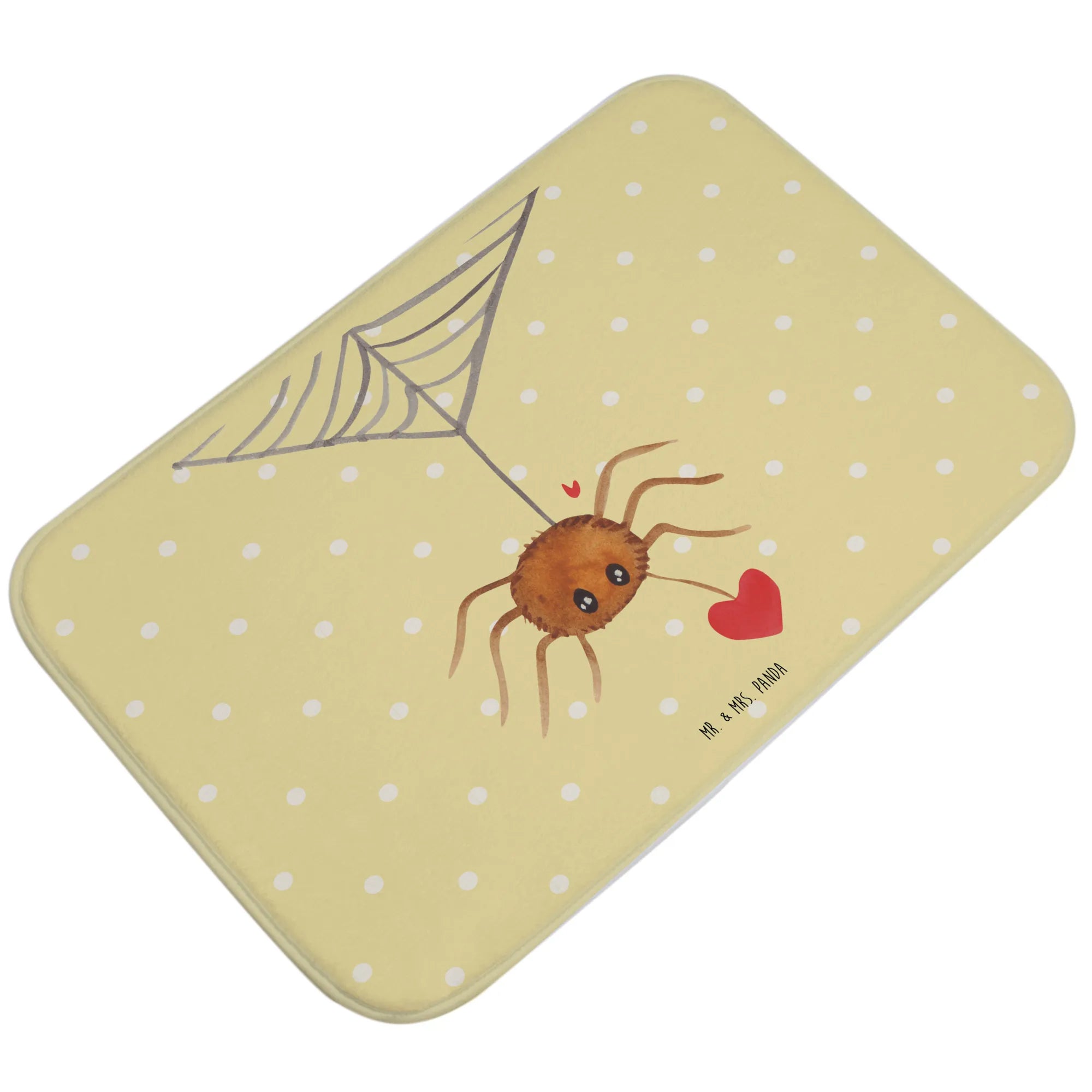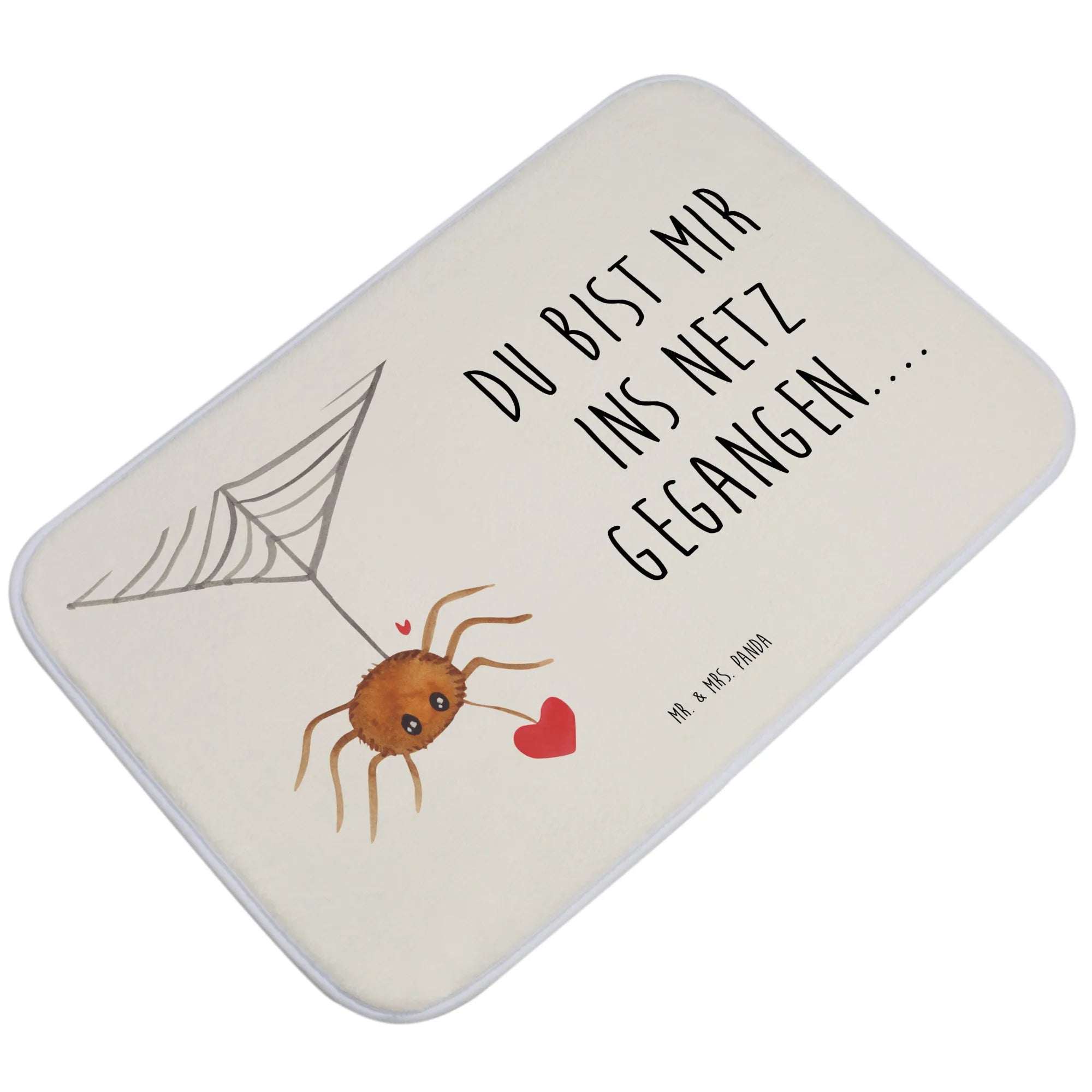 Der Badvorleger Spinne Agathe Liebe von Mr. & Mrs. Panda ist das perfekte Geschenk für all diejenigen, die ihre Liebe auf originelle Weise ausdrücken möchten. Mit einem charmanten und niedlichen Motiv, das die süße Spinne Agathe zeigt, die mit einem Herz in ihrem Netz behutsam umgeht, bringt dieser Badvorleger nicht nur Farbe, sondern auch Freude in dein Badezimmer.