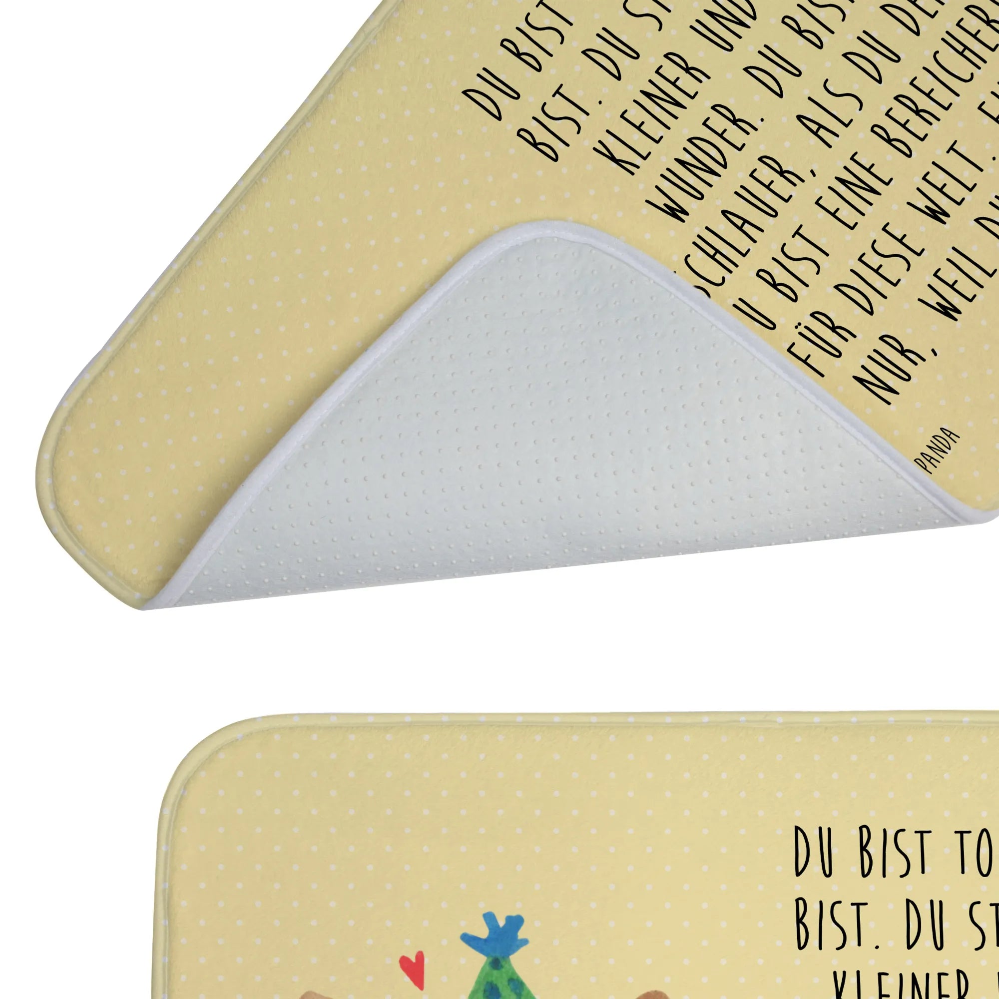Verleih deinem Badezimmer mit dem Badvorleger von Mr. & Mrs. Panda eine ganz besondere Note! Mit einer Größe von 590 mm x 400 mm ist dieser Badvorleger perfekt für jedes Badezimmer. Hergestellt aus flauschiger Premium Kunstfaser, bietet er ein unglaublich angenehmes Gefühl bei jedem Schritt. Die Antirutsch-Gummibeschichtung gewährleistet Sicherheit und verhindert Ausrutschen. Ob mit motivierenden Sprüchen oder süßen Designs bedruckt – dieser Badvorleger bringt Freude und Stil in dein Zuhause. Zudem ist er besonders saugstark, sodass er Flüssigkeiten schnell aufnimmt. Und die Pflege ist einfach: bei 30°C in der Waschmaschine waschbar, bleibt der Badvorleger immer frisch und einladend!