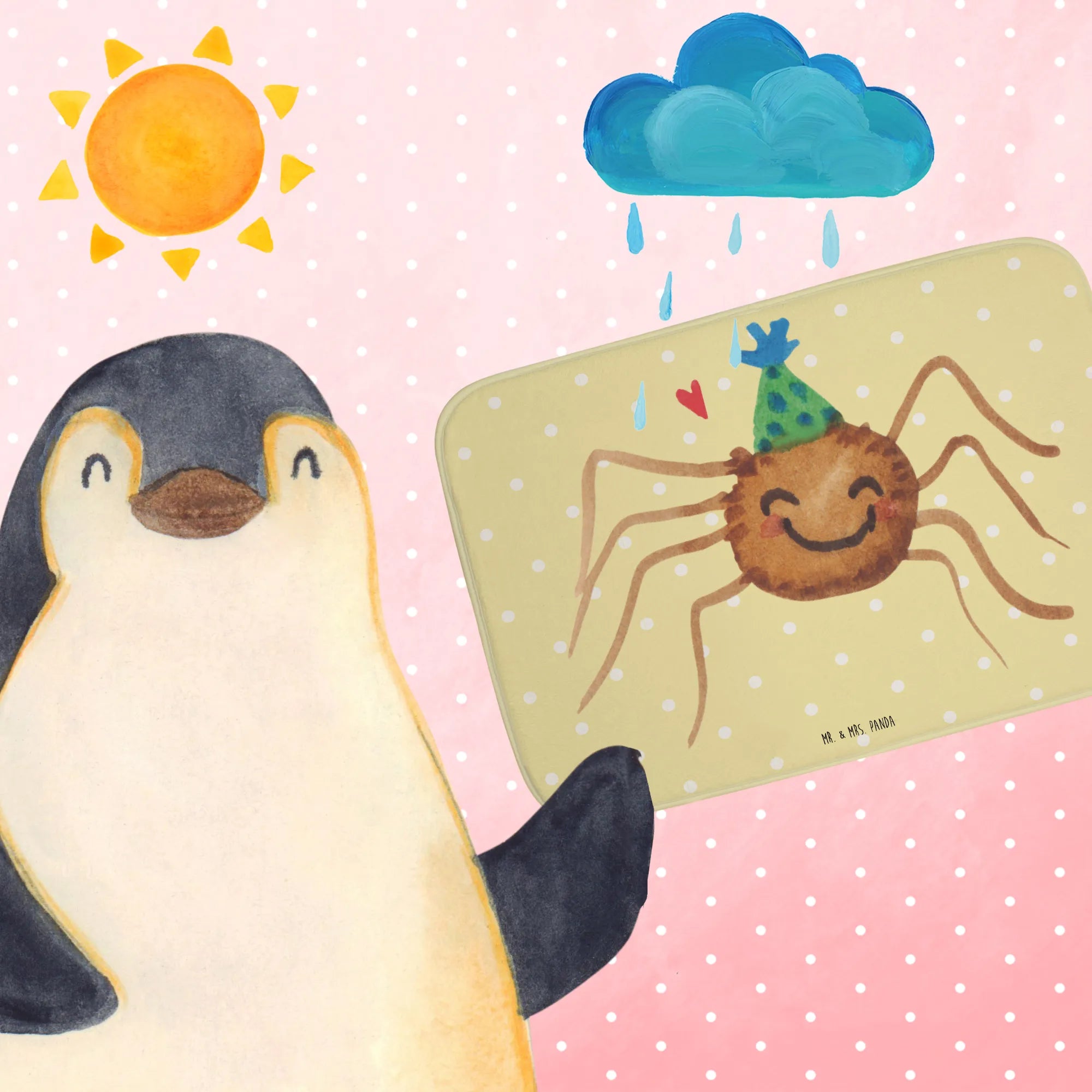Der Badvorleger Spinne Agathe Party von Mr. & Mrs. Panda ist das perfekte Geschenk für alle, die ihr Badezimmer mit einem Hauch von Freude und Selbstliebe aufpeppen möchten. Dieses wunderschöne Stück aus der beliebten Spinne Agathe Kollektion bringt nicht nur Farbe, sondern auch Motivation und Glück in jeden Tag.
