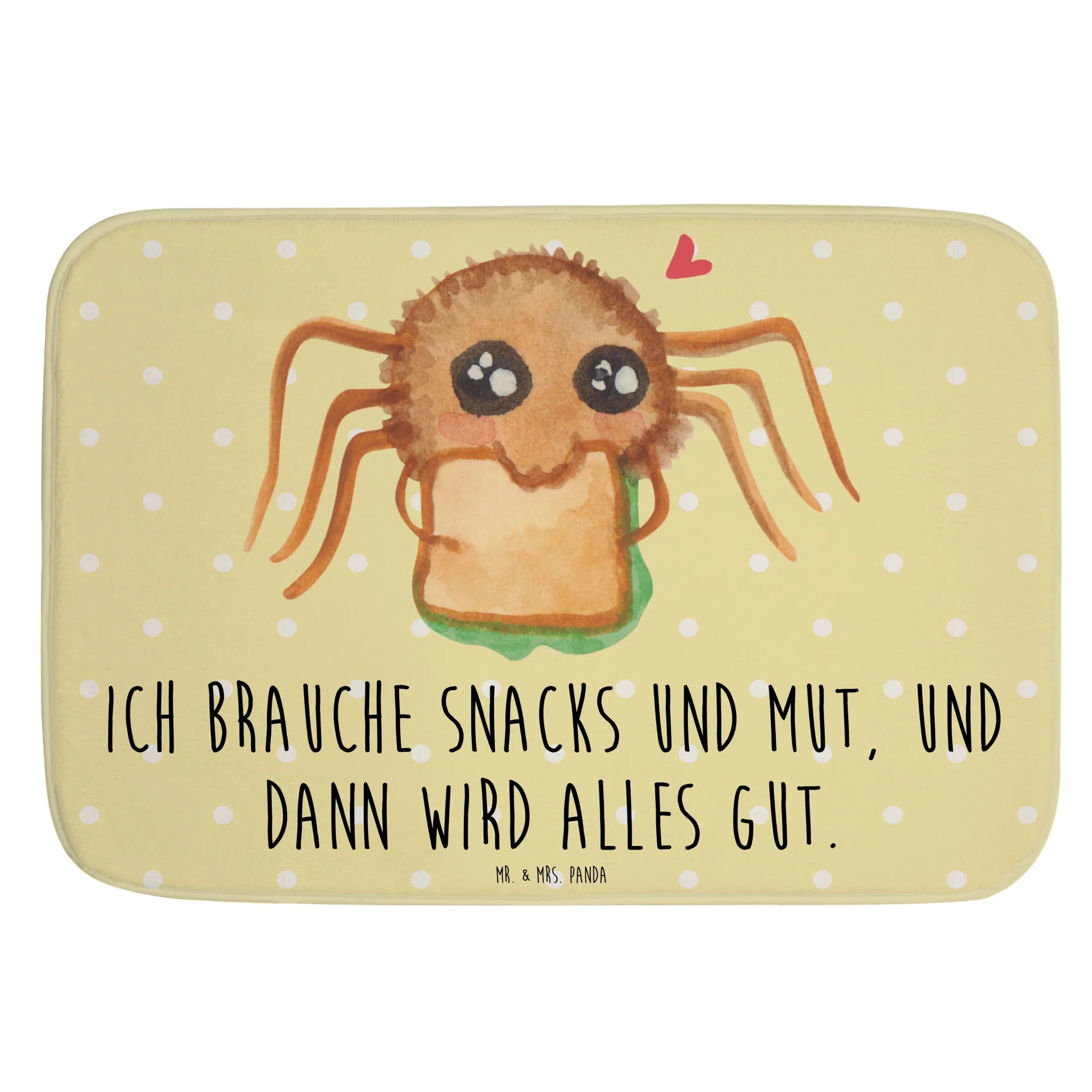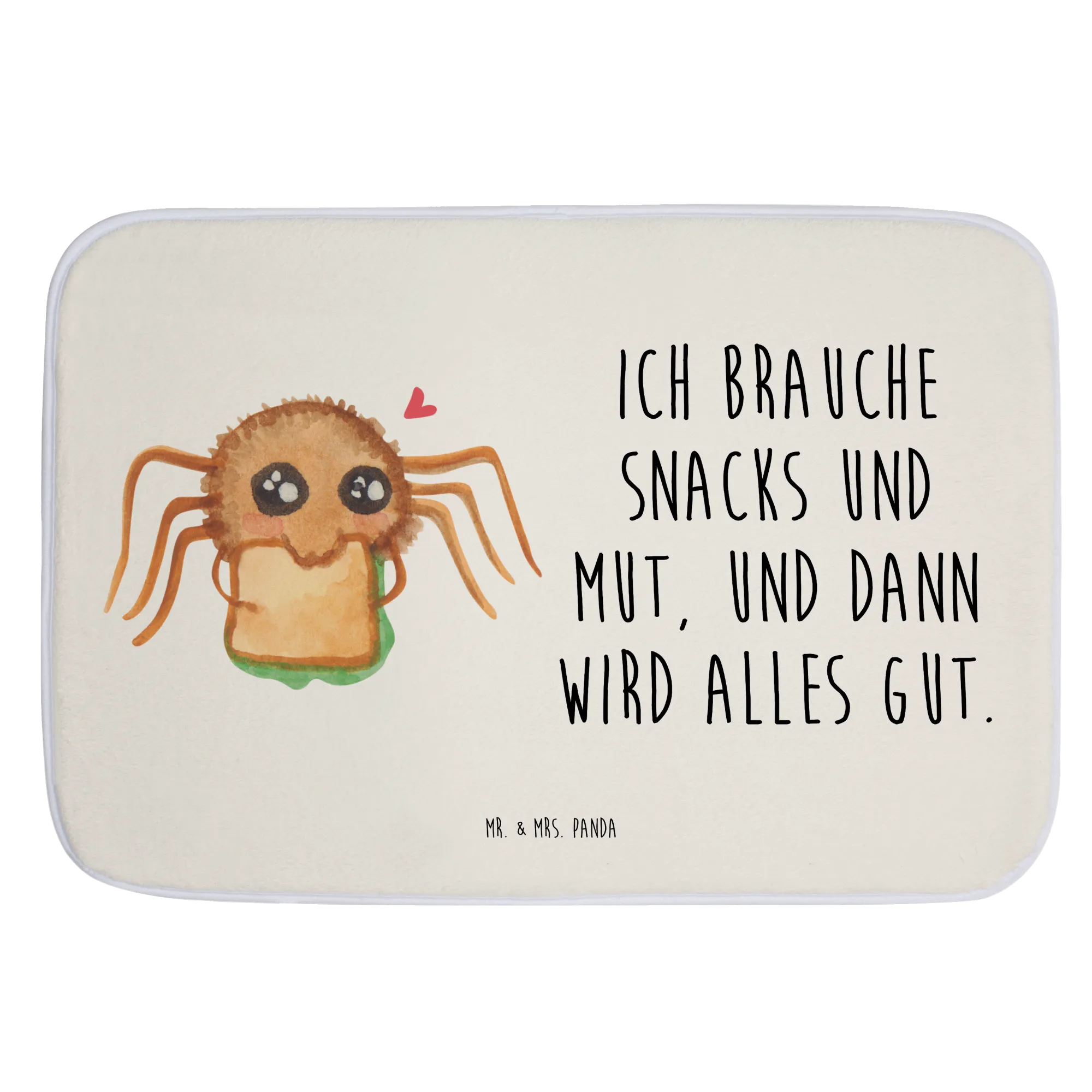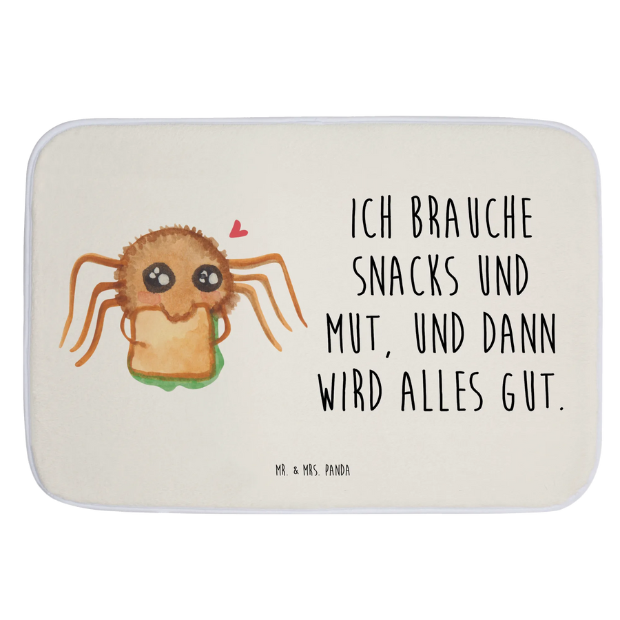 Der Badvorleger 'Spinne Agathe Sandwich' von Mr. & Mrs. Panda ist der perfekte Begleiter für dein Badezimmer! Mit seiner liebevollen, handgezeichneten Motive und dem fröhlichen Slogan 'Ich brauche Snacks und Mut, und dann wird alles gut.' bringt die süße Spinne Agathe eine Prise Lebensfreude in dein Zuhause.