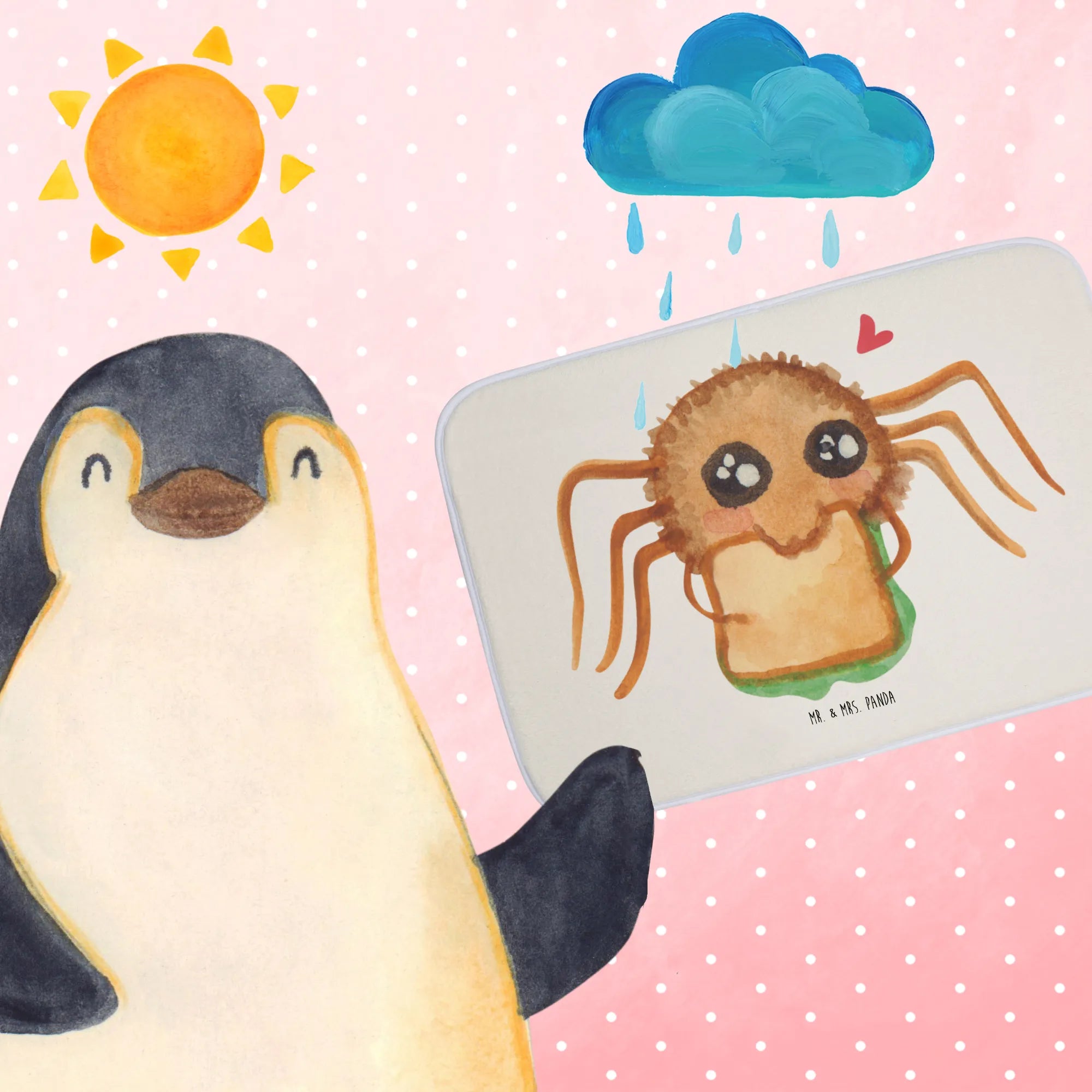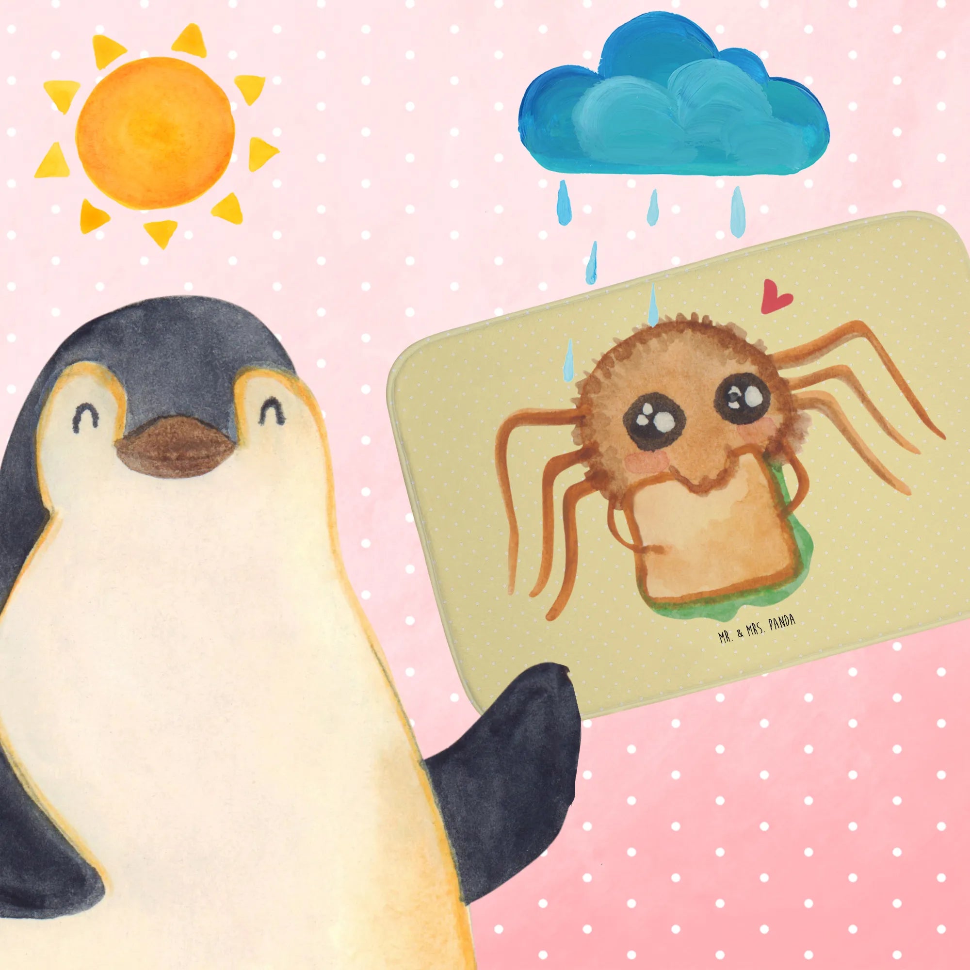 Diese bezaubernde Badvorleger mit dem Motiv der Spinne Agathe Sandwich von Mr. & Mrs. Panda ist mehr als nur ein praktisches Badezimmeraccessoire; sie ist ein Stück Lebensfreude für Dein Zuhause! Mit einer Größe von 590 mm x 400 mm passt sie perfekt vor Deine Badewanne oder Dusche und sorgt für einen gemütlichen Look.