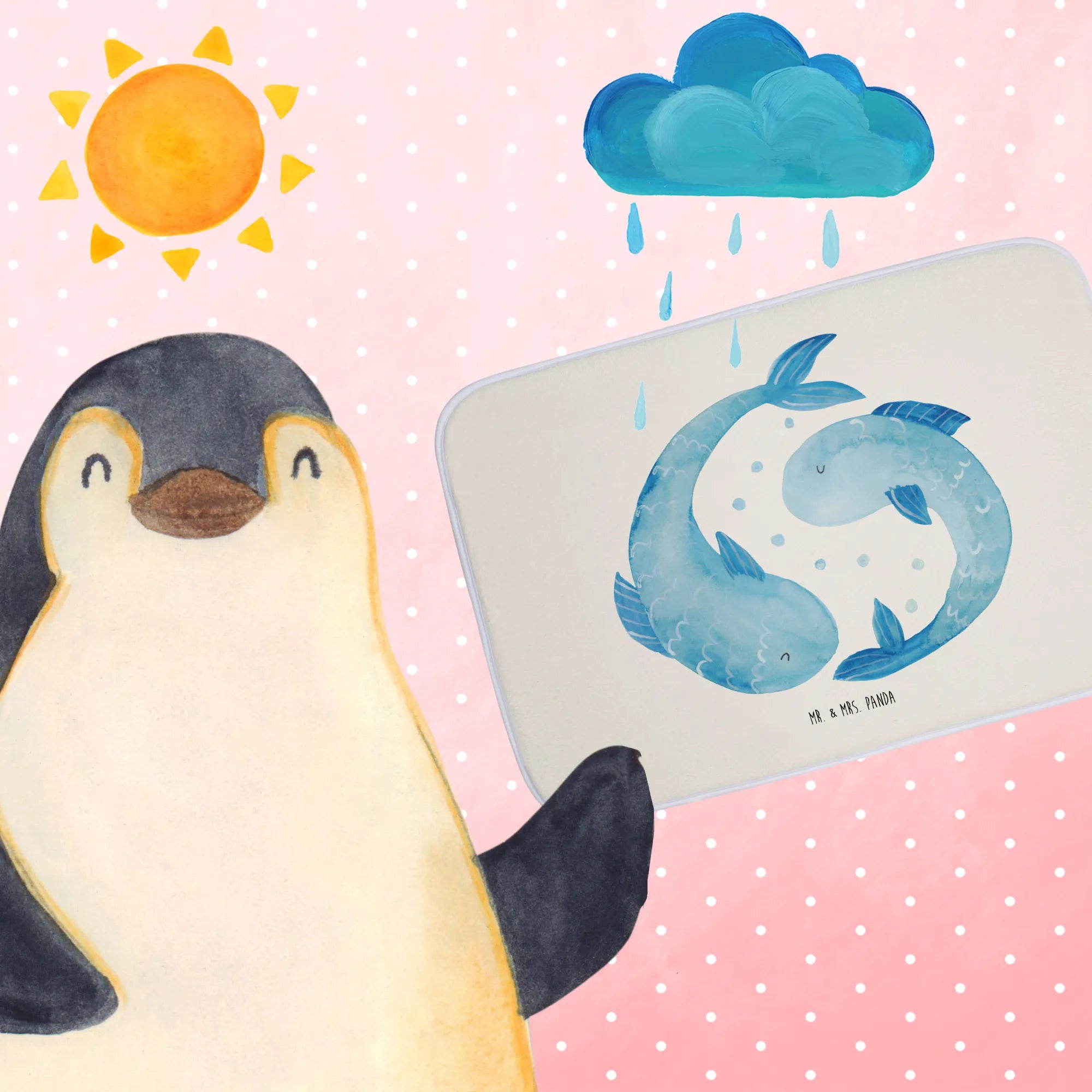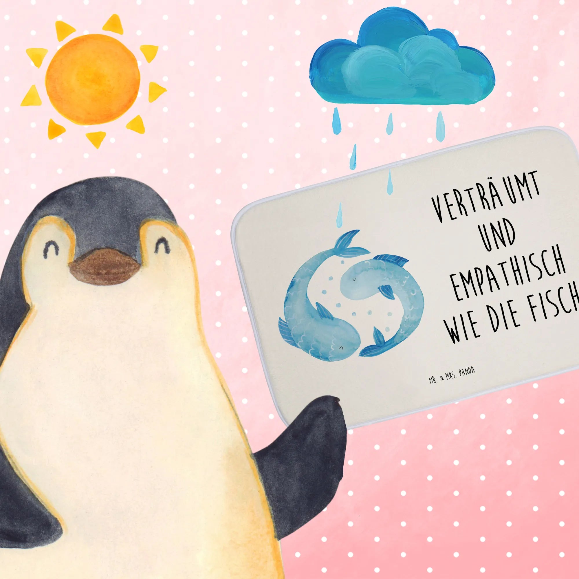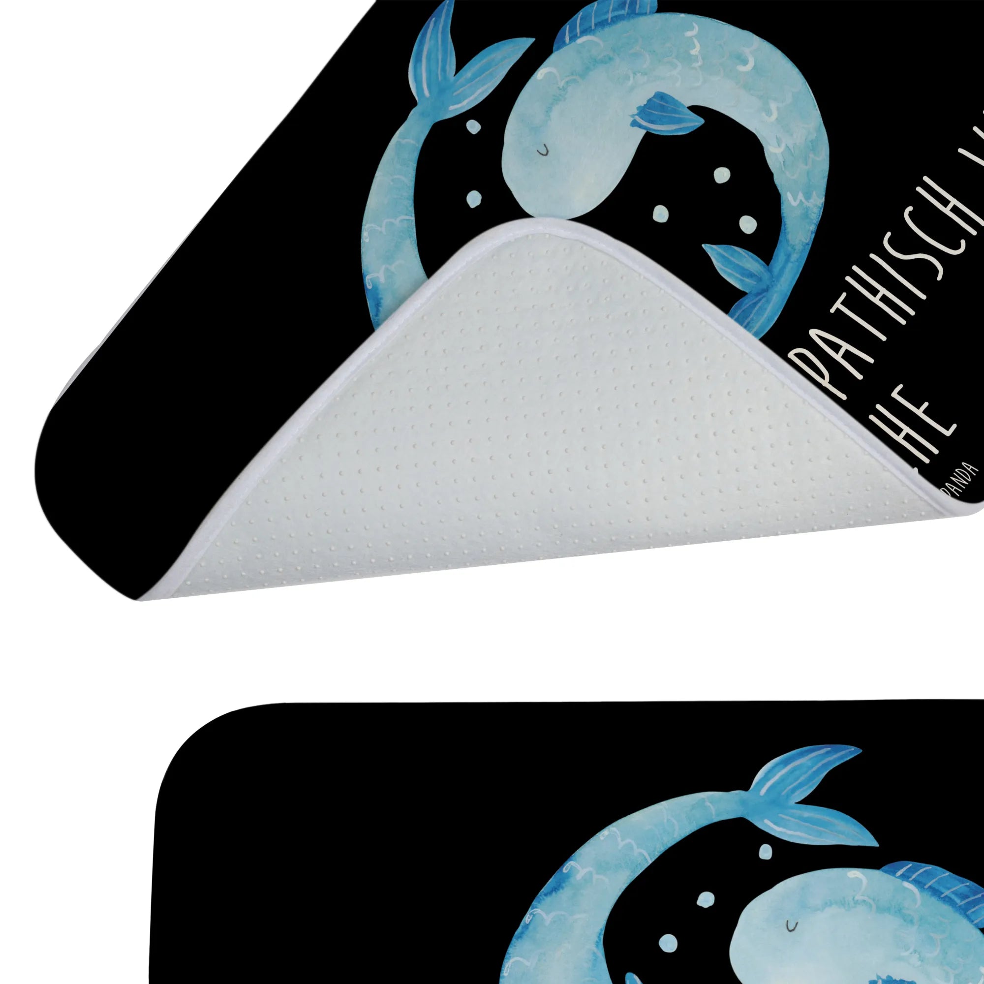 Der wunderschöne Badvorleger mit dem Sternzeichen Fische von Mr. & Mrs. Panda ist das perfekte Geschenk für all diejenigen, die im Februar oder März geboren sind oder einfach die Eigenschaften der Fische lieben. Mit seinem zauberhaften Design, auf dem zwei Fische, die im Kreis schwimmen, abgebildet sind, bringt dieser Badteppich eine fröhliche und verspielte Note in jedes Badezimmer. Der Slogan „Verträumt und empathisch wie die Fische“ beschreibt die Eigenschaften dieser liebevollen und sensiblen Sternzeichen perfekt und wertet jede Dusche oder Badewanne auf.