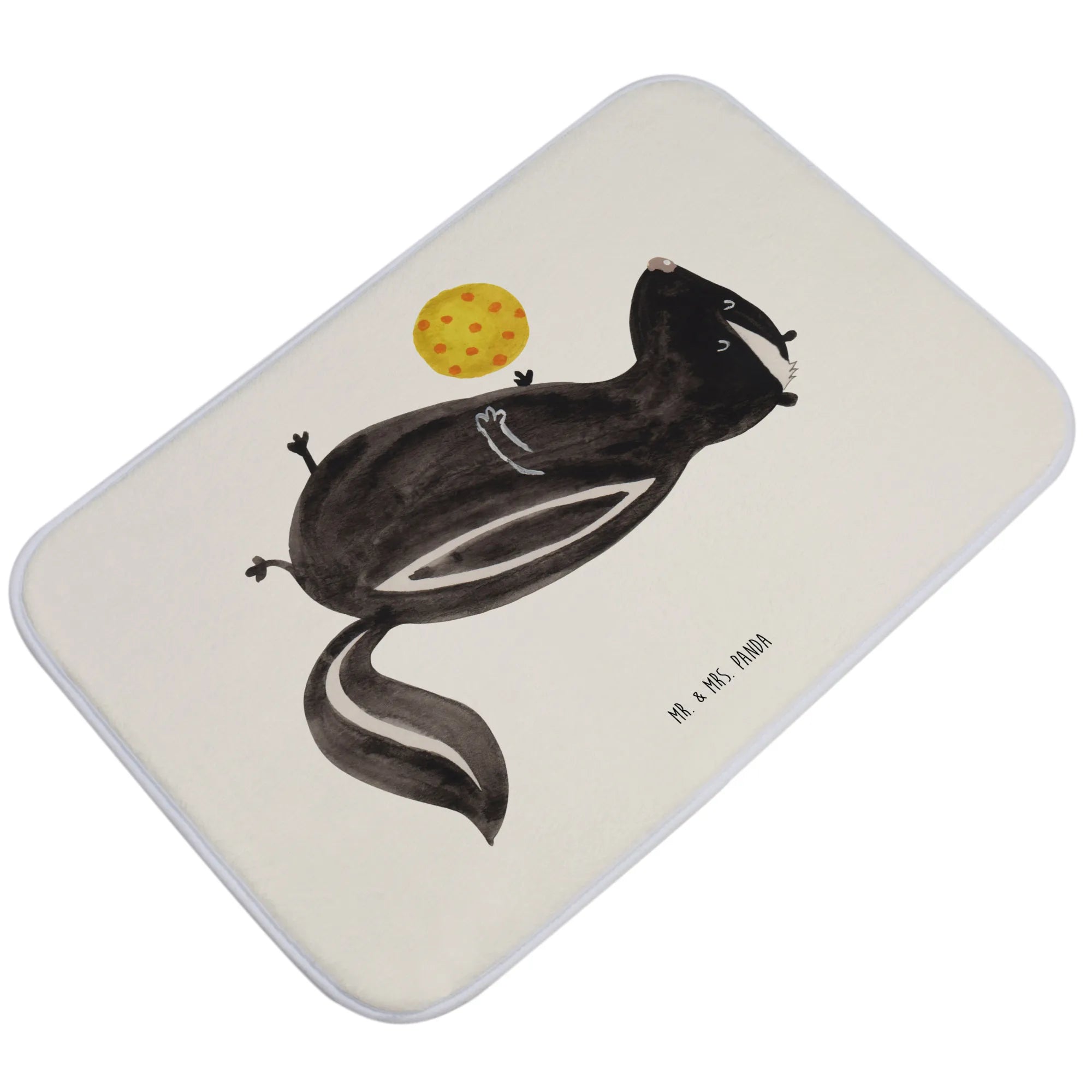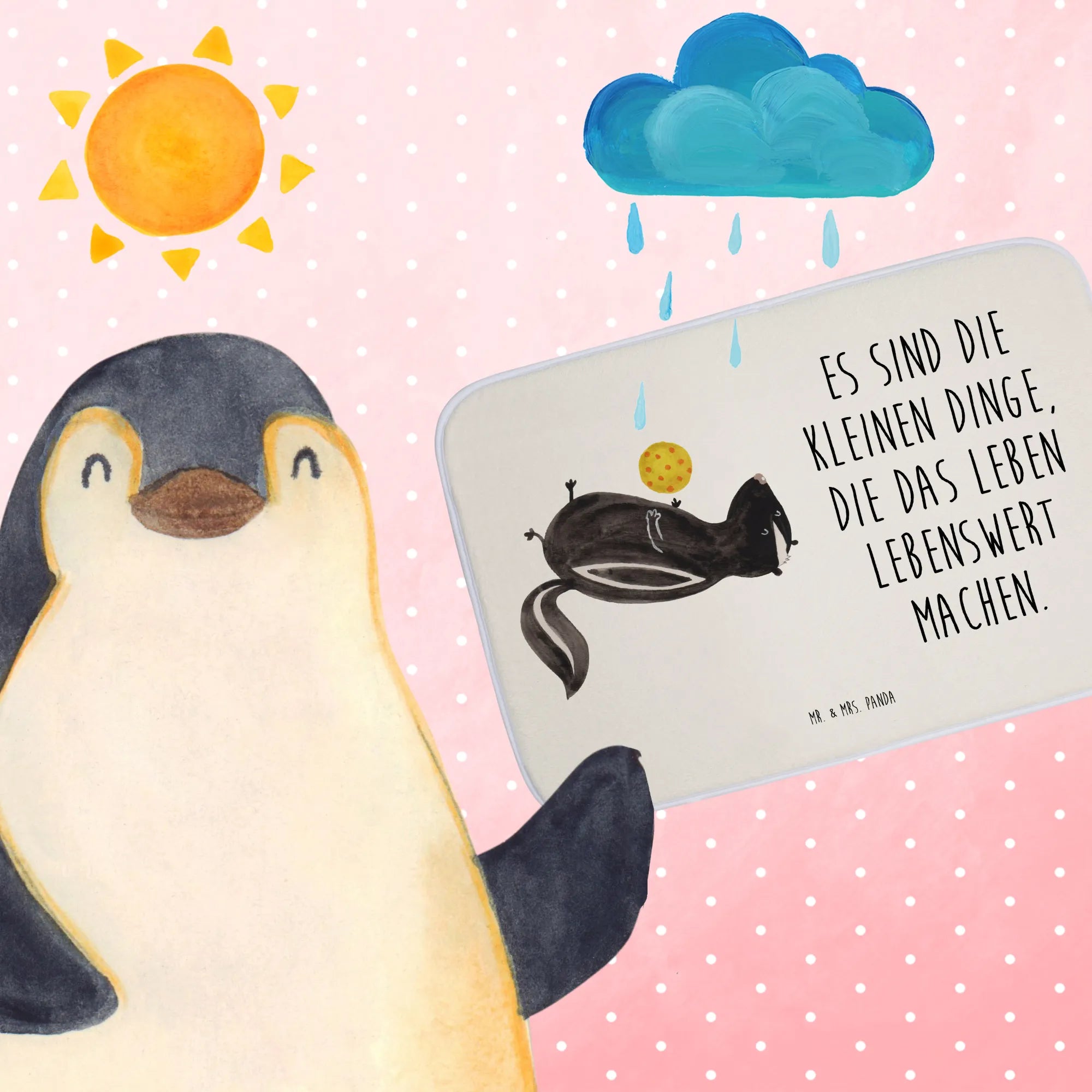 Ein wunderschöner Badvorleger von Mr. & Mrs. Panda, bedruckt mit einem süßen Stinktier, das fröhlich mit seinem Ball spielt. Dieser Badvorleger bringt Freude und einen Hauch von Natur in dein Badezimmer.