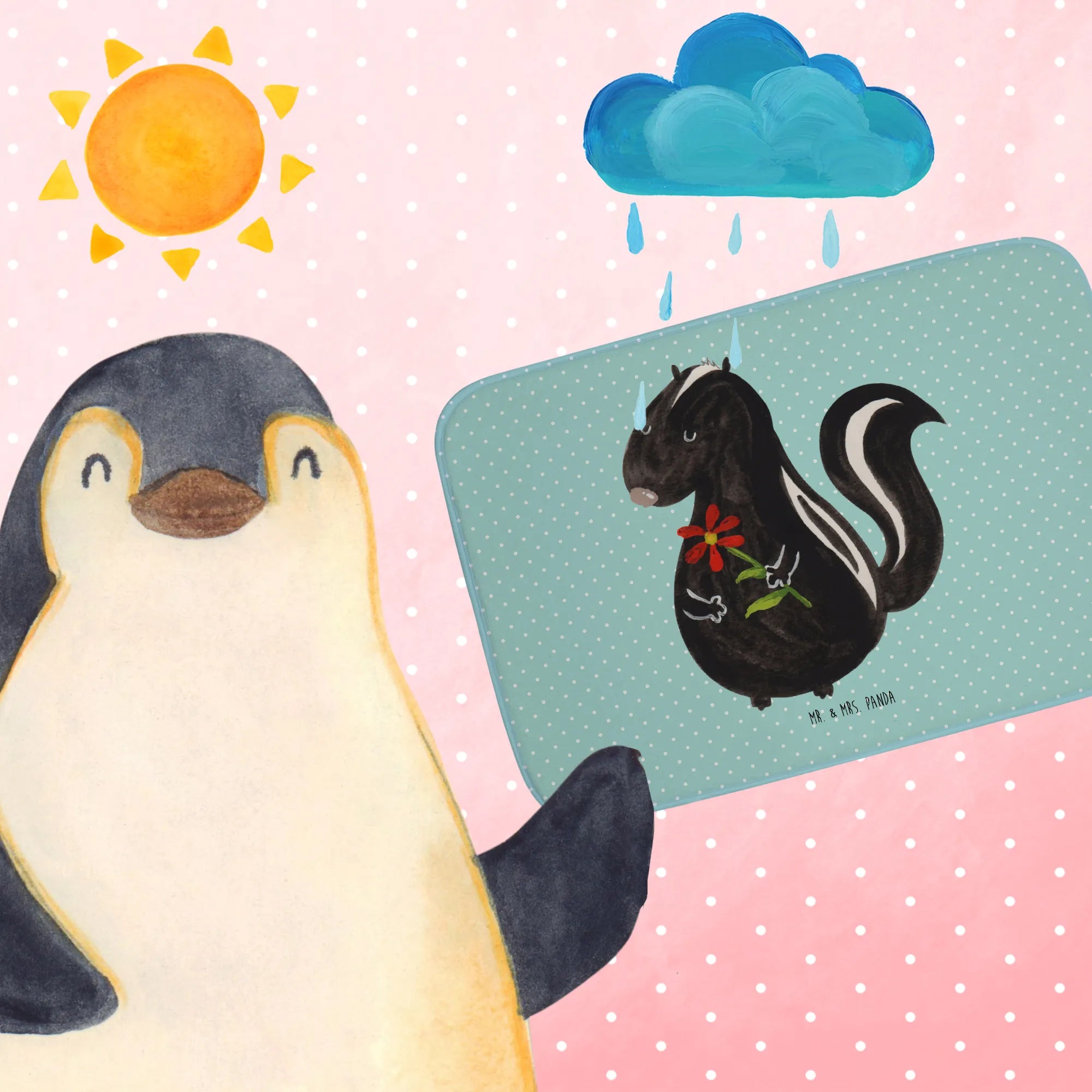 Der Badvorleger Stinktier Blume aus der Stinktier-Kollektion von Mr. & Mrs. Panda ist die perfekte Ergänzung für dein Badezimmer! Mit seinem niedlichen Aquarellmotiv eines süßen Stinktiers mit einer farbenfrohen Blumenkrone bringt er frischen Wind in deinen Alltag.