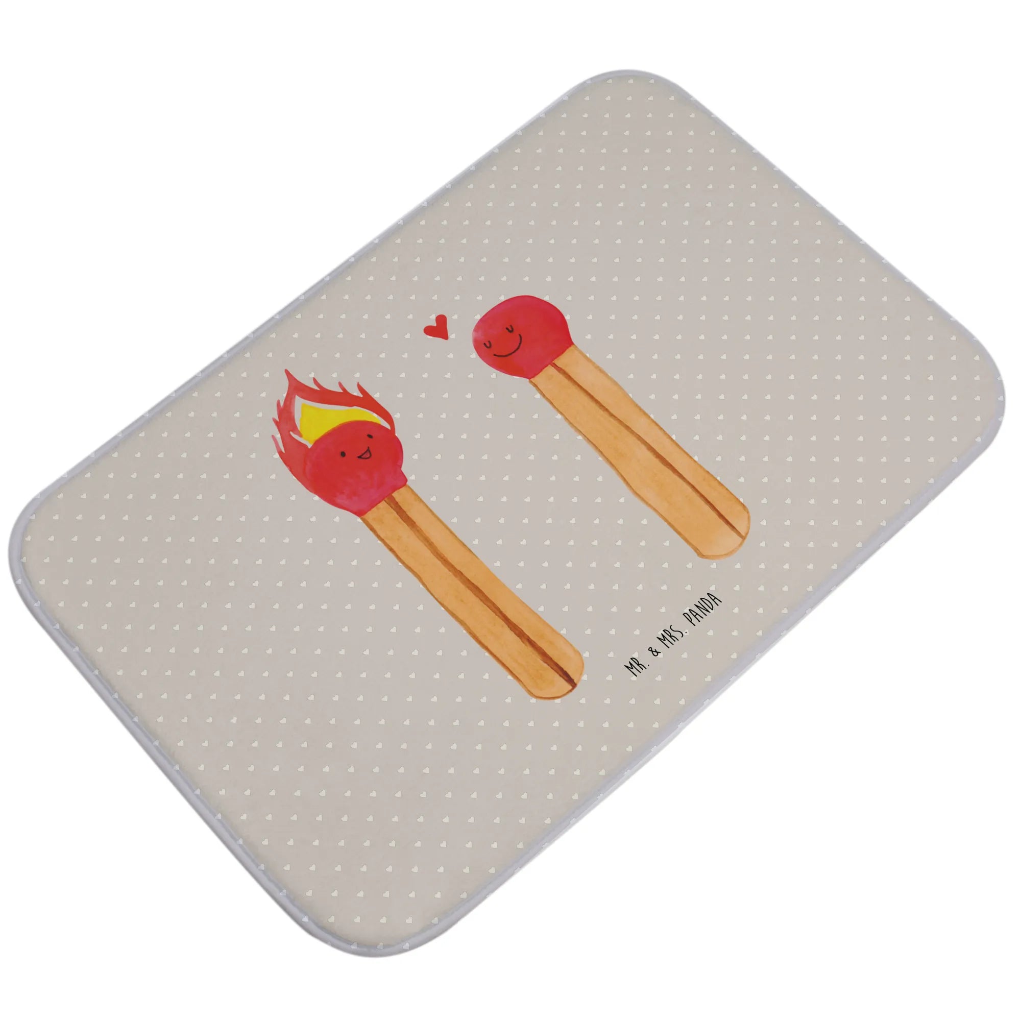 Der Badvorleger mit dem süßen Motiv der Streichhölzer von Mr. & Mrs. Panda ist das perfekte Geschenk für Verliebte! 🎁 Ob für deinen Freund, deine Freundin, deinen Ehemann oder deine Ehefrau – dieser Badezimmerteppich bringt nicht nur Farbe in dein Bad, sondern auch eine Portion Liebe. Mit den fröhlichen Streichhölzern, die ein Herz miteinander teilen, zauberst du jedem ein Lächeln ins Gesicht.