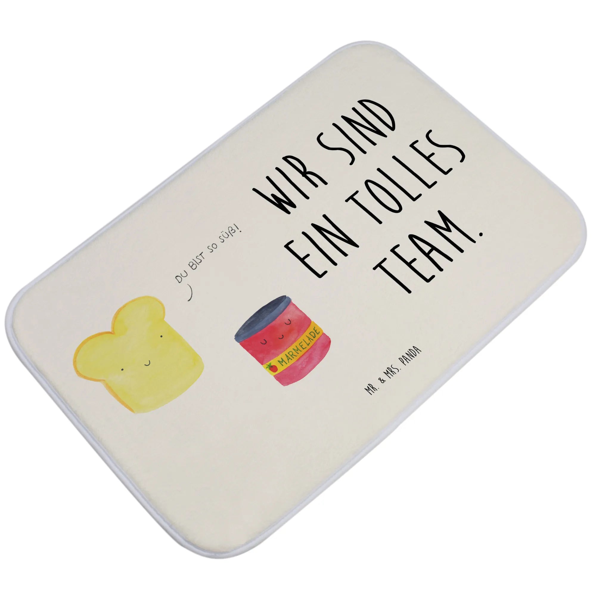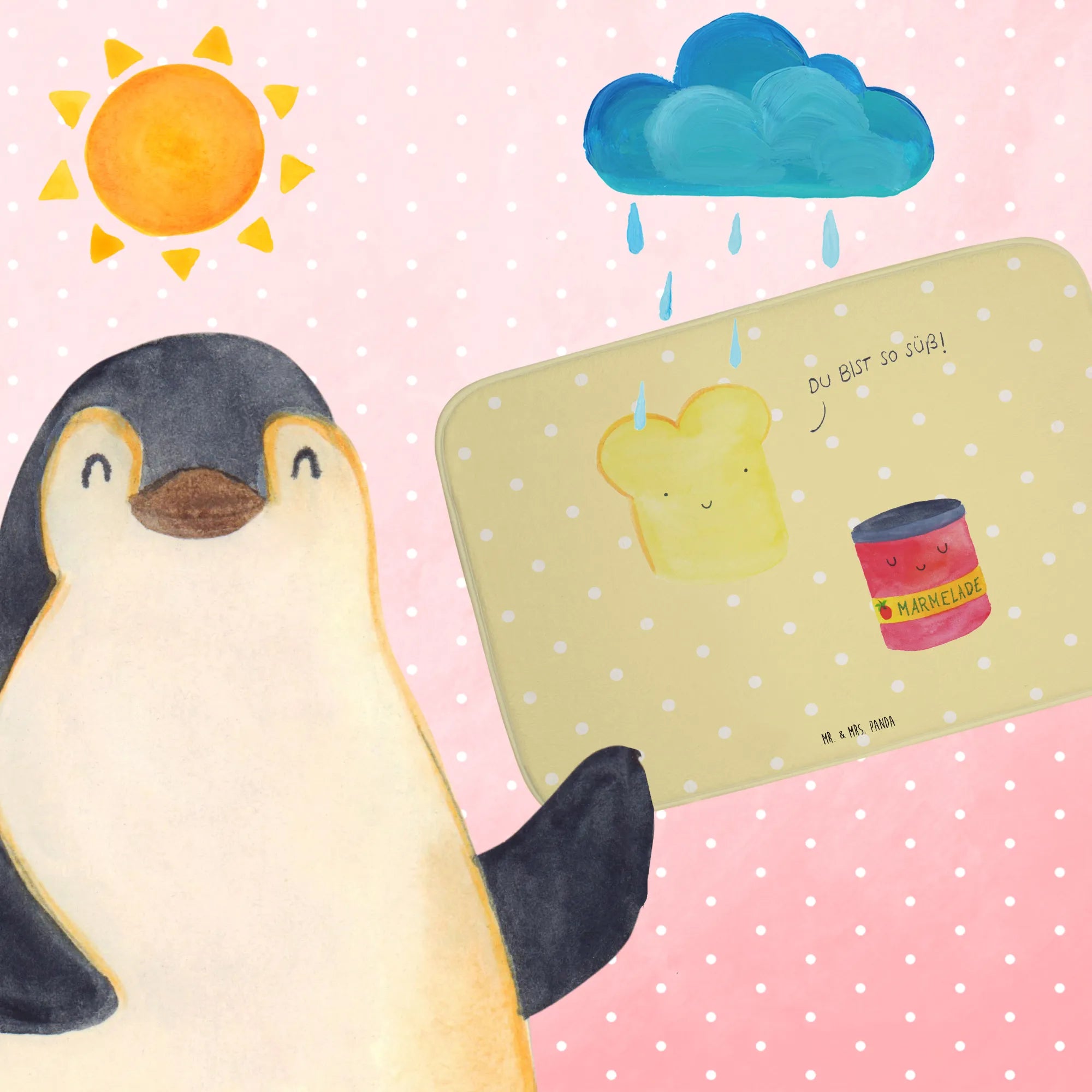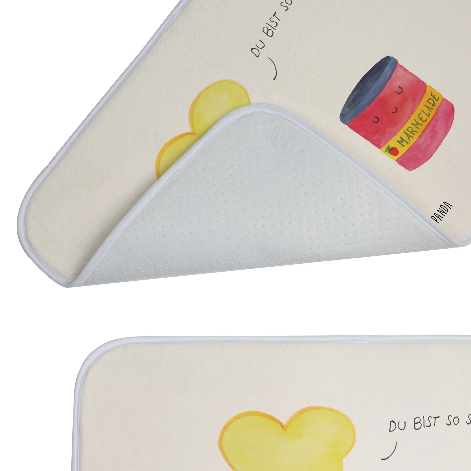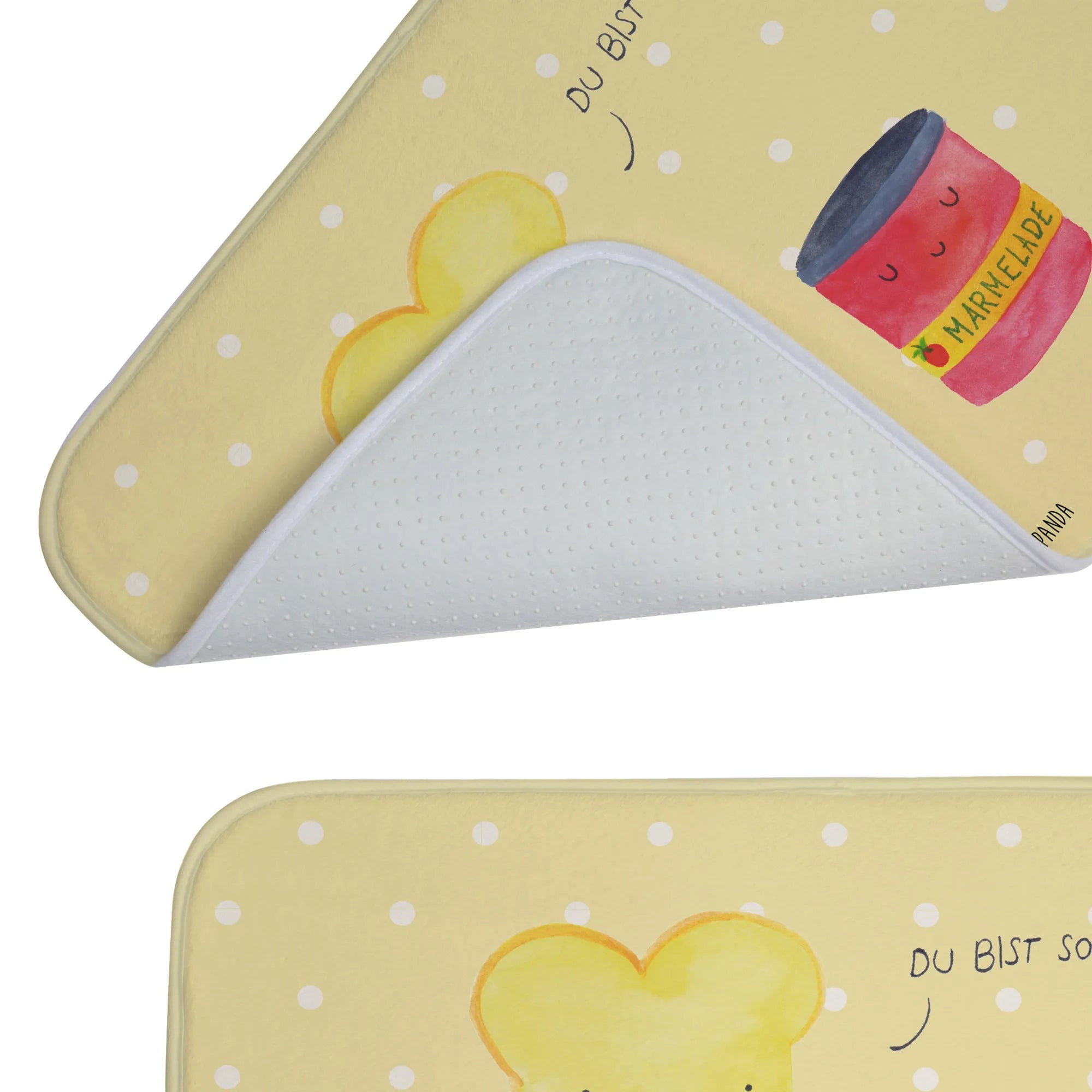 Der Badvorleger Toast & Marmelade von Mr. & Mrs. Panda ist der perfekte Begleiter für dein Badezimmer. Mit dem liebevoll gestalteten Motiv von einem süßen Toast und einer fruchtigen Marmelade bringt er nicht nur gute Laune, sondern sorgt auch dafür, dass du beim Aussteigen aus der Dusche oder Badewanne nicht ausrutschst.