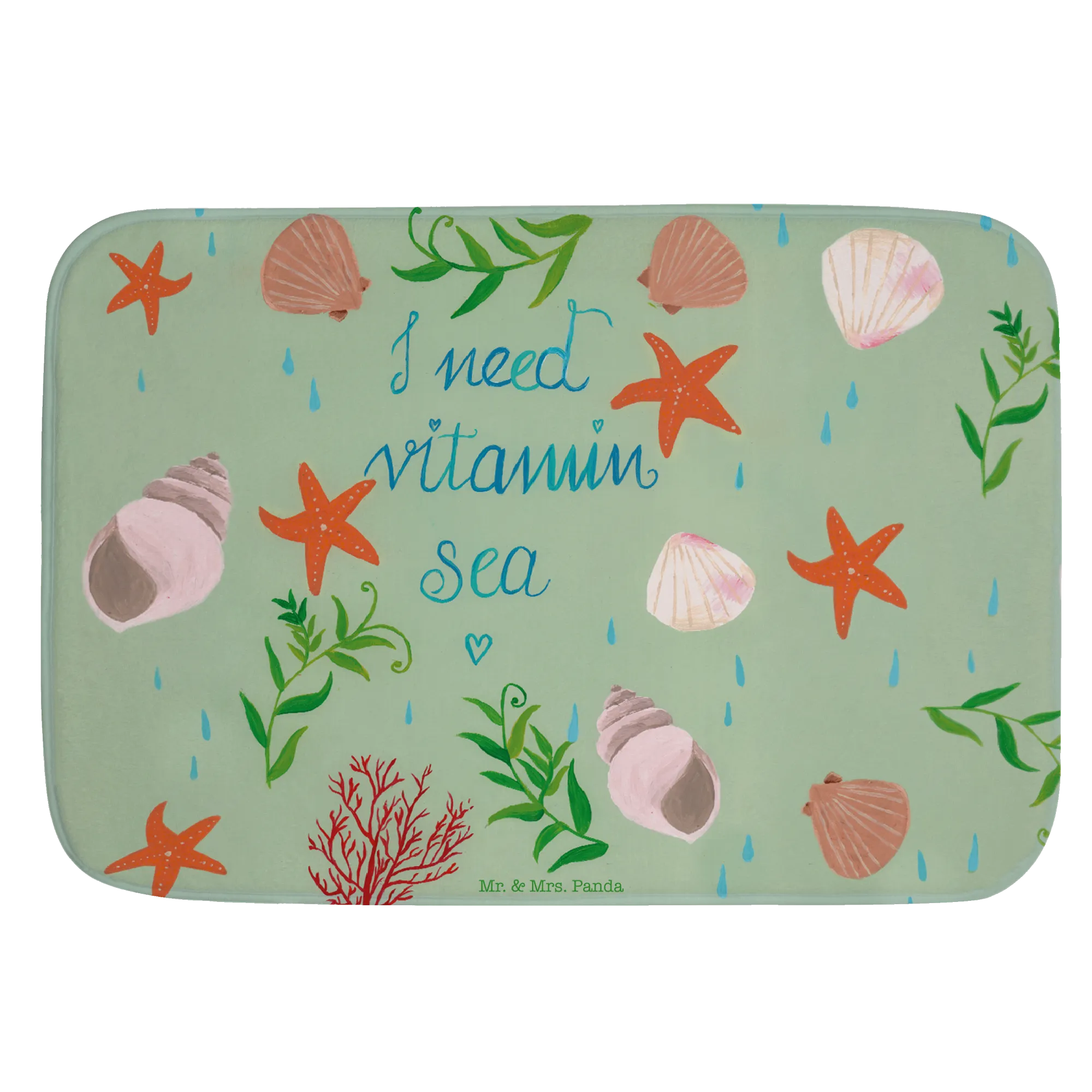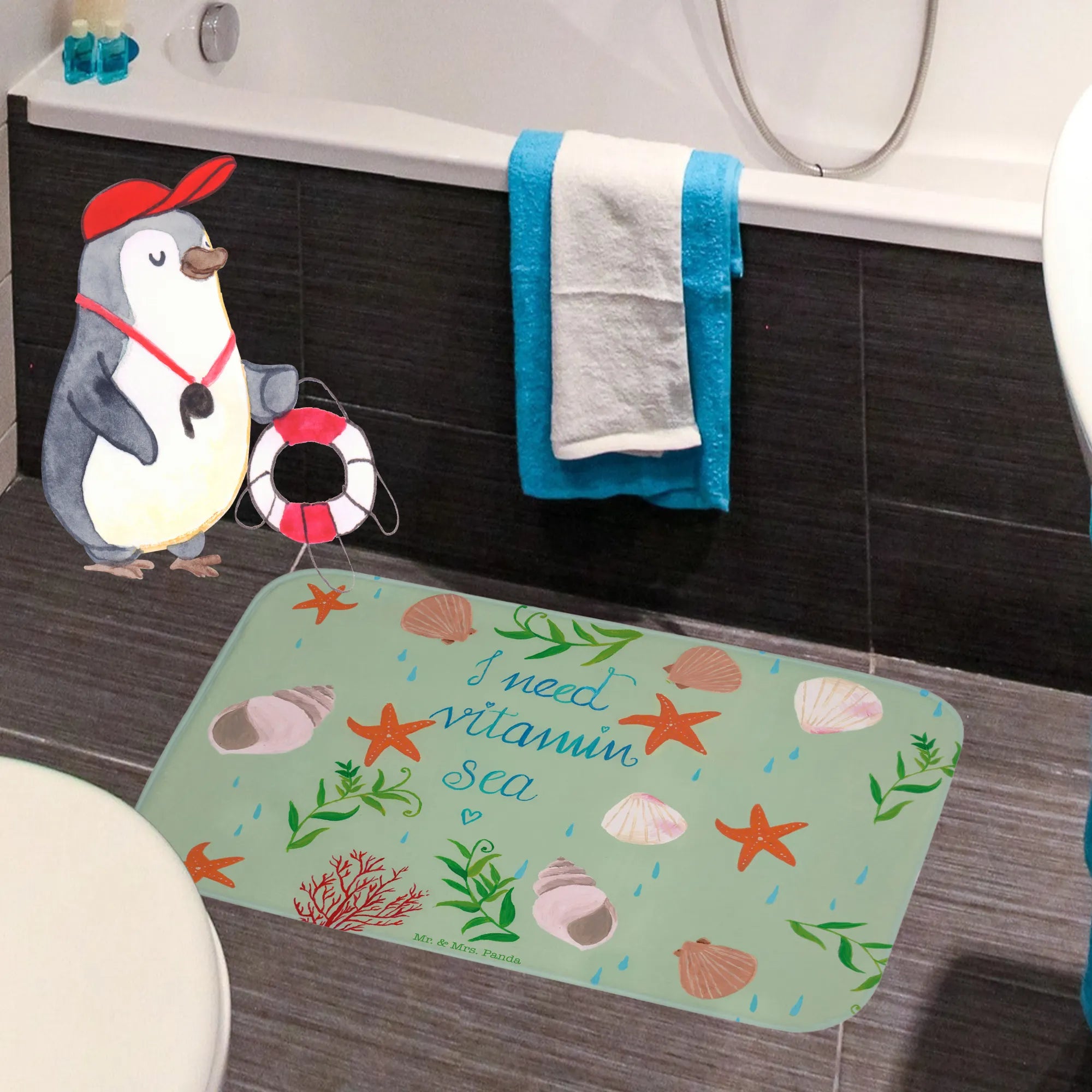 Ein wunderschöner Badvorleger von Mr. & Mrs. Panda, bedruckt mit dem motivierenden Spruch "I need vitamin sea!". Dieser Badvorleger ist perfekt für alle, die die Freiheit und das Gefühl von Meeresbrise lieben.