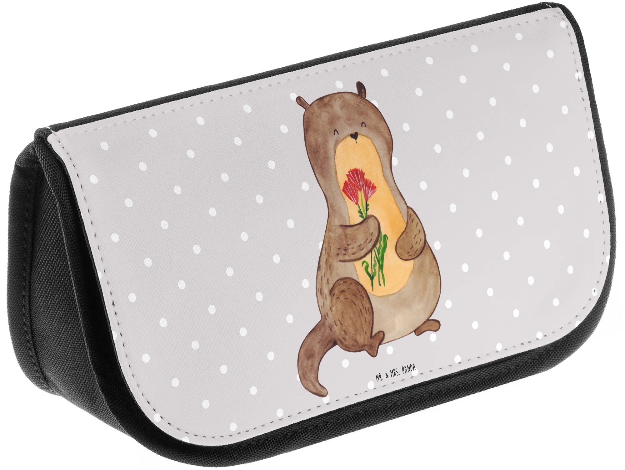 Kosmetiktasche Otter Blumenstrauß - mit Spruch - Grau Pastell