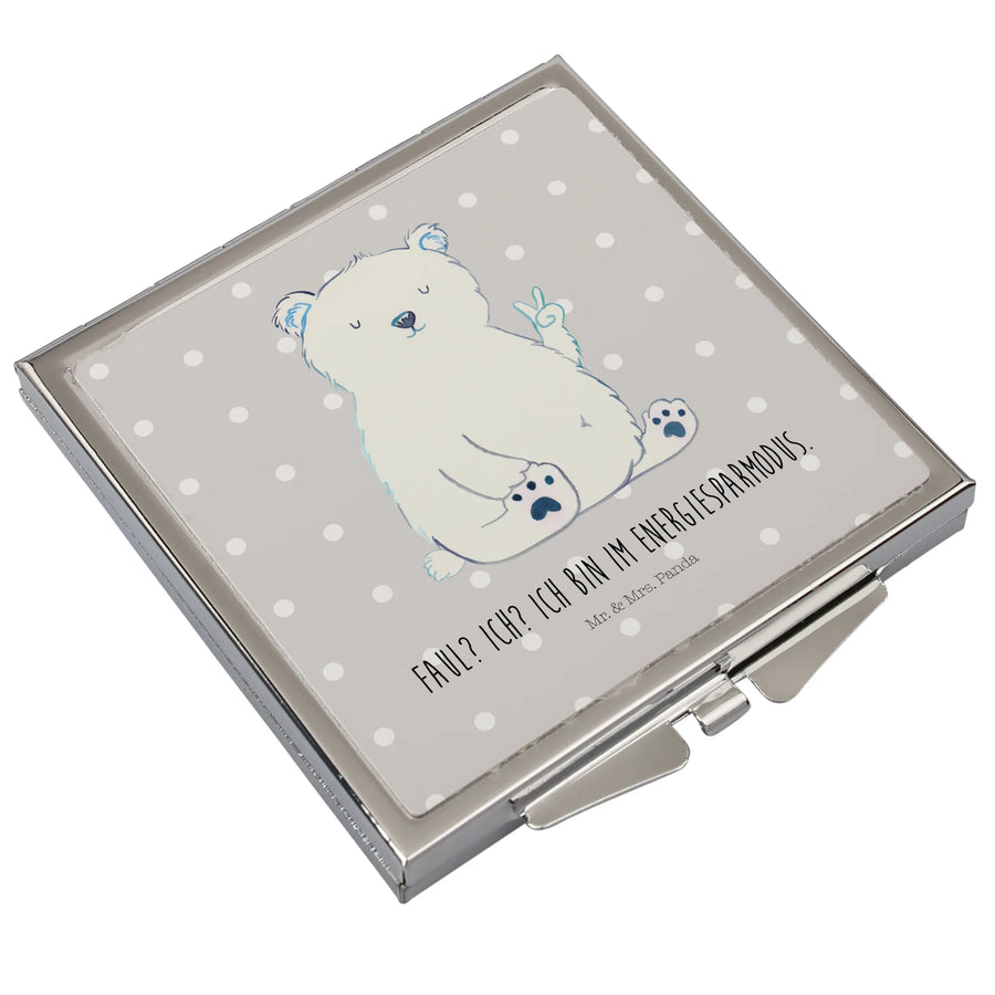 Handtaschenspiegel quadratisch Eisbär Faul - mit Spruch - Grau Pastell