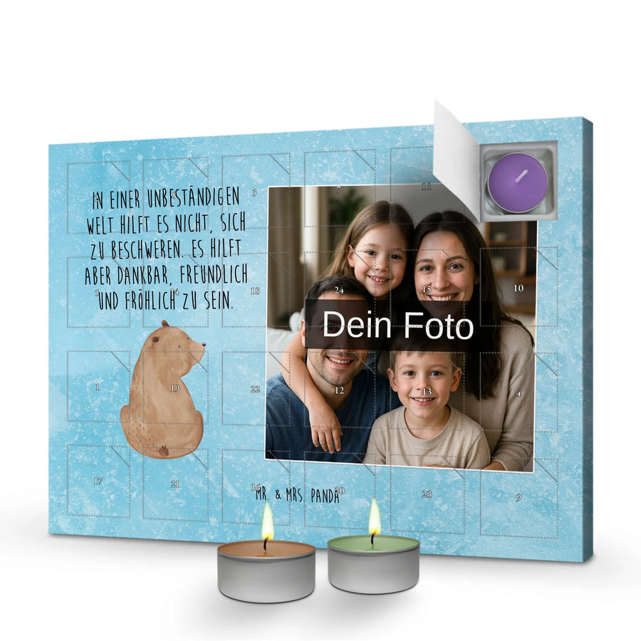Personalisierter Duftkerzen Foto Adventskalender Bär Schulterblick - Eisblau